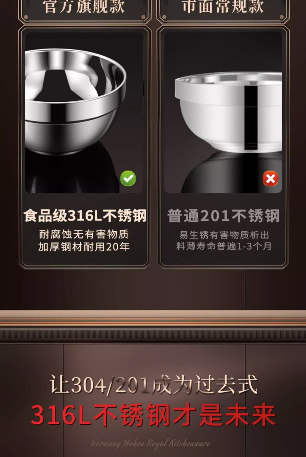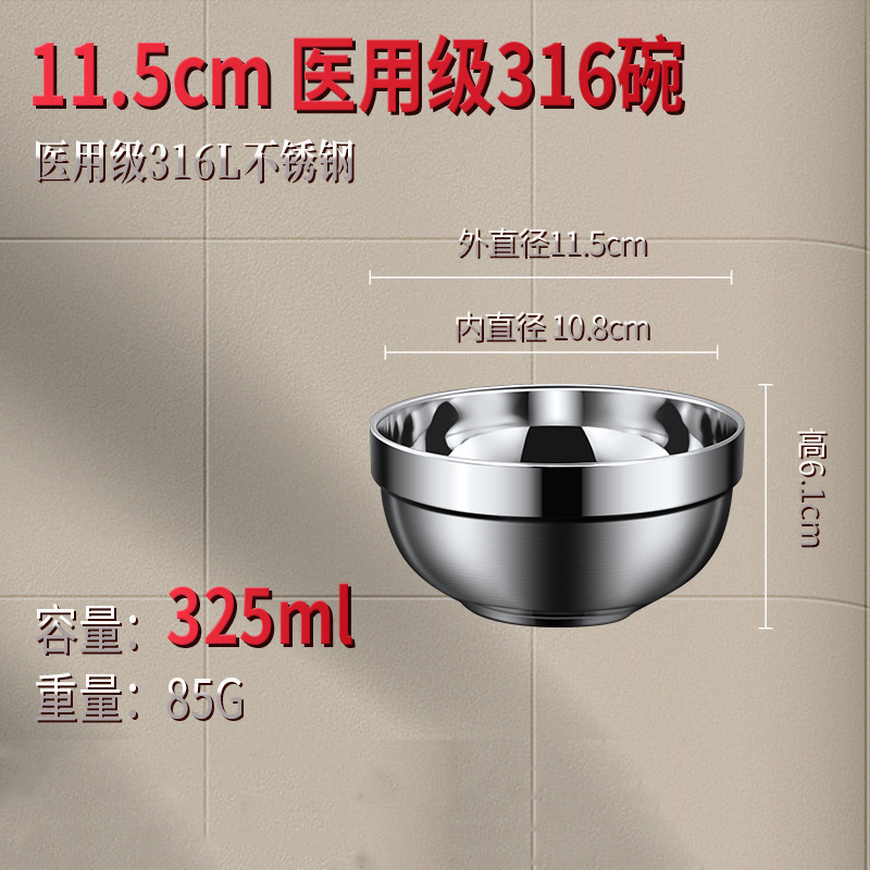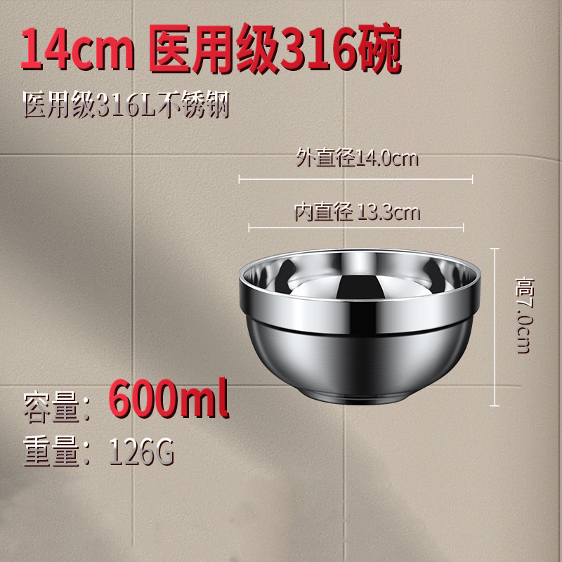 식품 등급 316 스테인레스 스틸 그릇 작은 둥근 수프 그릇 가정용 어린이 먹는 그릇 큰 그릇 두꺼운 식기 단열 그릇스토어 가기