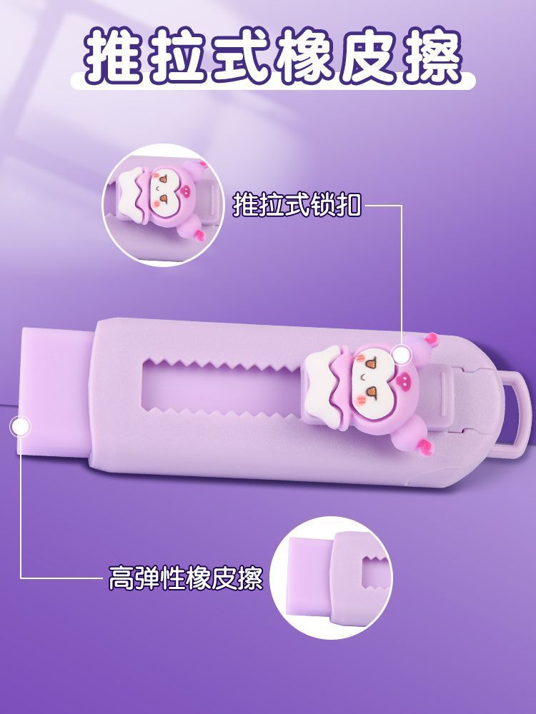 • 쿨로 미 (보라색) 연필 + 모자 + 지우개 + 스티커