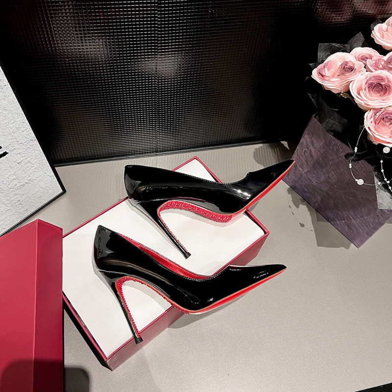 스톤 장식 슈퍼파이버 레드솔 하이힐 2024 섹시 웨딩 슈즈 블랙 누드 컬러 스틸레토 뾰족코 여성 구두 연회용스토어 가기