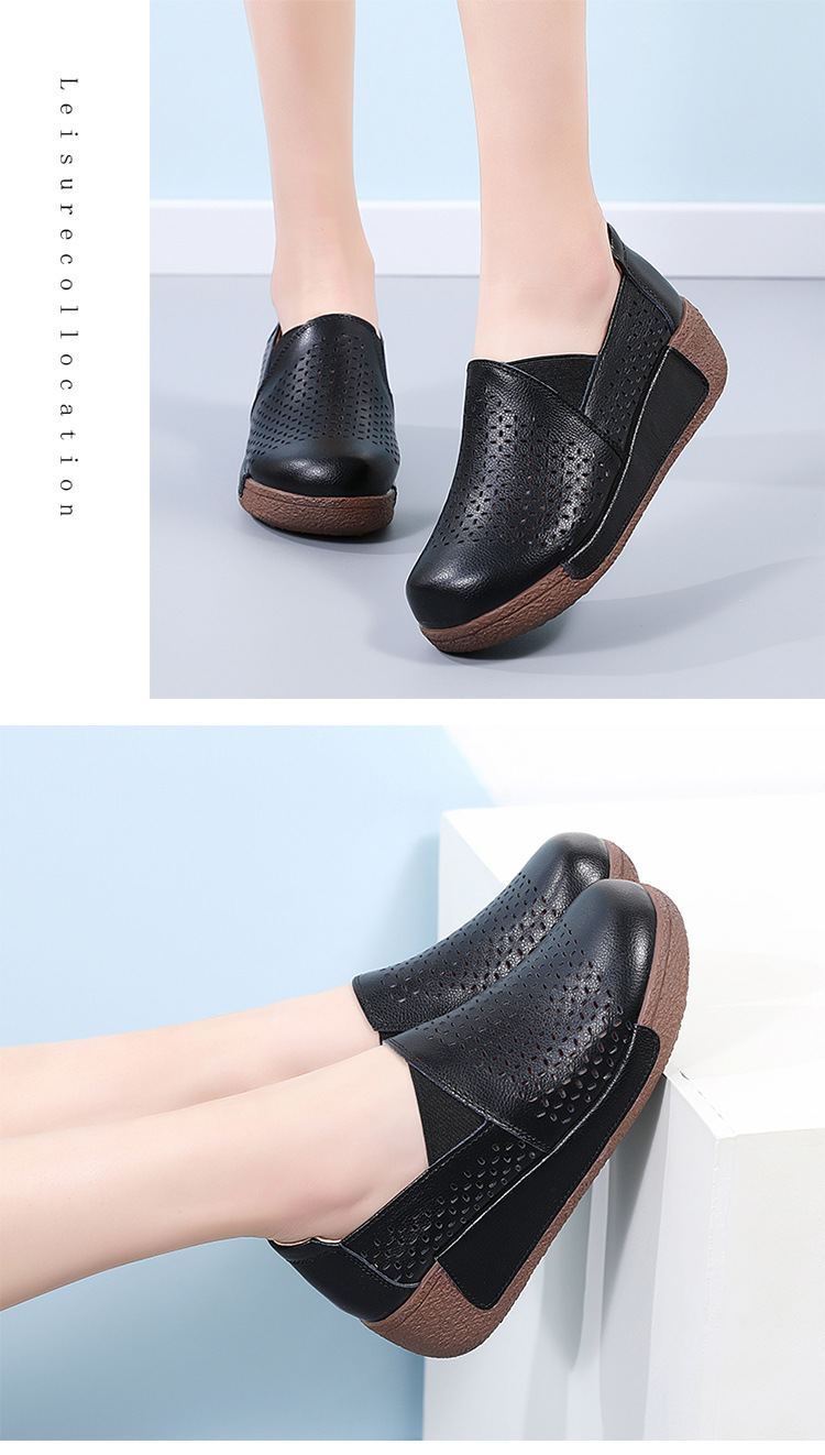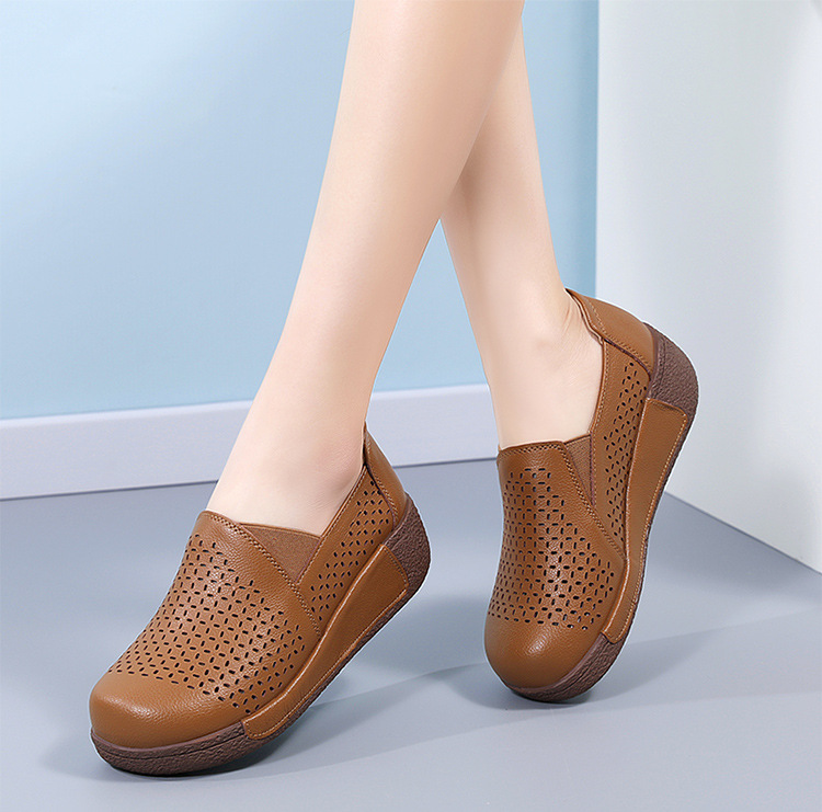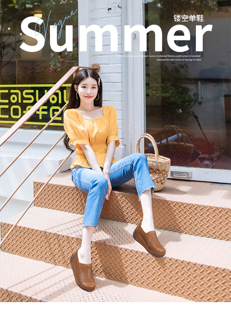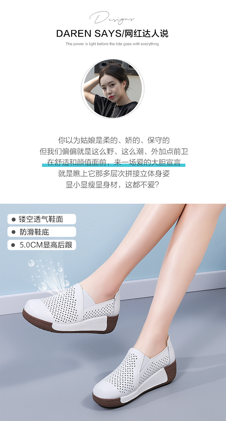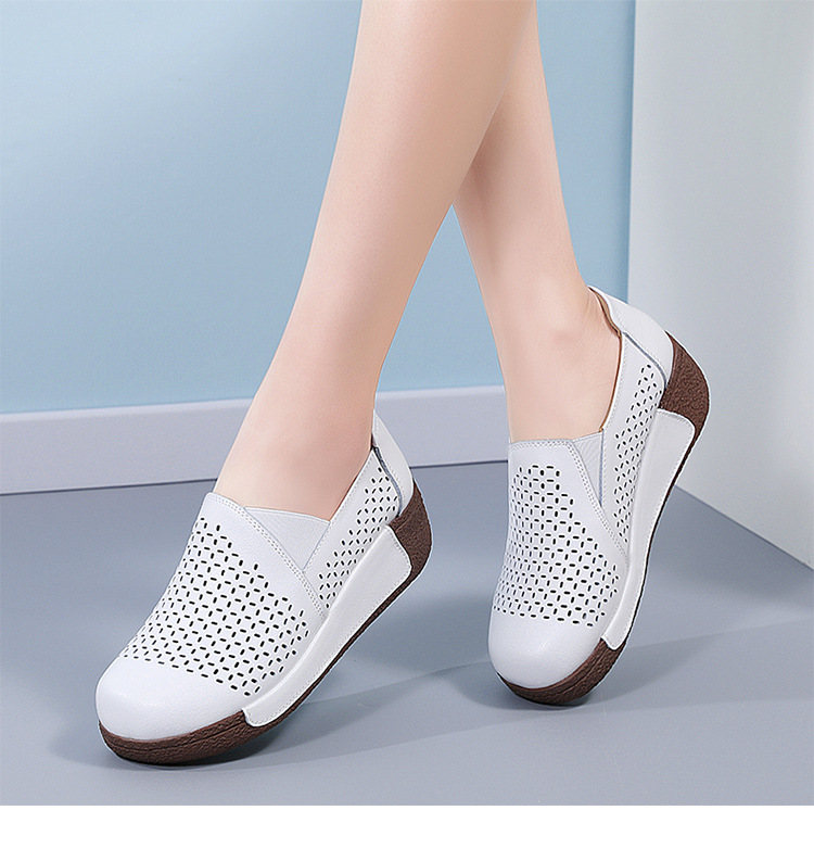 여름 새로운 두꺼운 밑창 여성 싱글 레이어 신발 여성용 속이 빈 통기성 올 매치 캐주얼 슬립 온 로퍼 플랫폼 엄마 신발스토어 가기