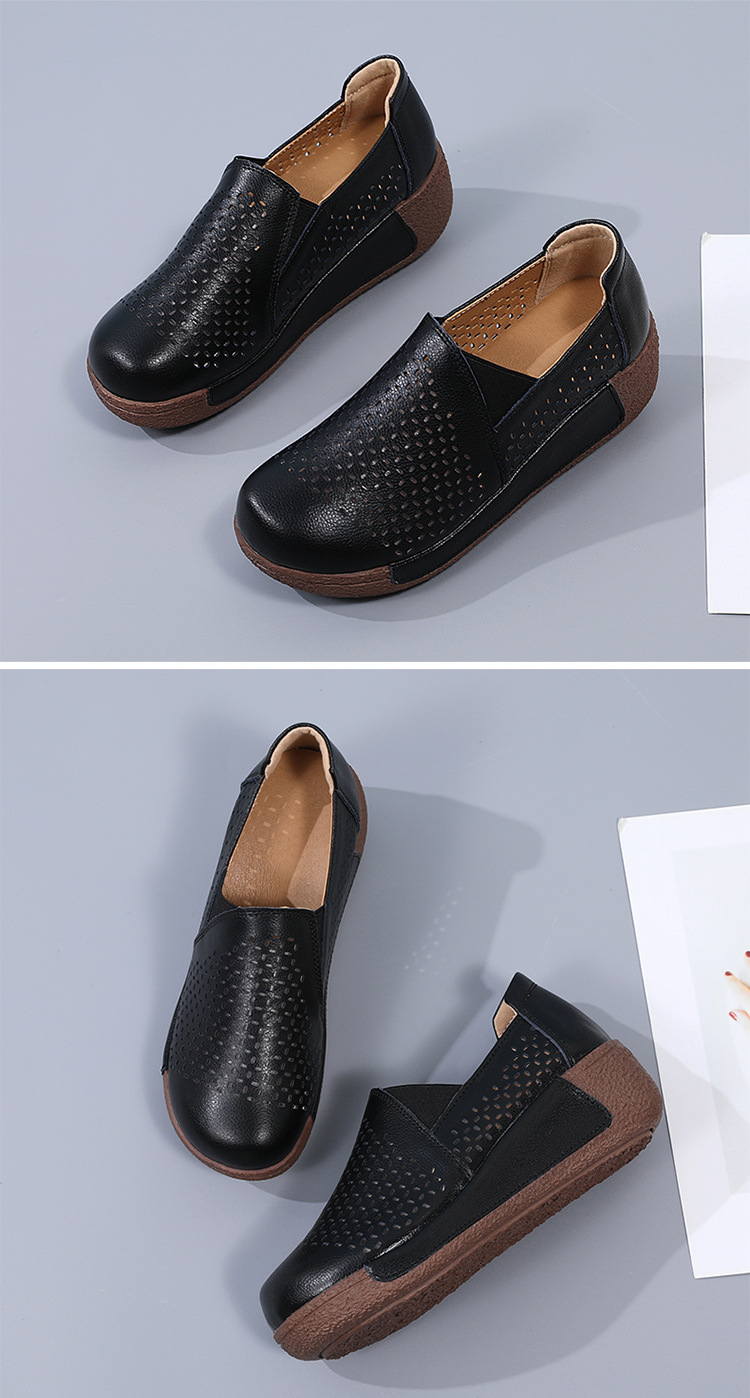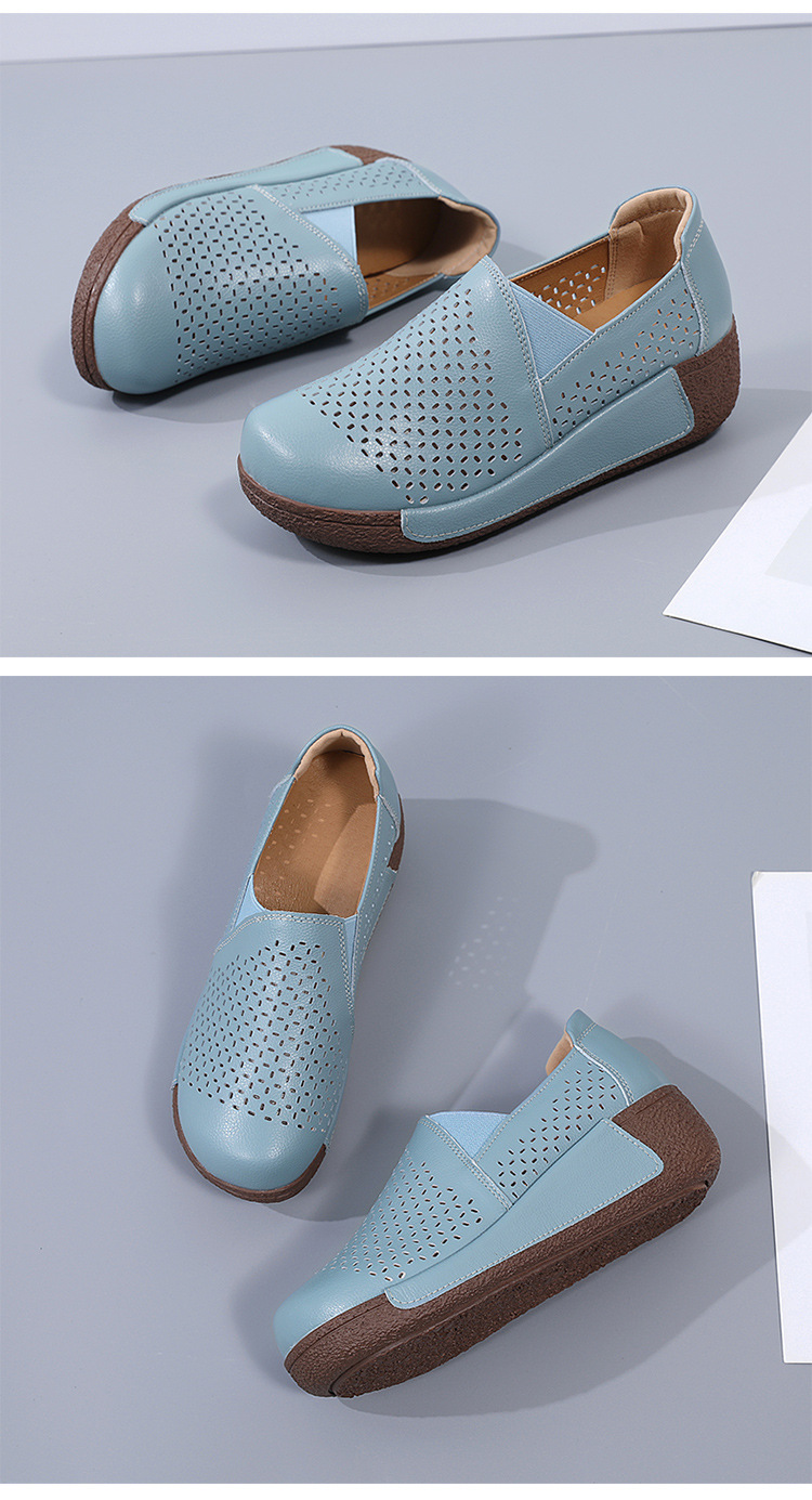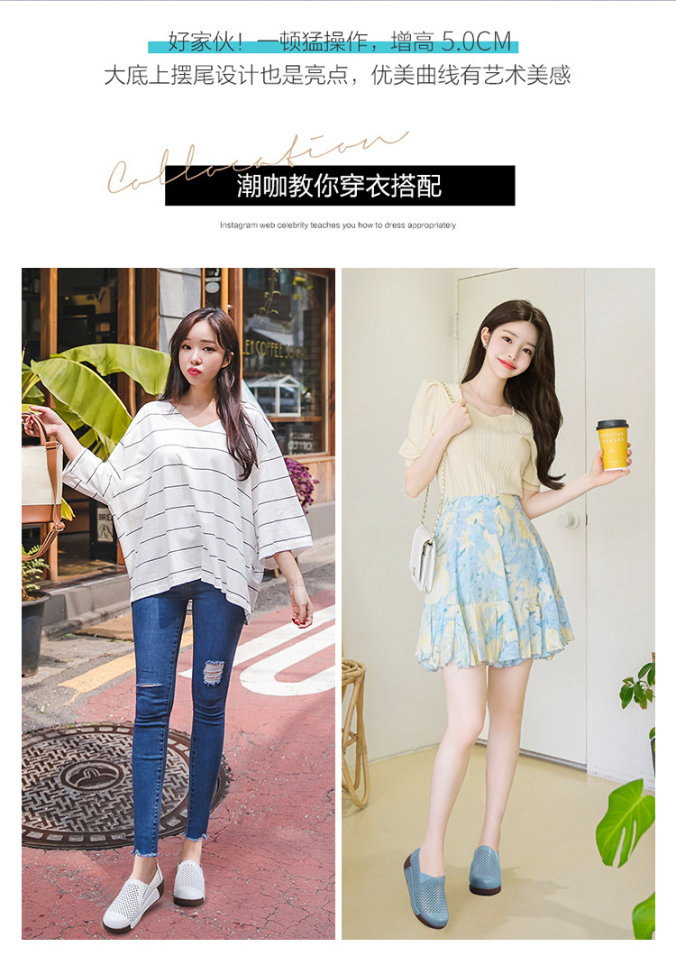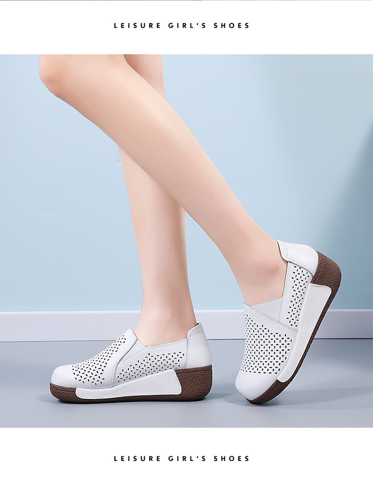 여름 새로운 두꺼운 밑창 여성 싱글 레이어 신발 여성용 속이 빈 통기성 올 매치 캐주얼 슬립 온 로퍼 플랫폼 엄마 신발스토어 가기