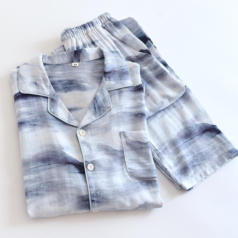 대나무 섬유 녹색 연기 봄과 가을 남녀 커플 잠옷 긴 소매 세트 일본식 커플 홈 웨어 플러스 사이즈 잠옷스토어 가기