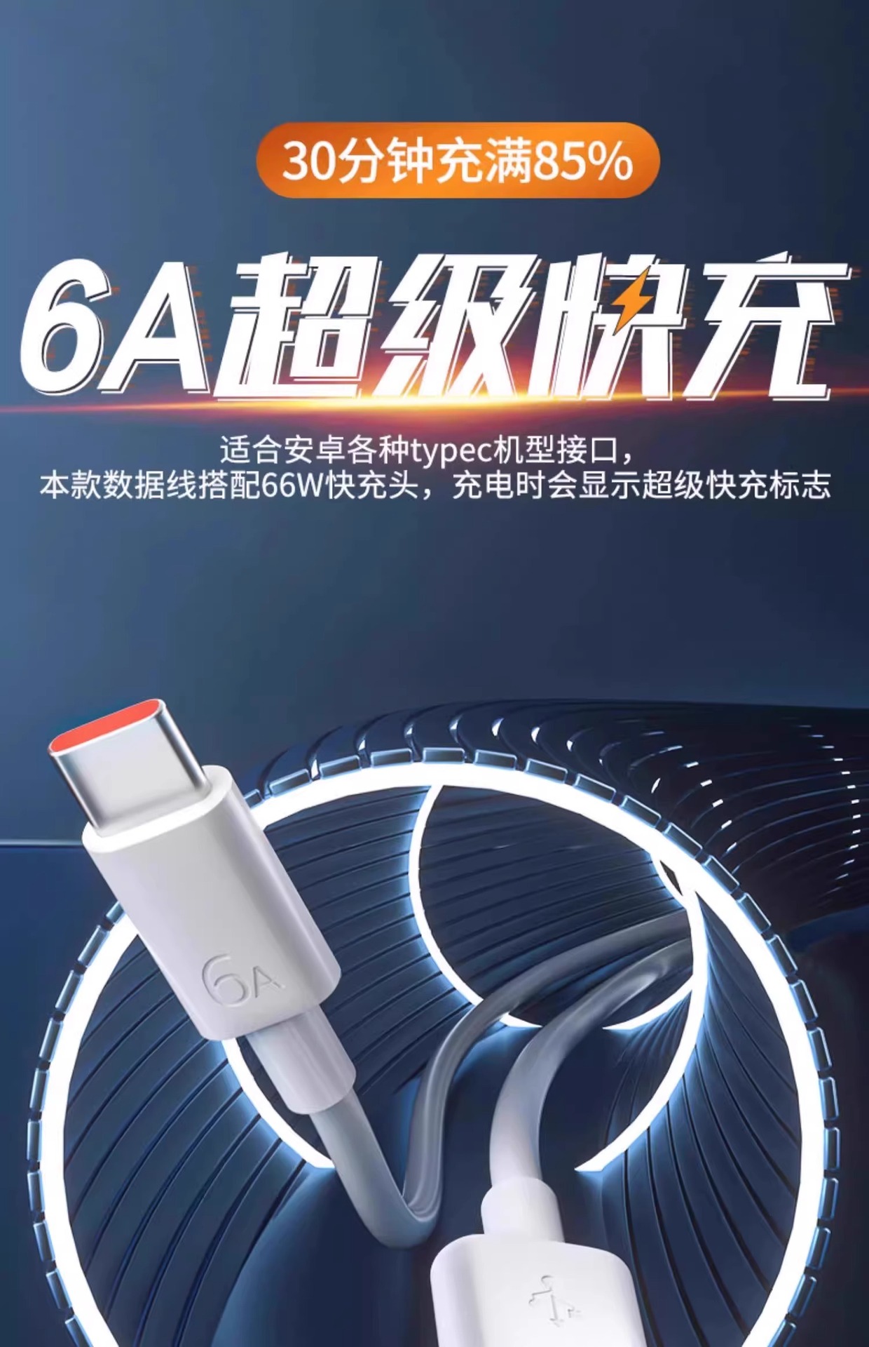 Huawei type-c Honor USB 충전 케이블에 적합한 도매 6A 초고속 충전 케이블 휴대 전화 데이터 케이블 플래시 충전 케이블스토어 가기