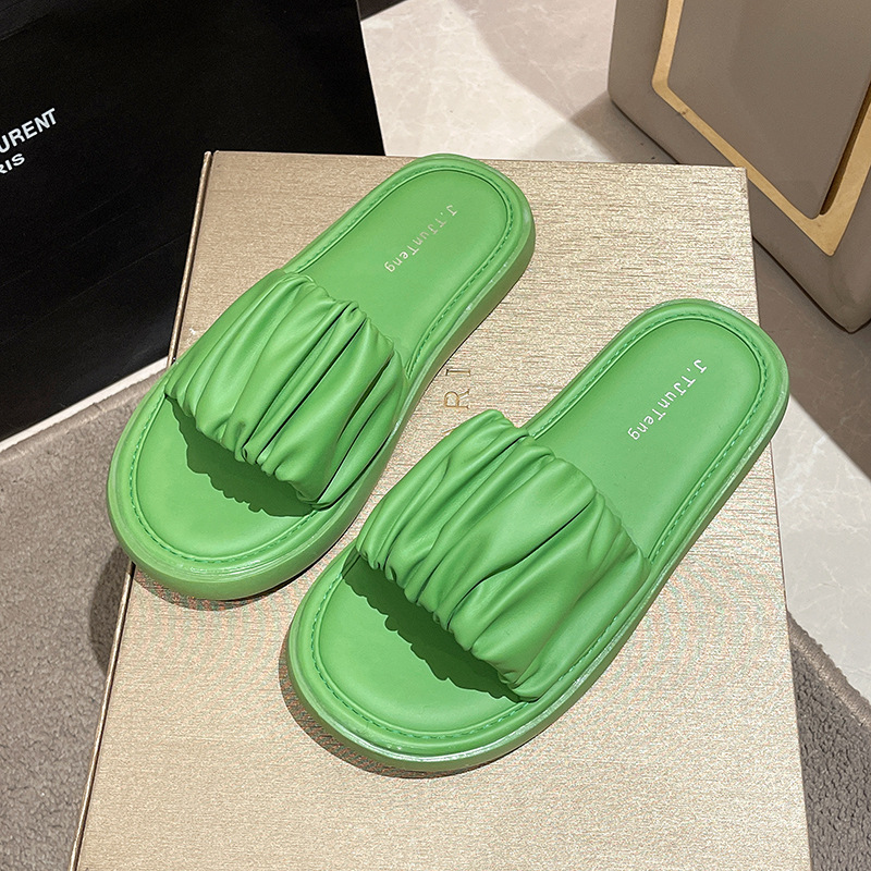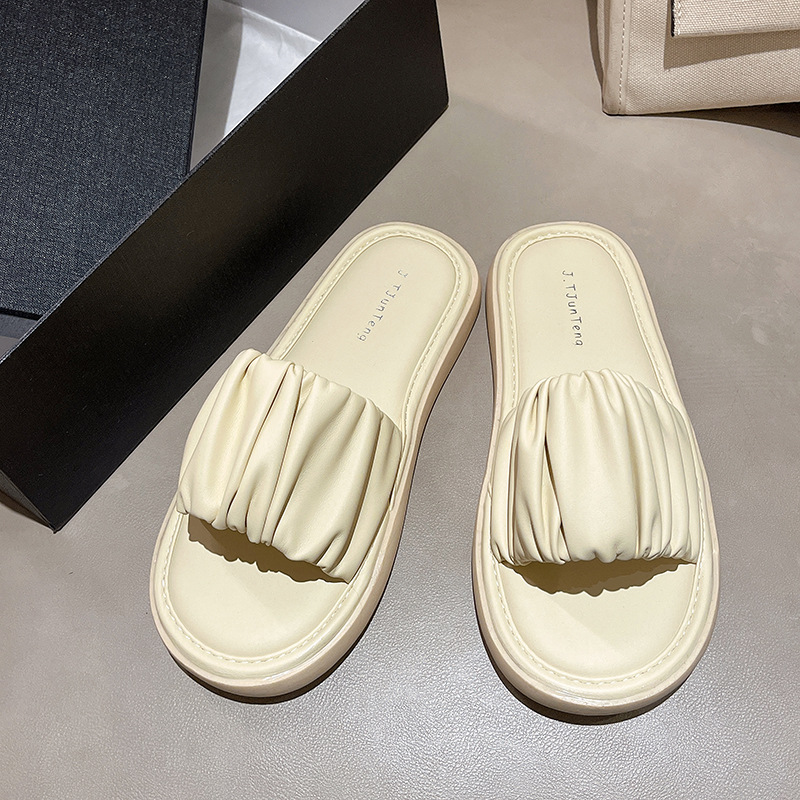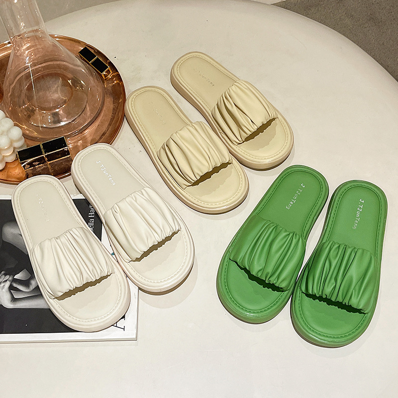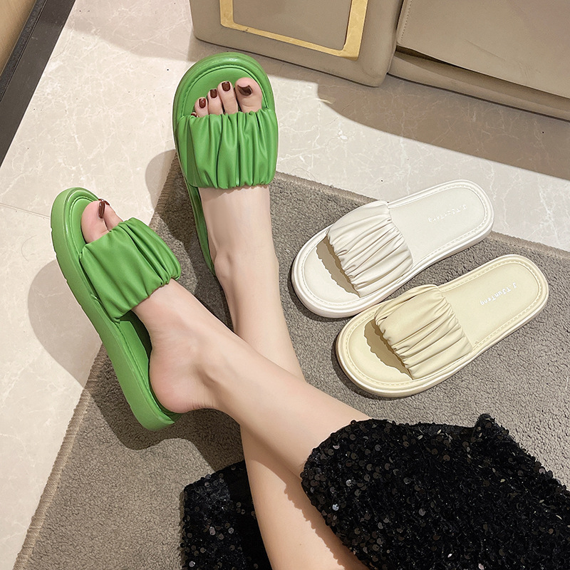 야외 착용을위한 여성용 두꺼운 밑창 샌들 2024 여름 새로운 스타일의 처진 요정 스타일 해변 휴가 비치 슬리퍼스토어 가기
