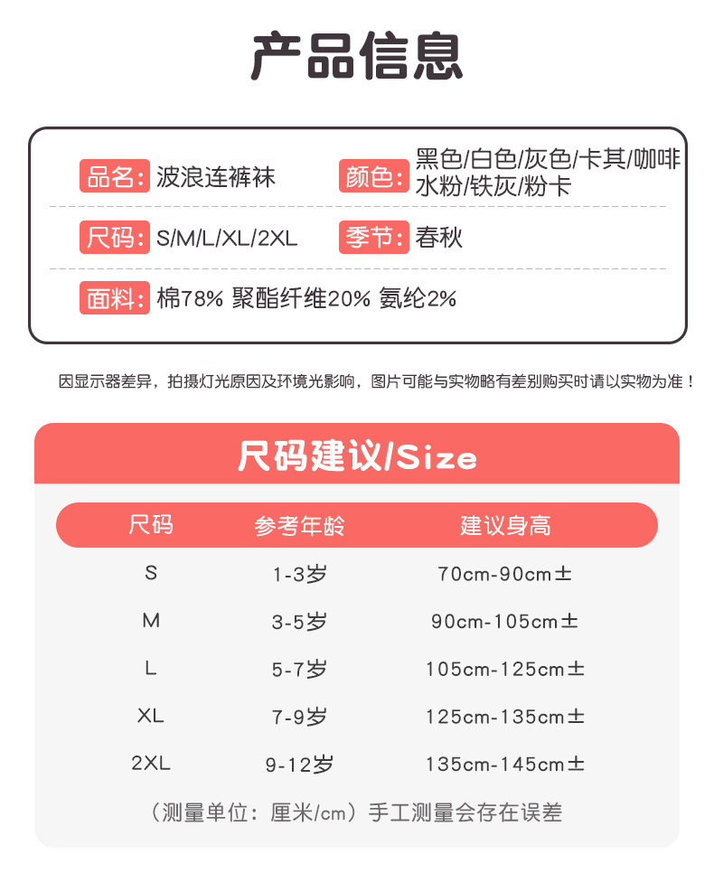 베이시신 봄가을 웨이브 팬티스타킹 여아용 중대형 아동용 외출용 일체형 팬티스타킹 탄력있고 부드러운 팬티스타킹 도매