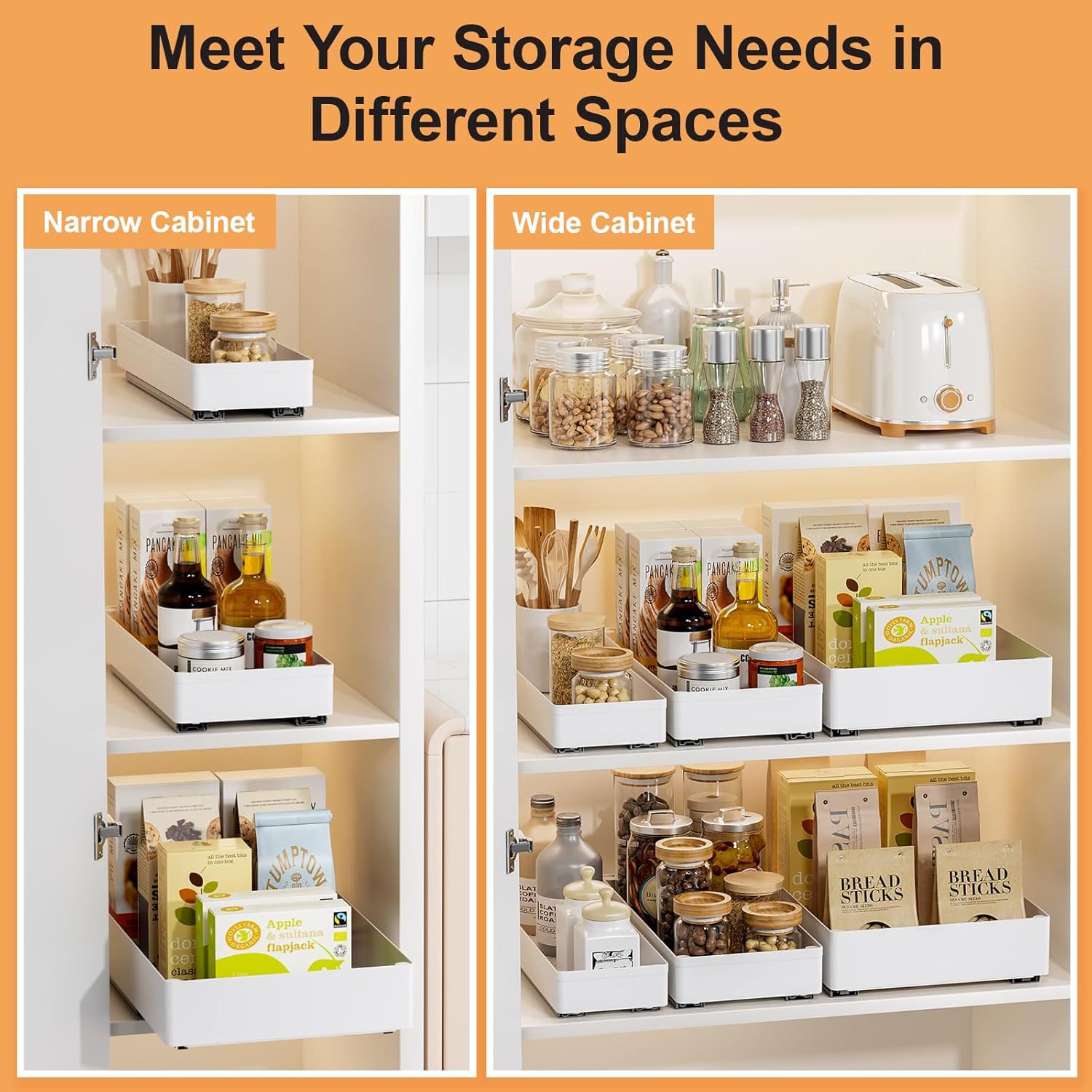 아마존 캐비닛 수납 바구니 슬라이드형 선반 주방 캐비닛 정리 수납함 확장형