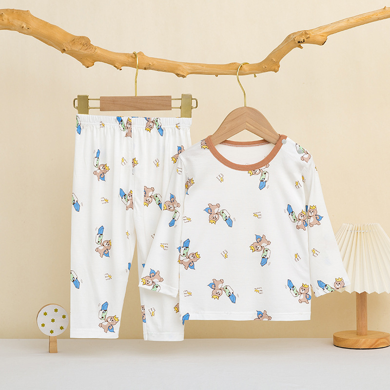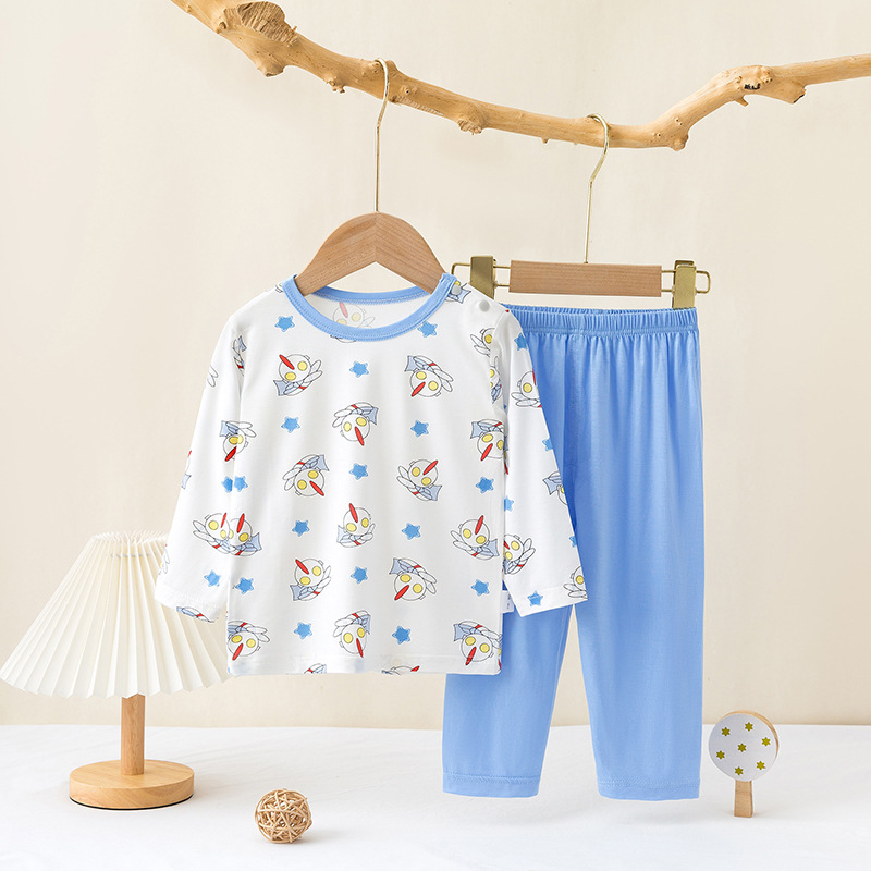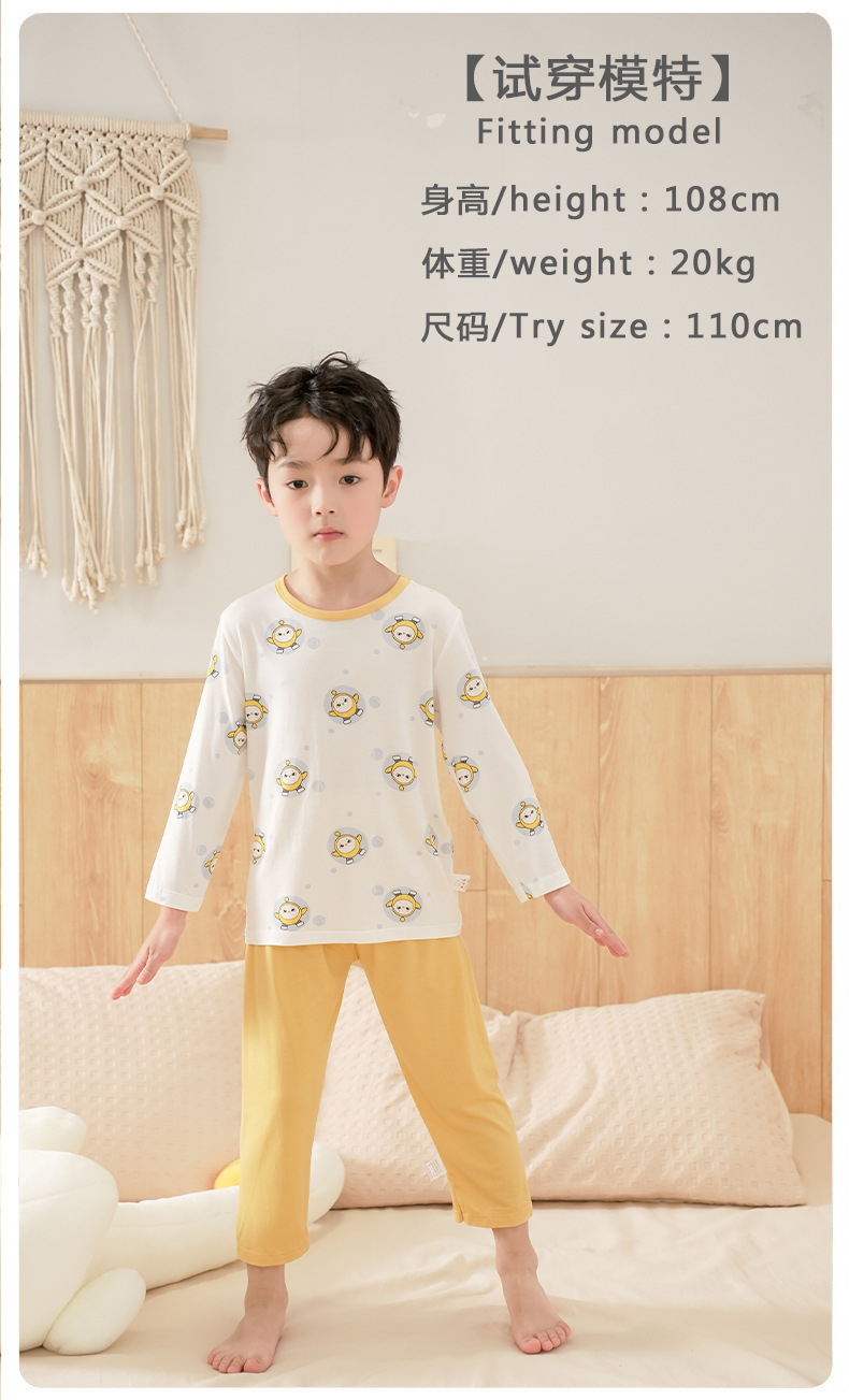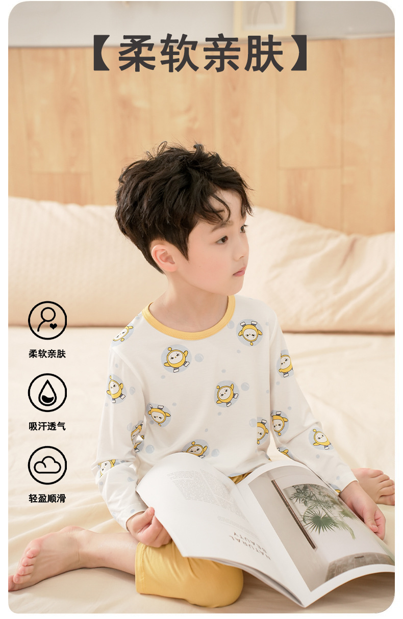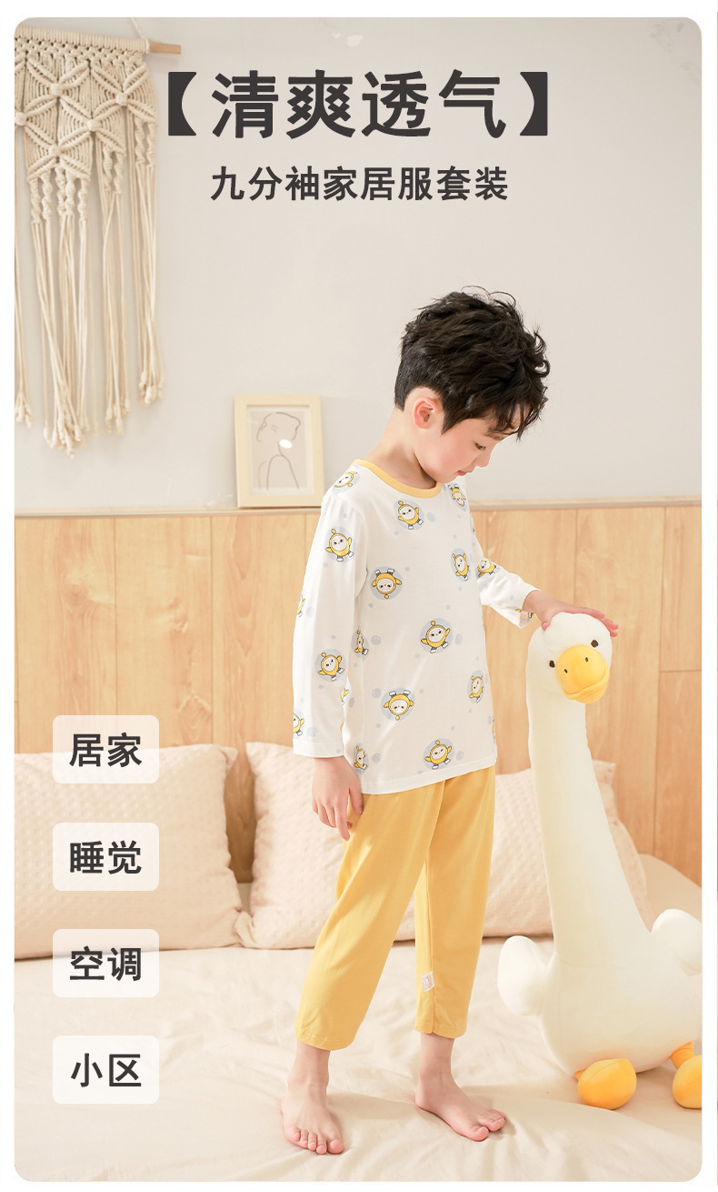 어린이 잠옷 여름 텐셀 얇은 세트 에어컨 의류 클래스 긴팔 중대형 어린이 캐주얼 청소년 홈 의류스토어 가기