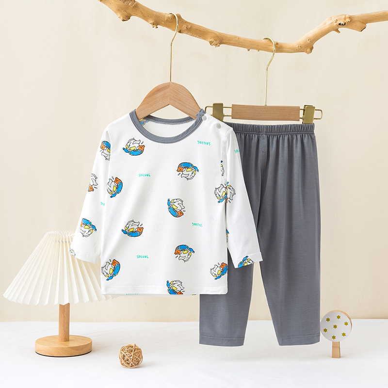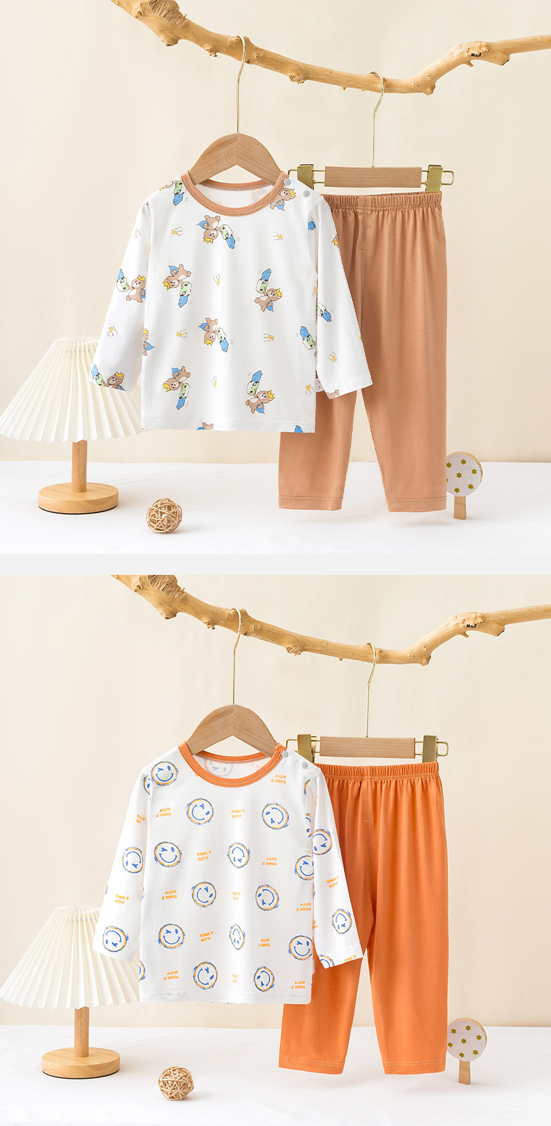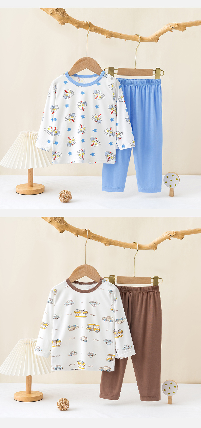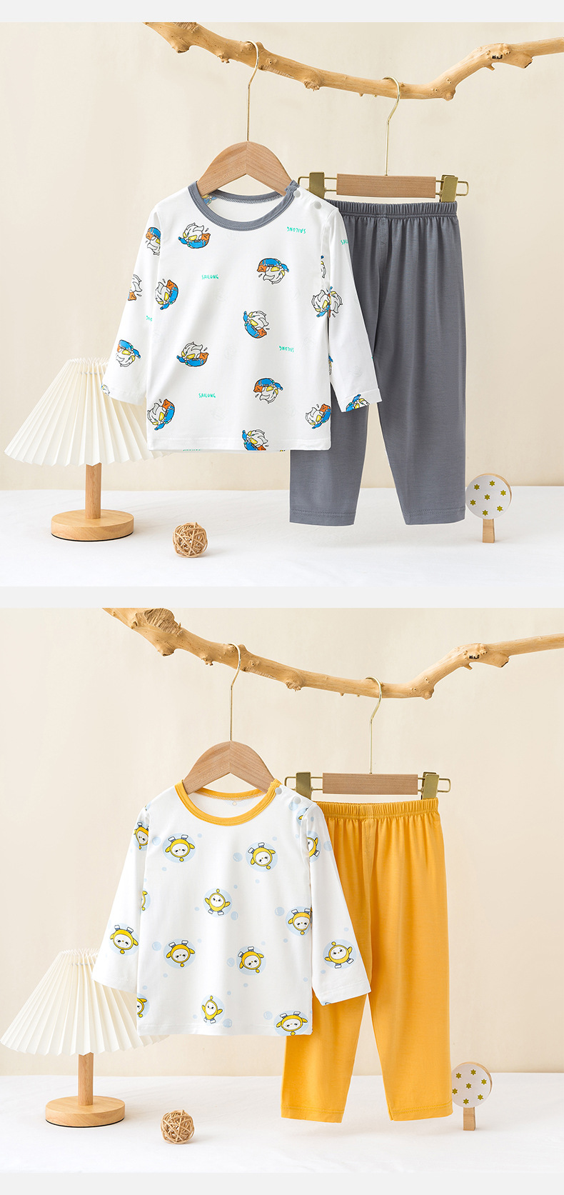 어린이 잠옷 여름 텐셀 얇은 세트 에어컨 의류 클래스 긴팔 중대형 어린이 캐주얼 청소년 홈 의류스토어 가기