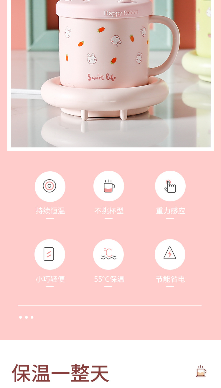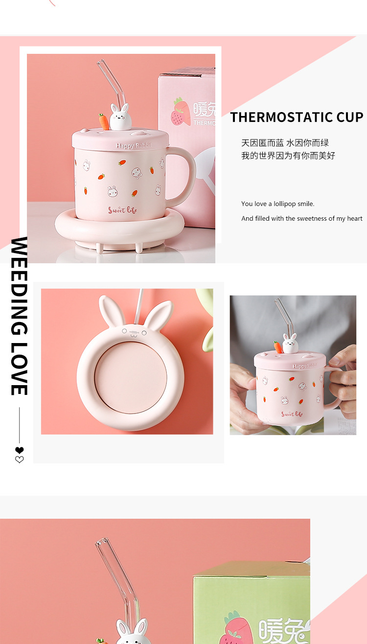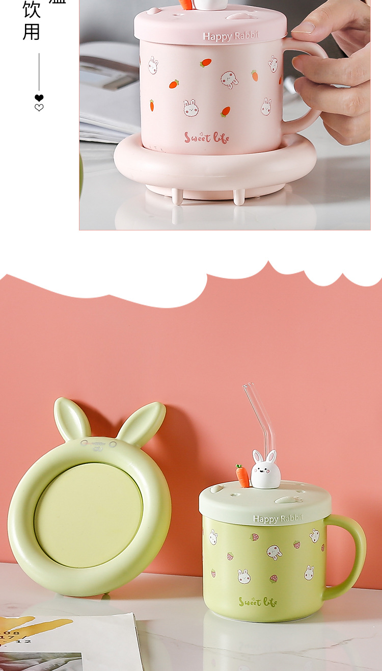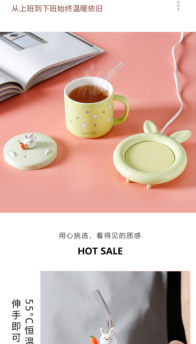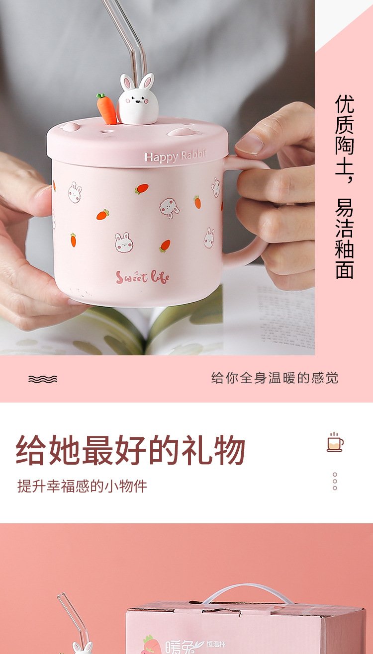 55 도 따뜻한 컵 뚜껑 절연 토끼 일정한 온도 컵 일정한 온도 코스터 겨울 선물 만화 세라믹 머그잔스토어 가기