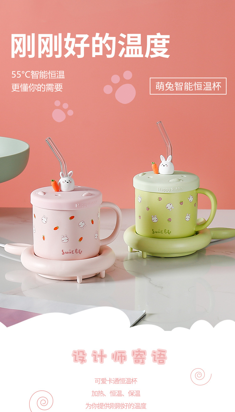 55 도 따뜻한 컵 뚜껑 절연 토끼 일정한 온도 컵 일정한 온도 코스터 겨울 선물 만화 세라믹 머그잔