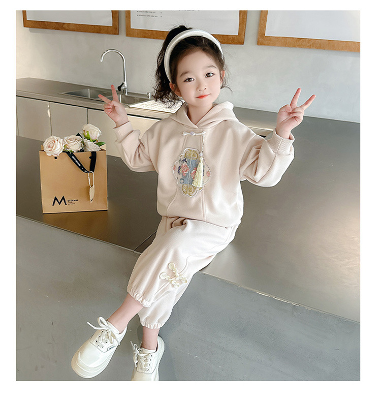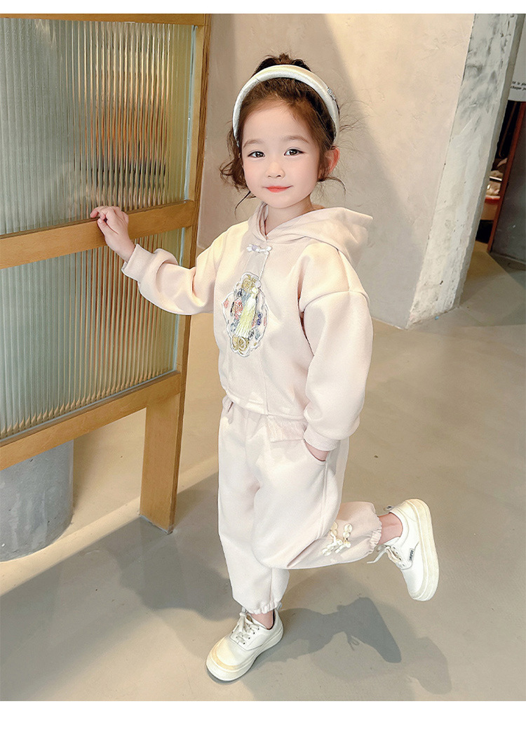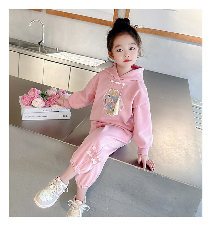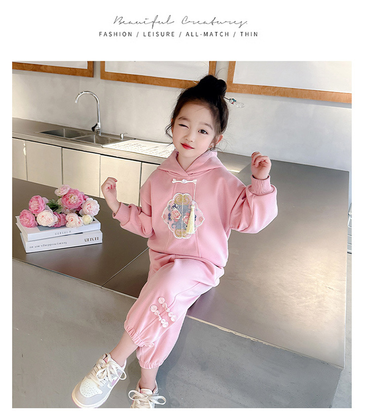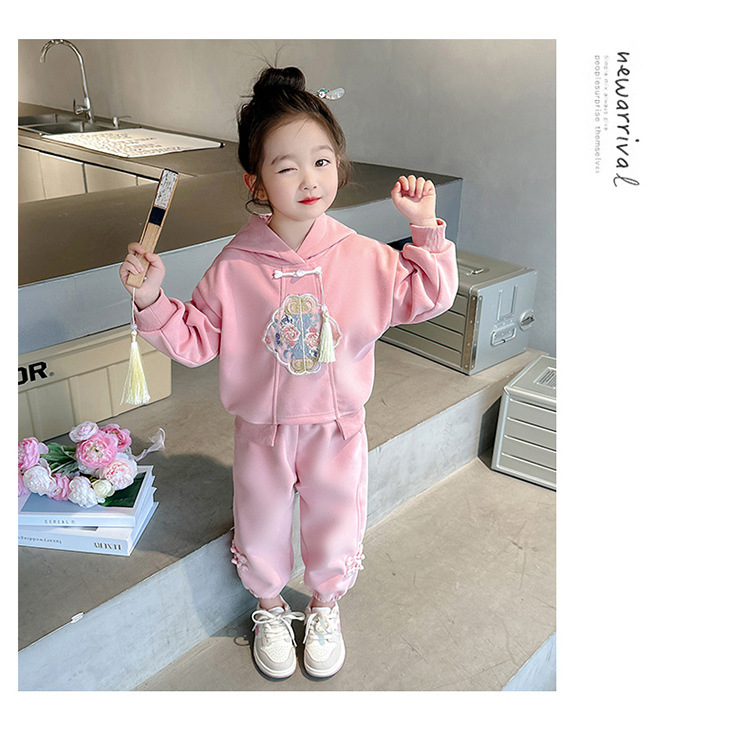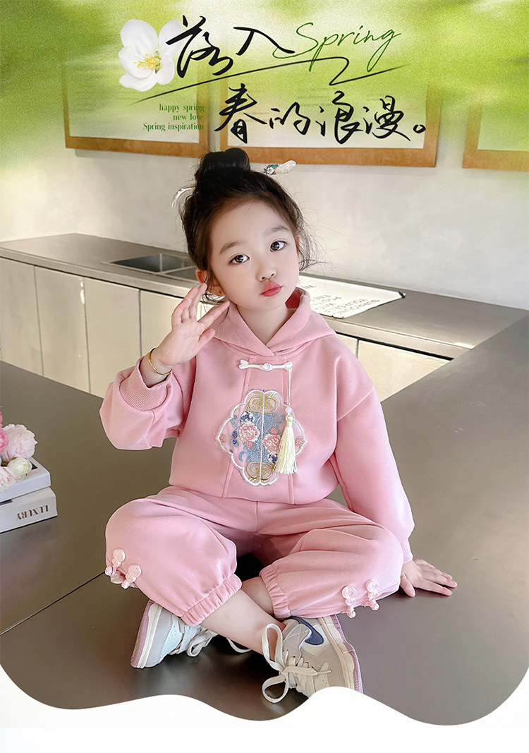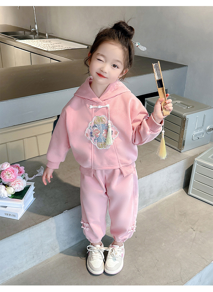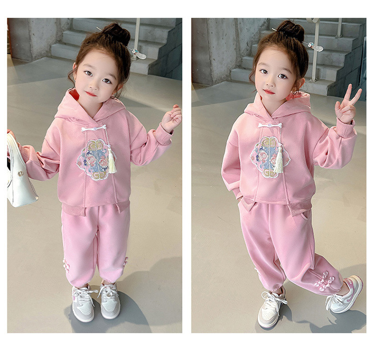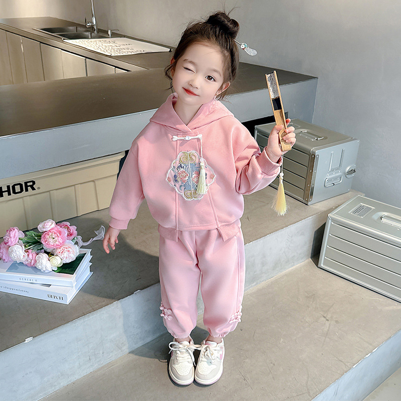 여자 중국 스타일 버클 세트 2024 봄과 가을 새로운 유행 어린이 아기 소녀 캐주얼 스포츠 투피스 세트