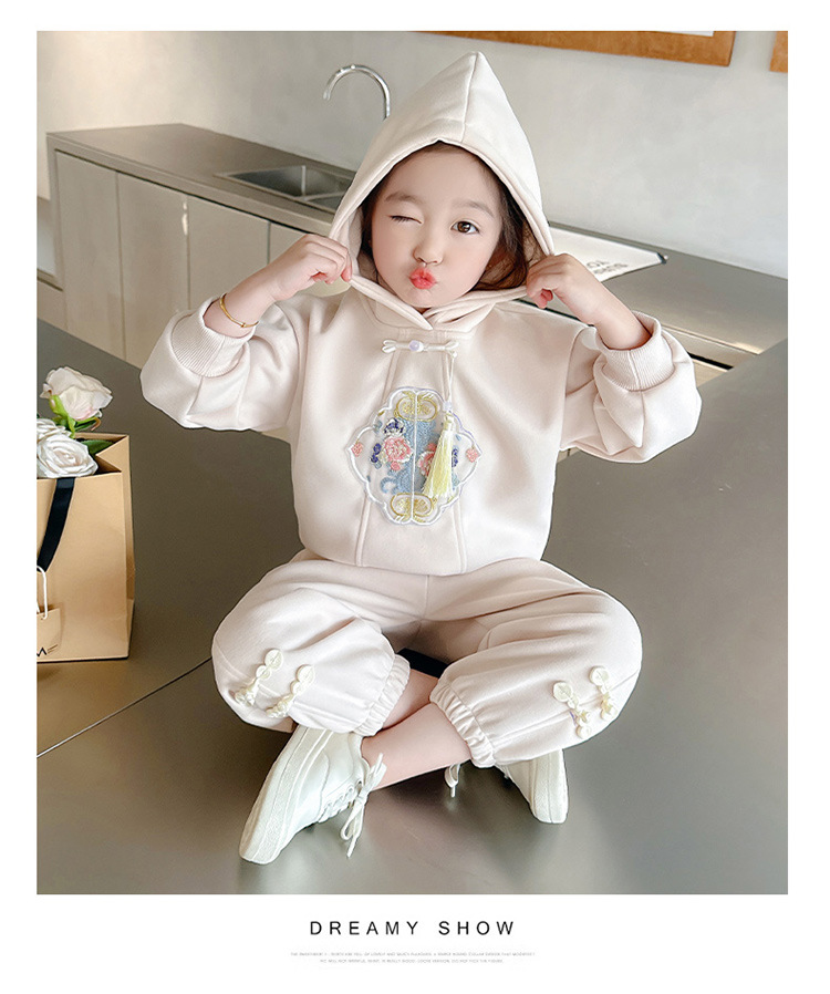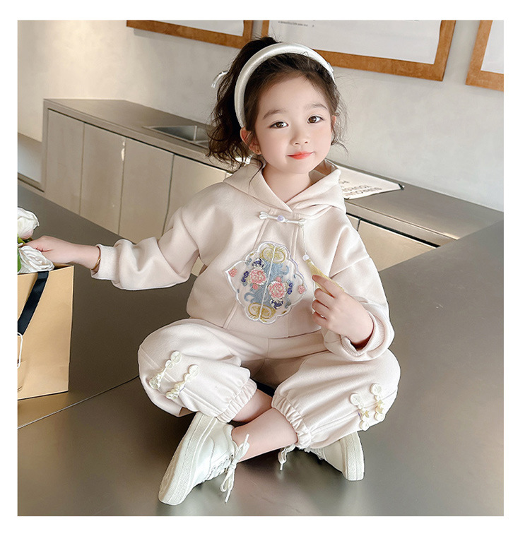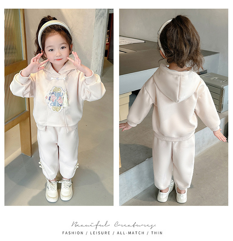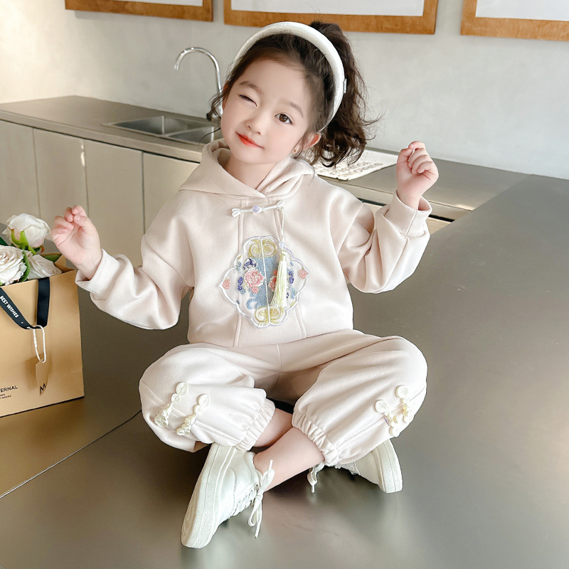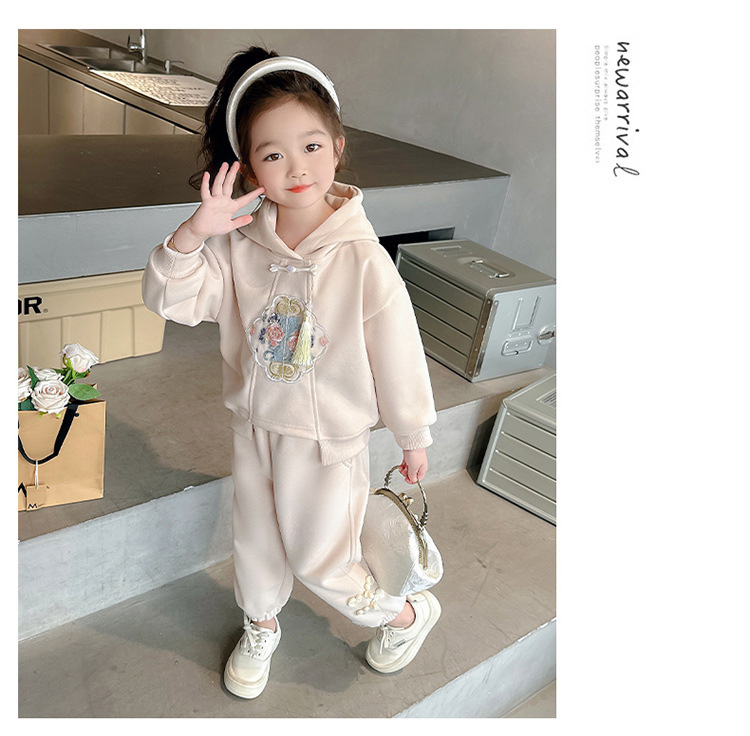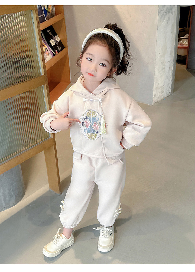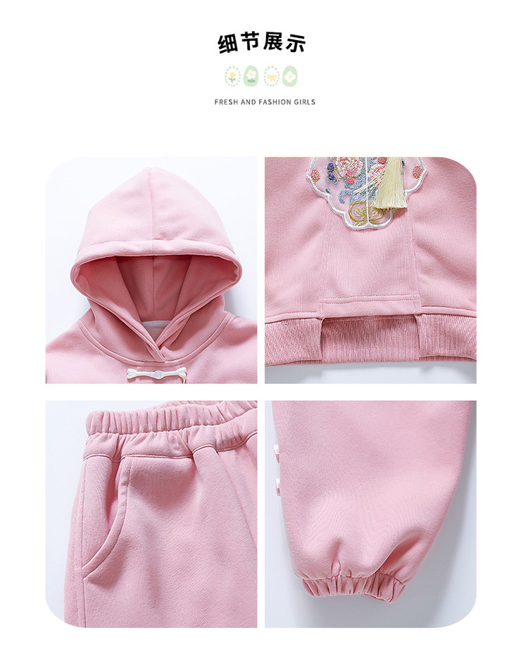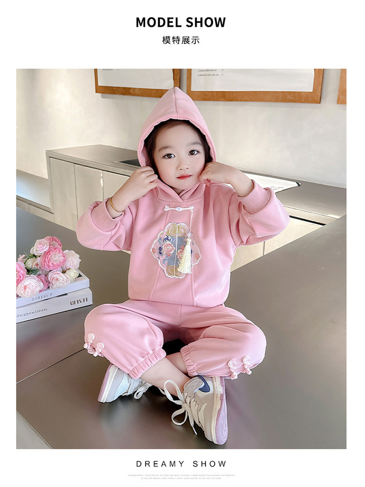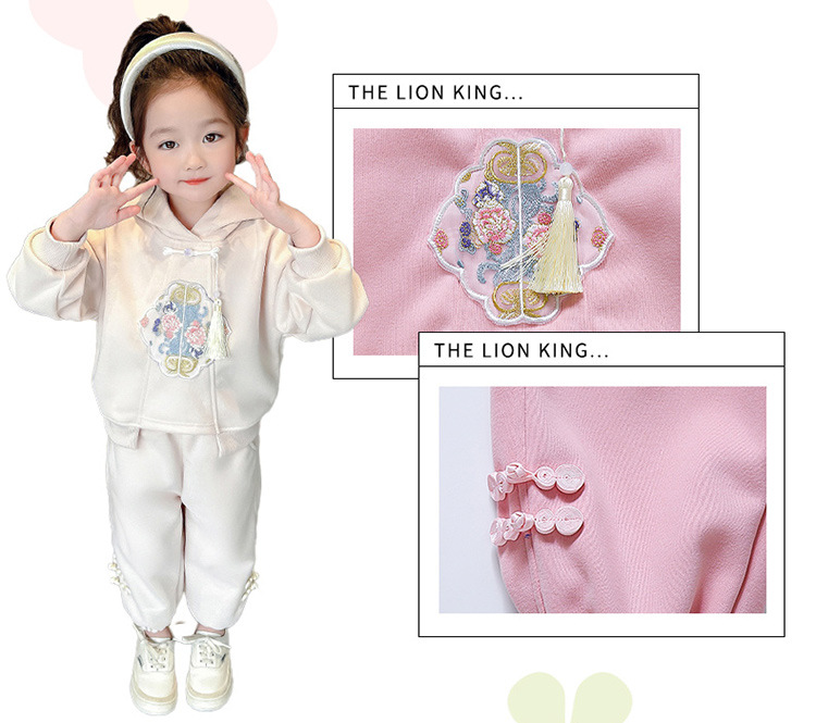 여자 중국 스타일 버클 세트 2024 봄과 가을 새로운 유행 어린이 아기 소녀 캐주얼 스포츠 투피스 세트