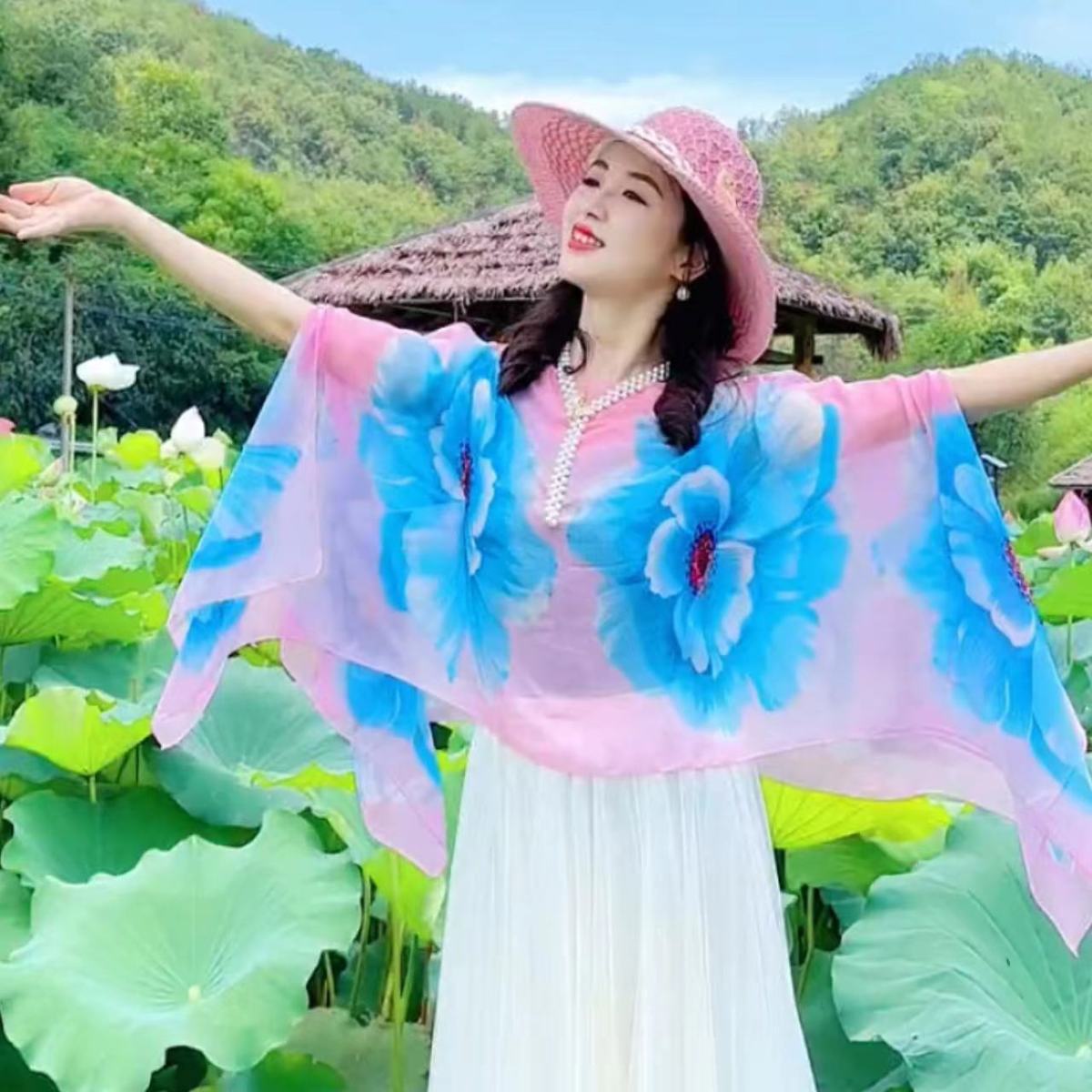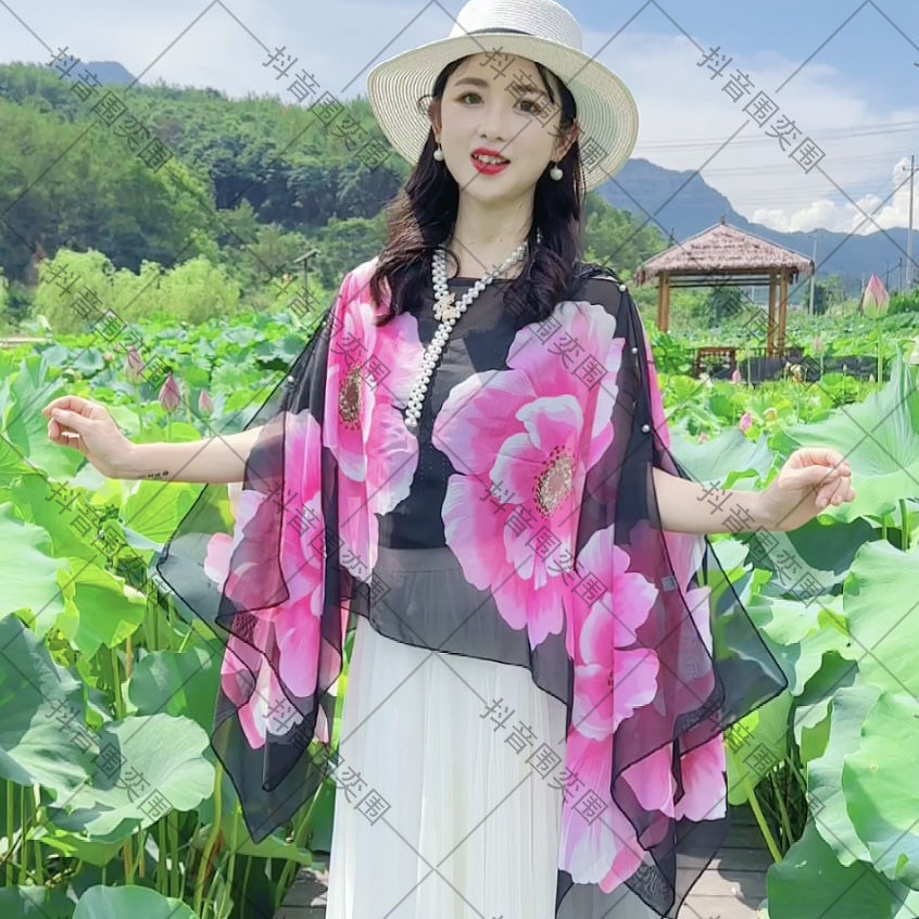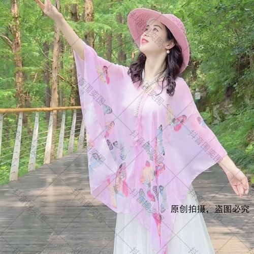 [웨이 Yi] * 150 나비 인쇄 다채로운 여행 목도리 쉬폰 태양 보호 셔츠 춤 슬리밍 커버 고기