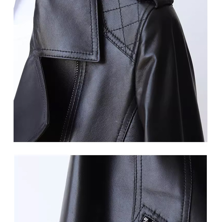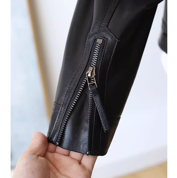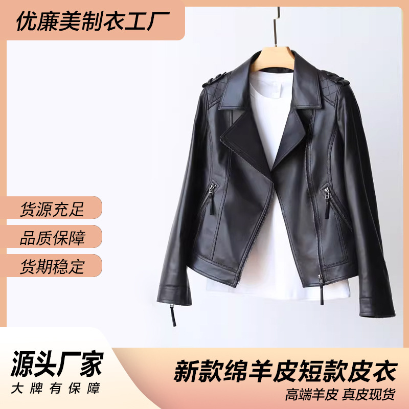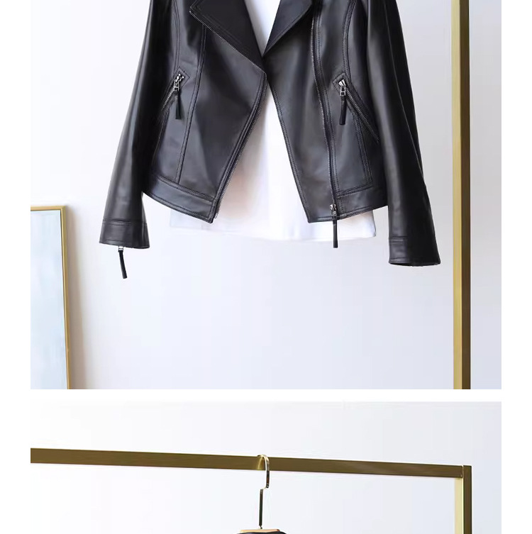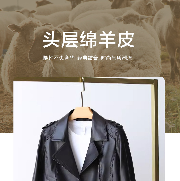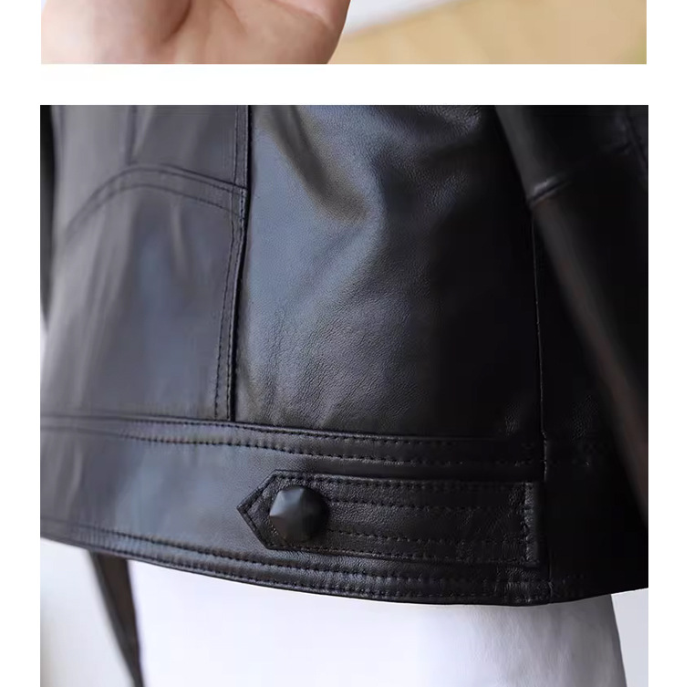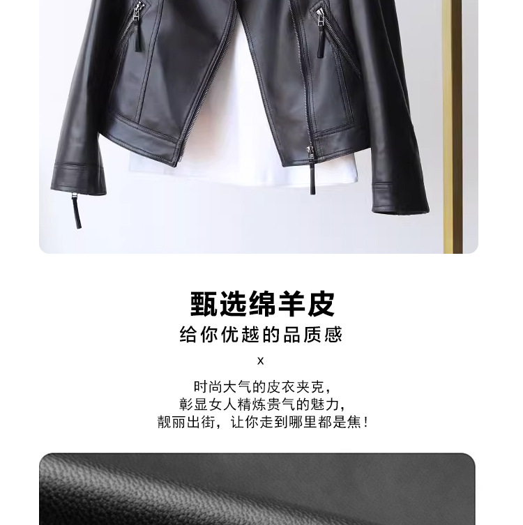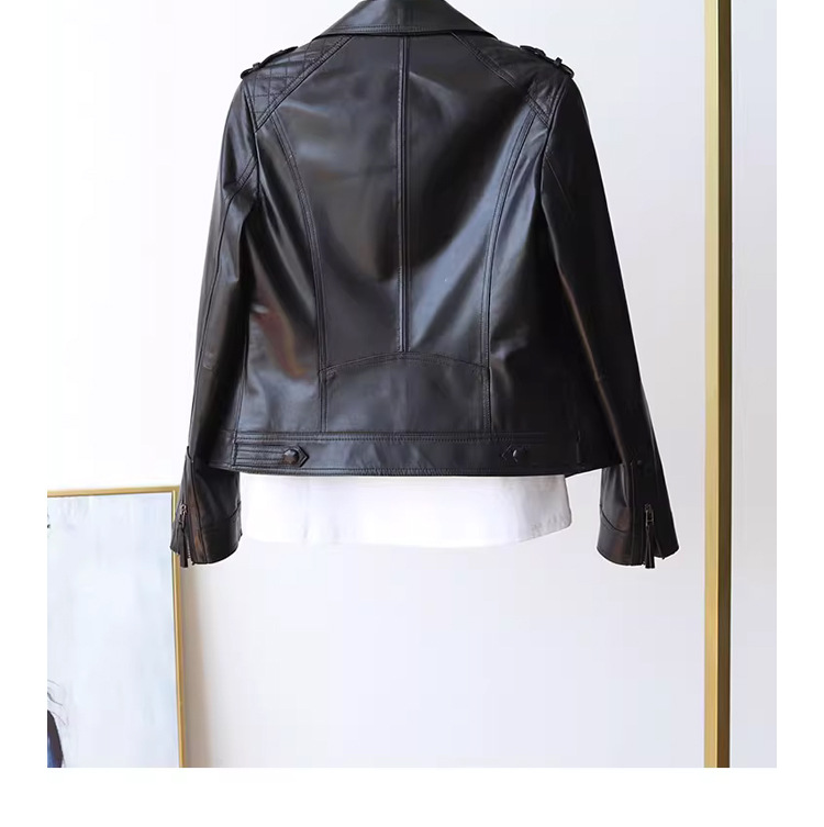 블랙 양가죽 재킷 여성용 슬림핏 2025 봄 가을 신상 다용도 라펠 바이커 가죽 재킷스토어 가기