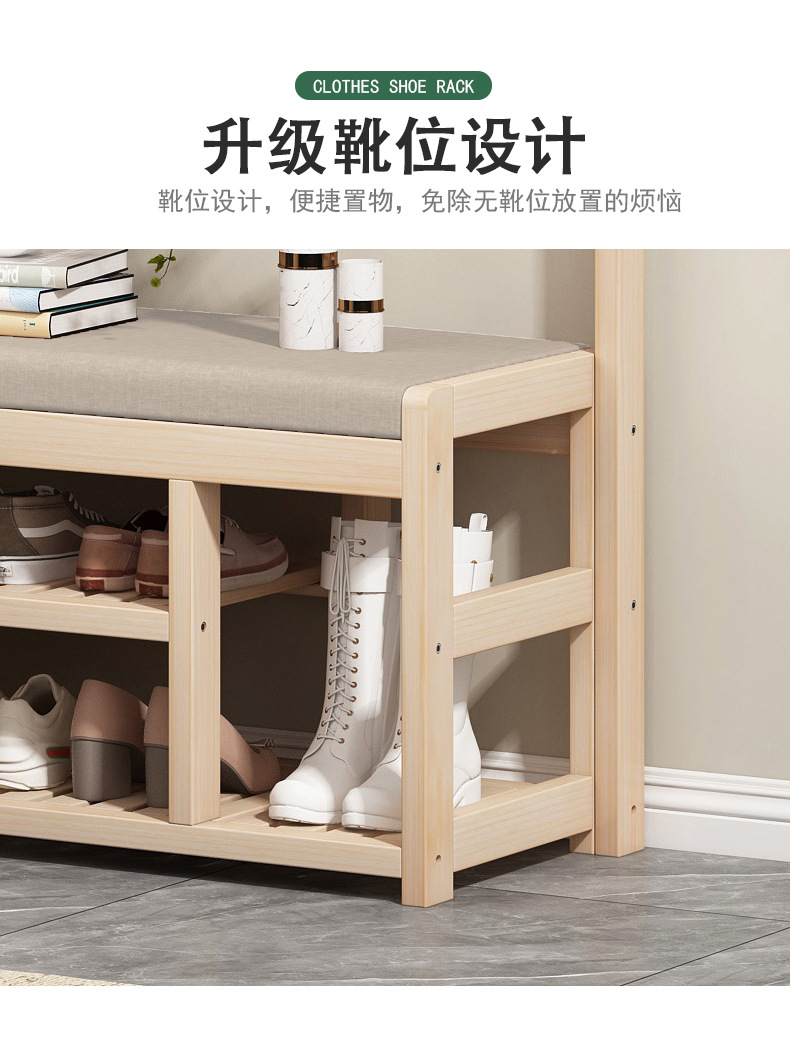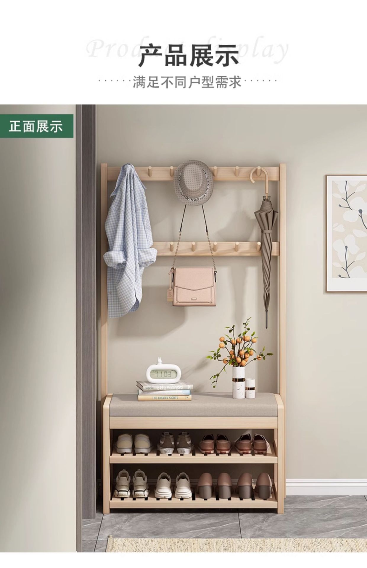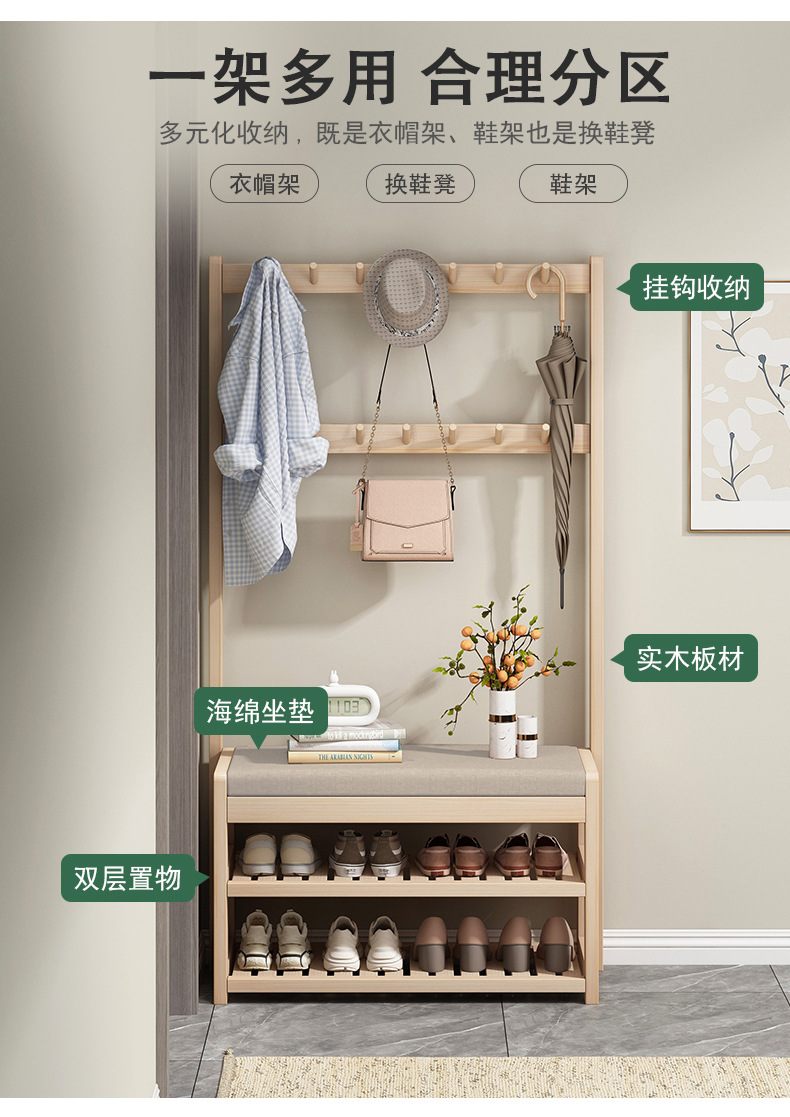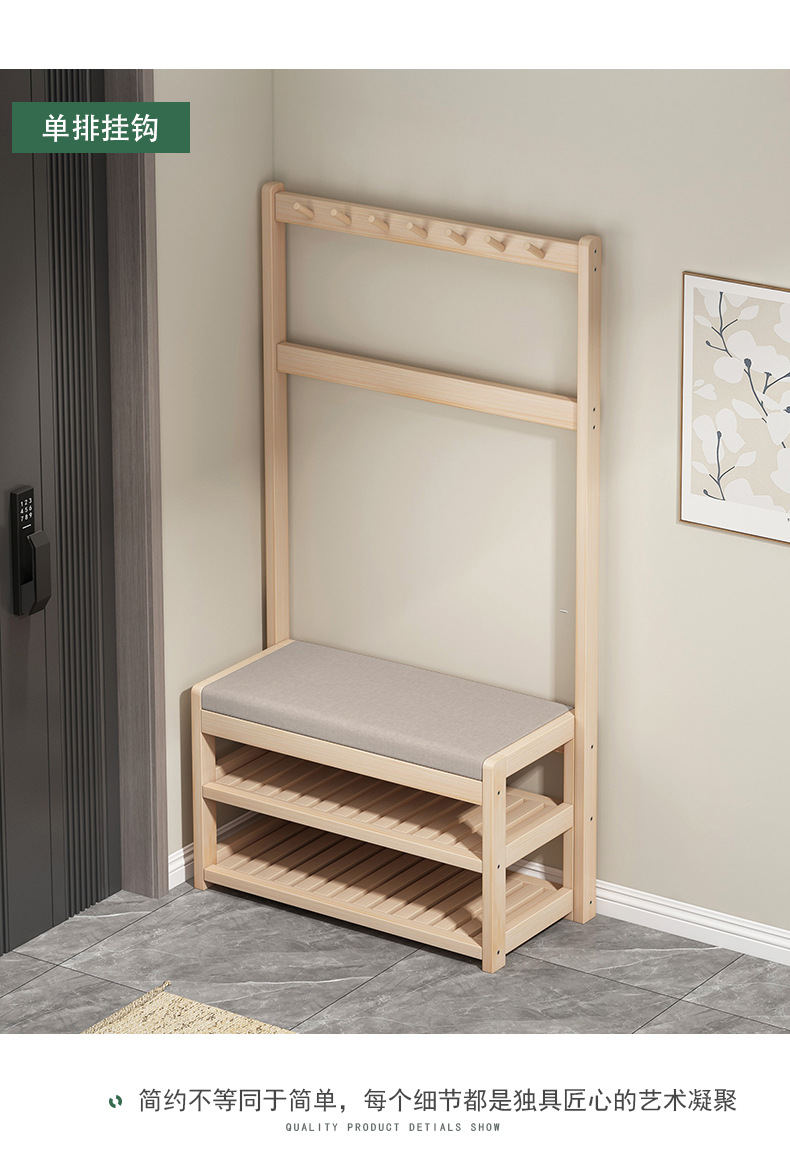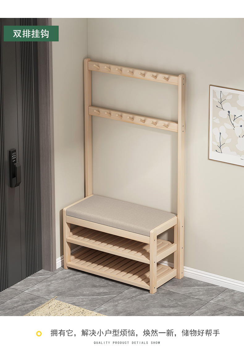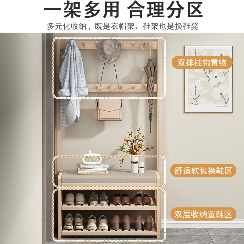 통합 도어 소프트 백 가정용 솔리드 우드 쿠션 다기능 복도 옷걸이 신발 랙 신발 변경 의자 코트 랙