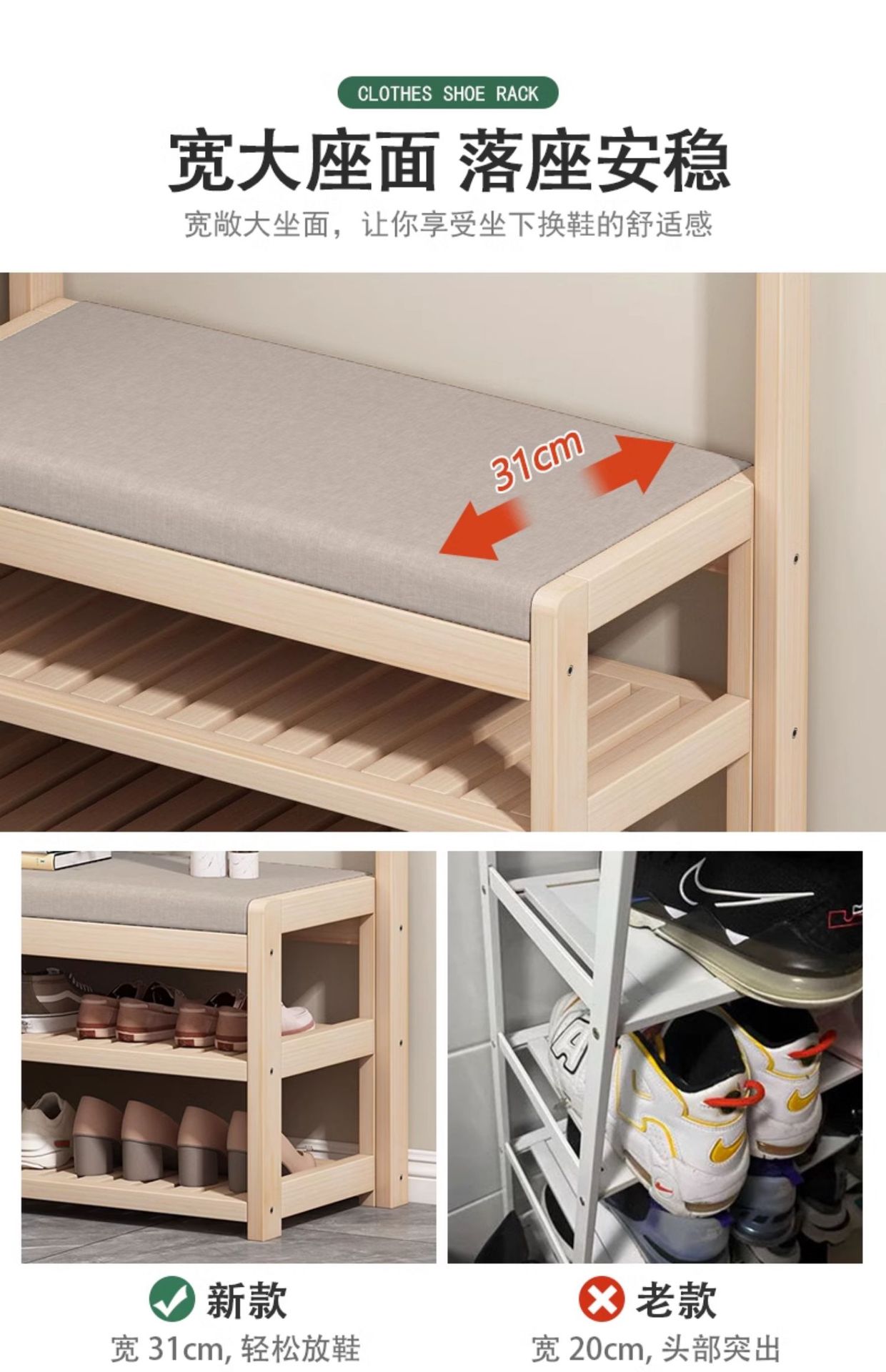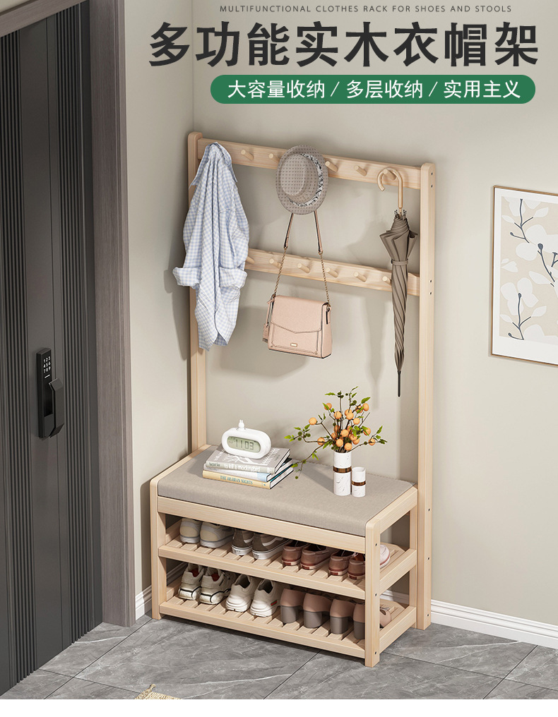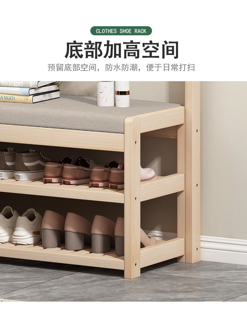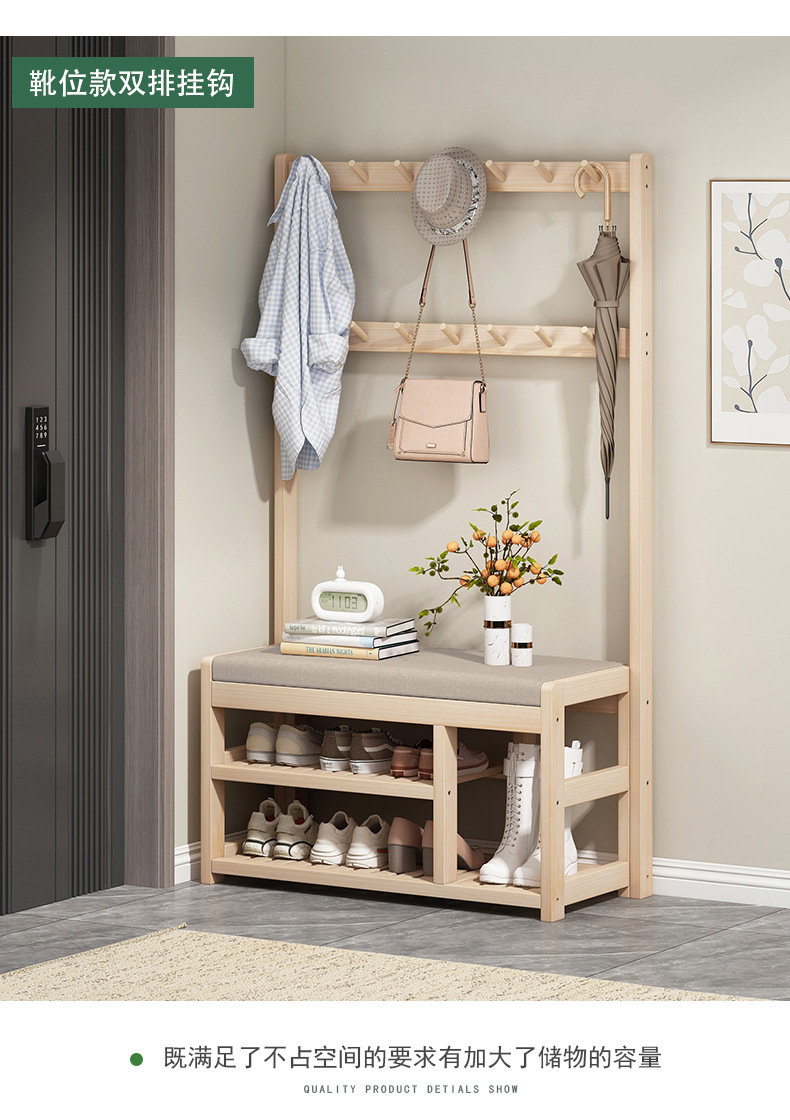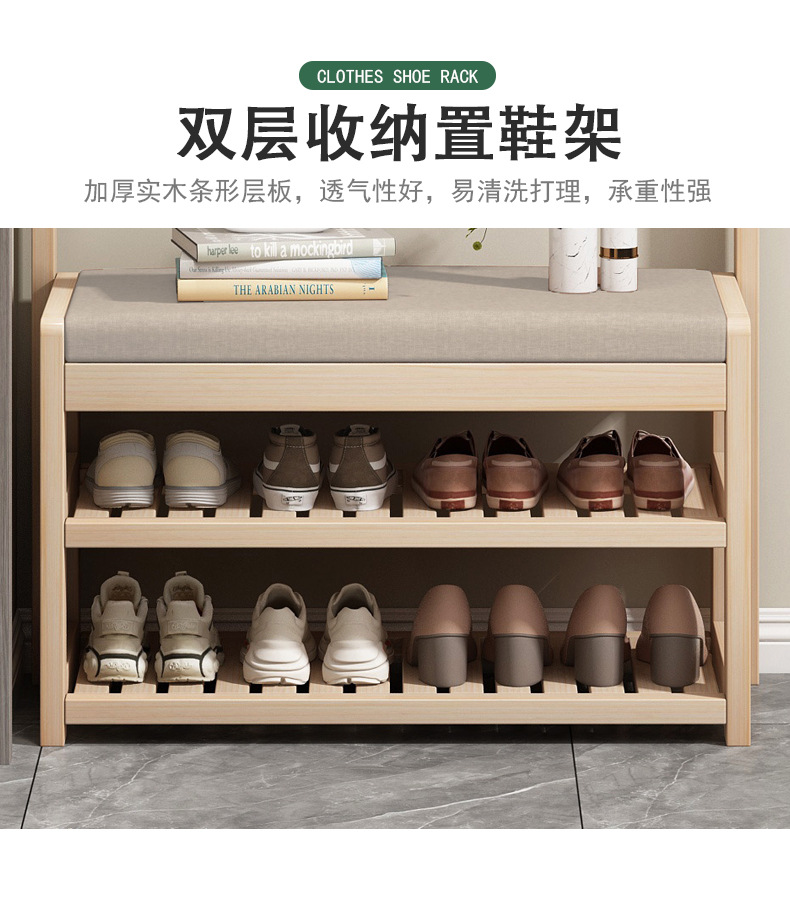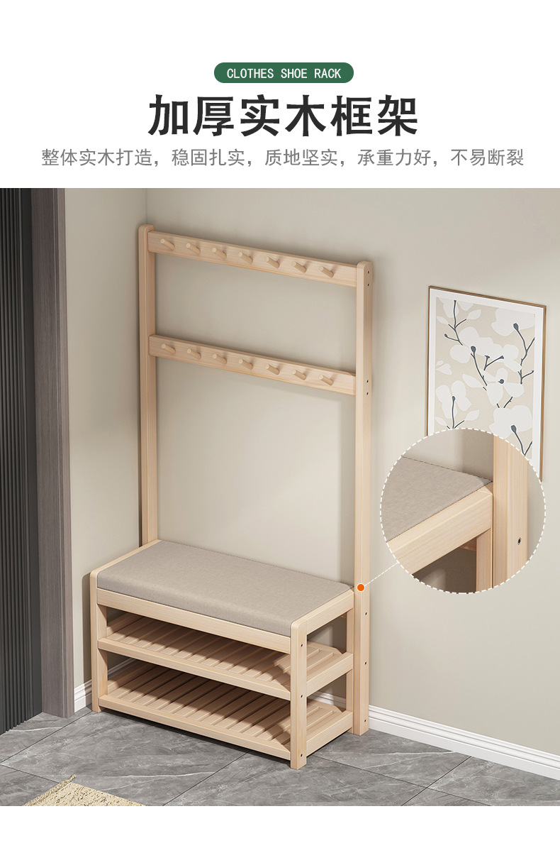 통합 도어 소프트 백 가정용 솔리드 우드 쿠션 다기능 복도 옷걸이 신발 랙 신발 변경 의자 코트 랙