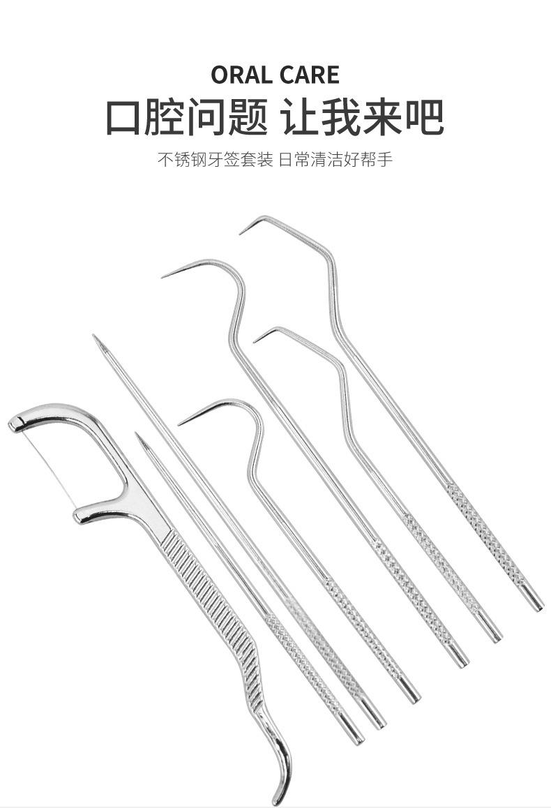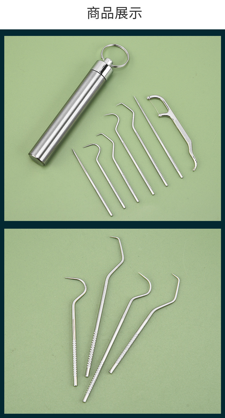 스테인레스 스틸 이쑤시개 세트 가정용 구강 치아 청소 관리 휴대용 이쑤시개 크로 셰 뜨개질 도구스토어 가기