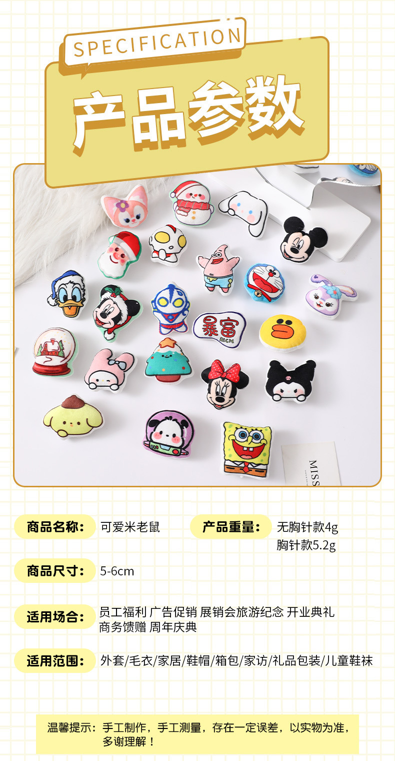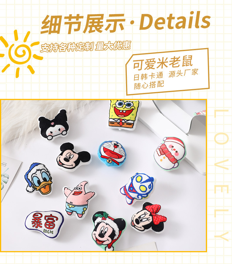 만화 플러시 펜던트, 귀여운 미키 인형, 가방 펜던트, 브로치, 액세서리, 핀, 주얼리, 의류, DIY스토어 가기