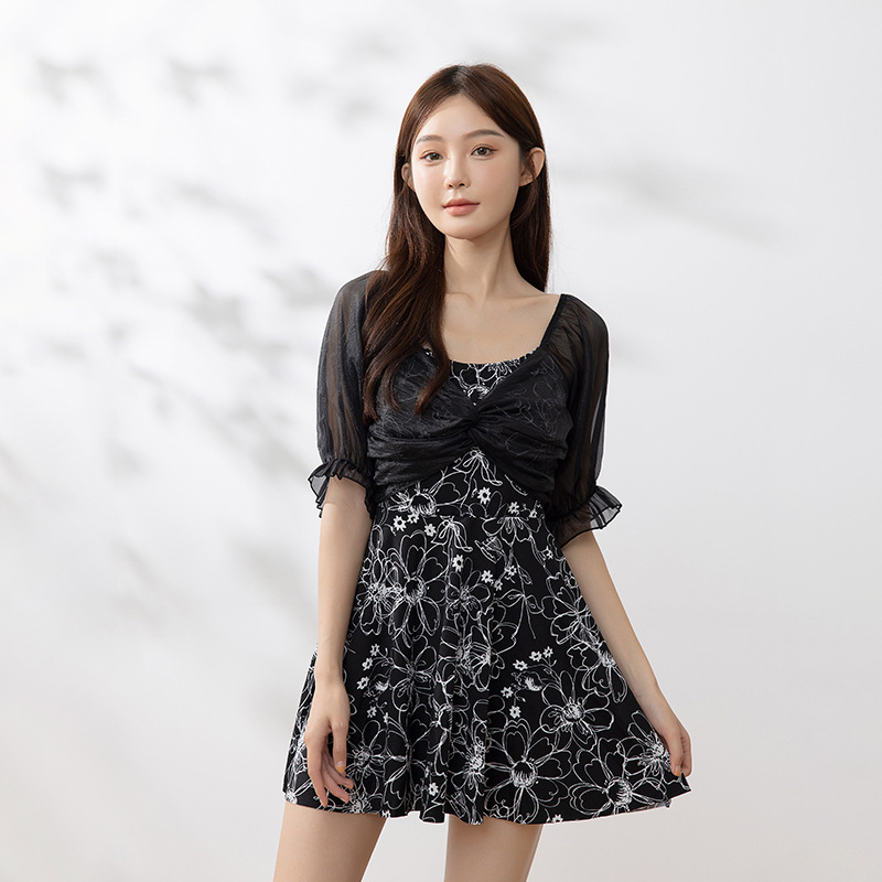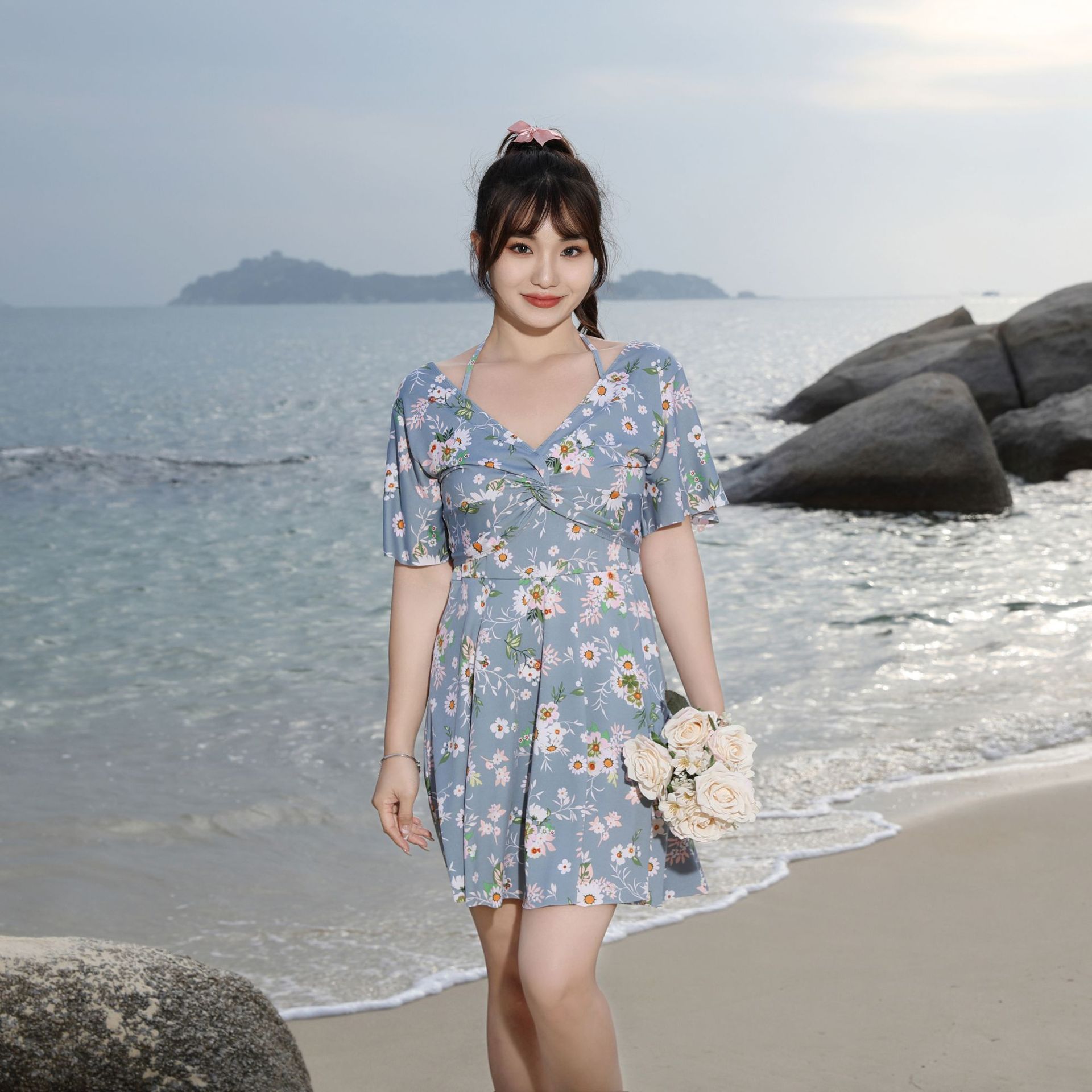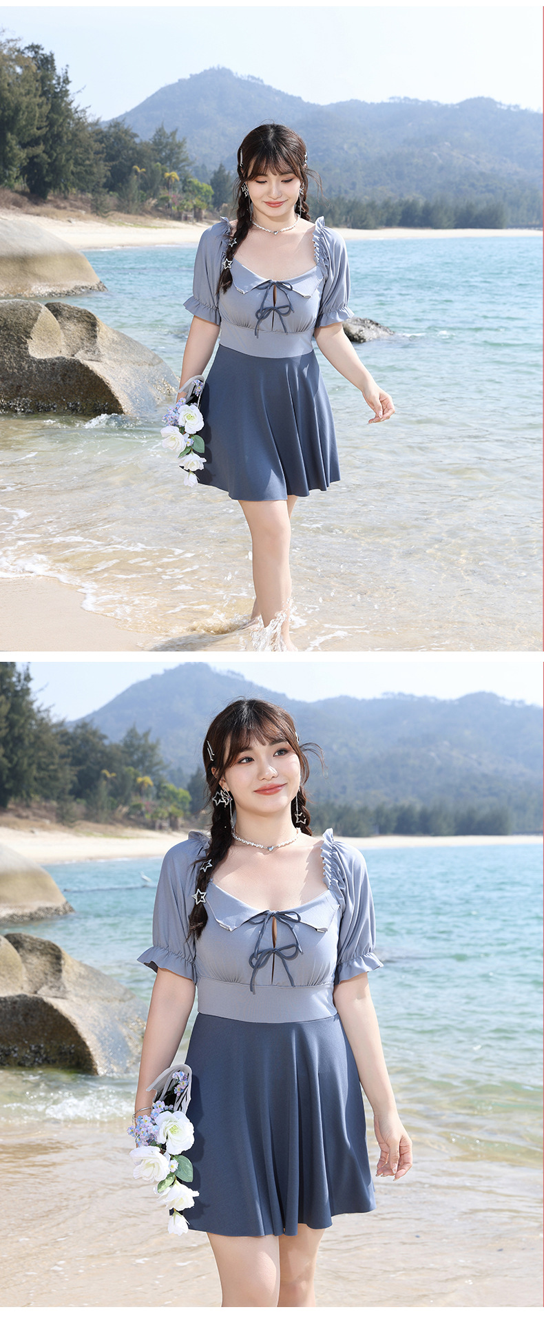 사랑스러운 스타일 뚱뚱한 자매 플러스 플러스 사이즈 원피스 수영복 느슨한 고기 덮인 원피스 온천 수영복 폭발성 수영복
