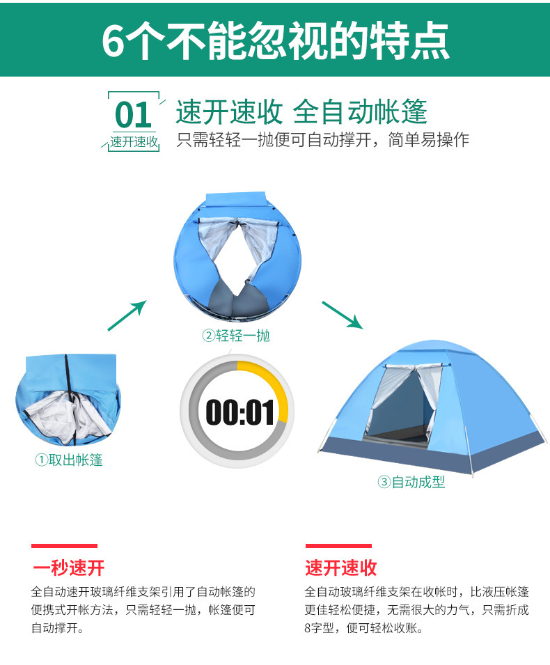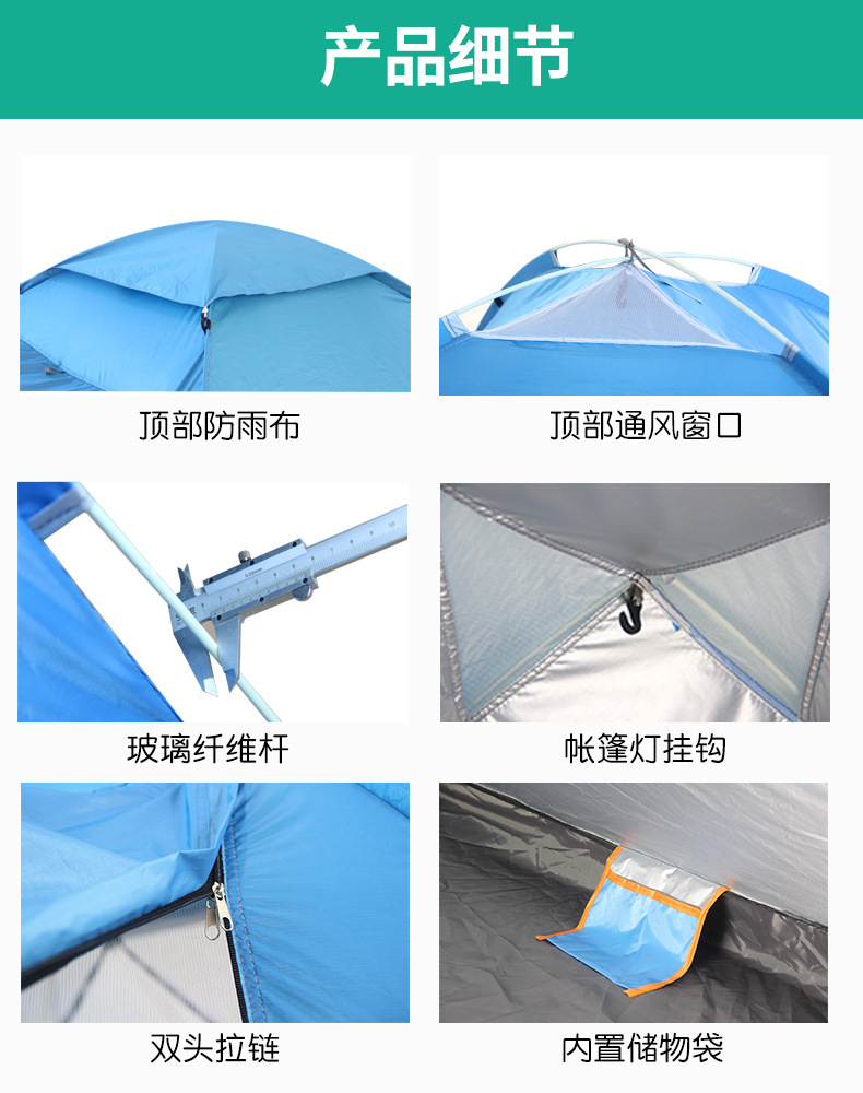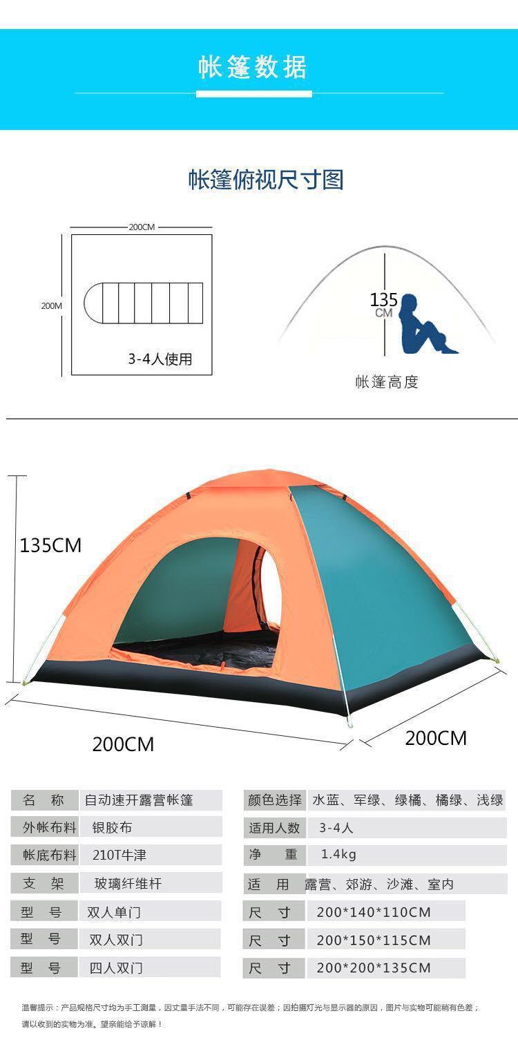 완전 자동 빠른 개방 캠핑 텐트 야외 용품 캠핑 실내 공원 태양 보호 및 방수 무료 건설 공장 도매스토어 가기