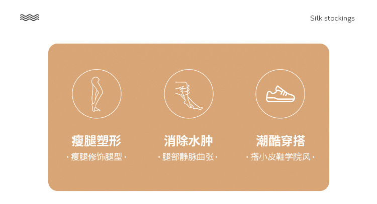 本产品非医疗压力袜/瘦腿袜,不具备医疗效果请勿替代医疗用途。显瘦、瘦腿等属于非医疗性宣传,属穿着后视觉效果。