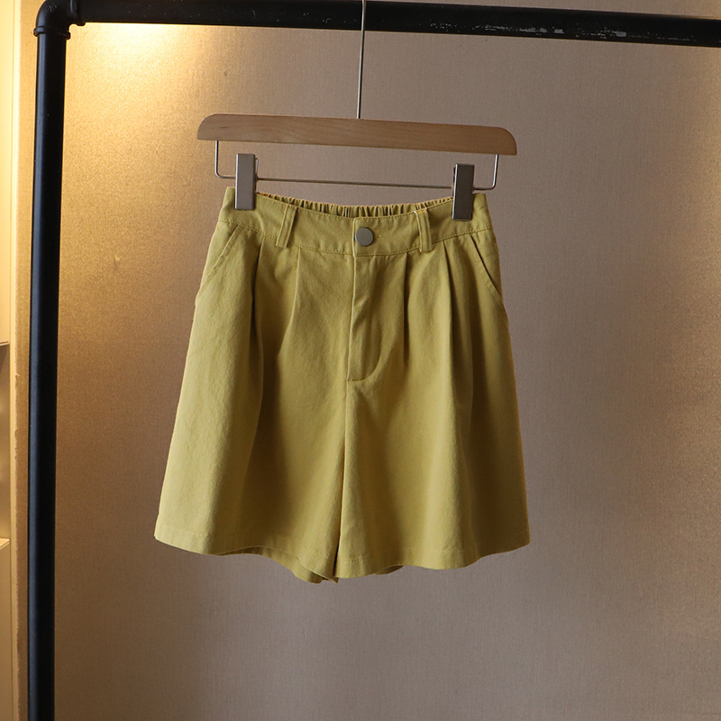 한국식 [Bizheng] 2024 여름 새로운 하이 허리 캐주얼 반바지 여성의 작은 다용도 느슨한 넓은 다리 바지 1091