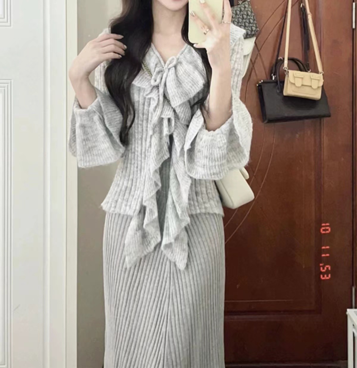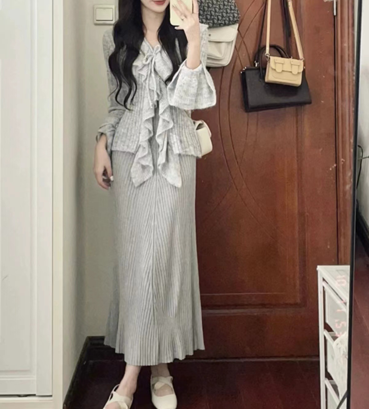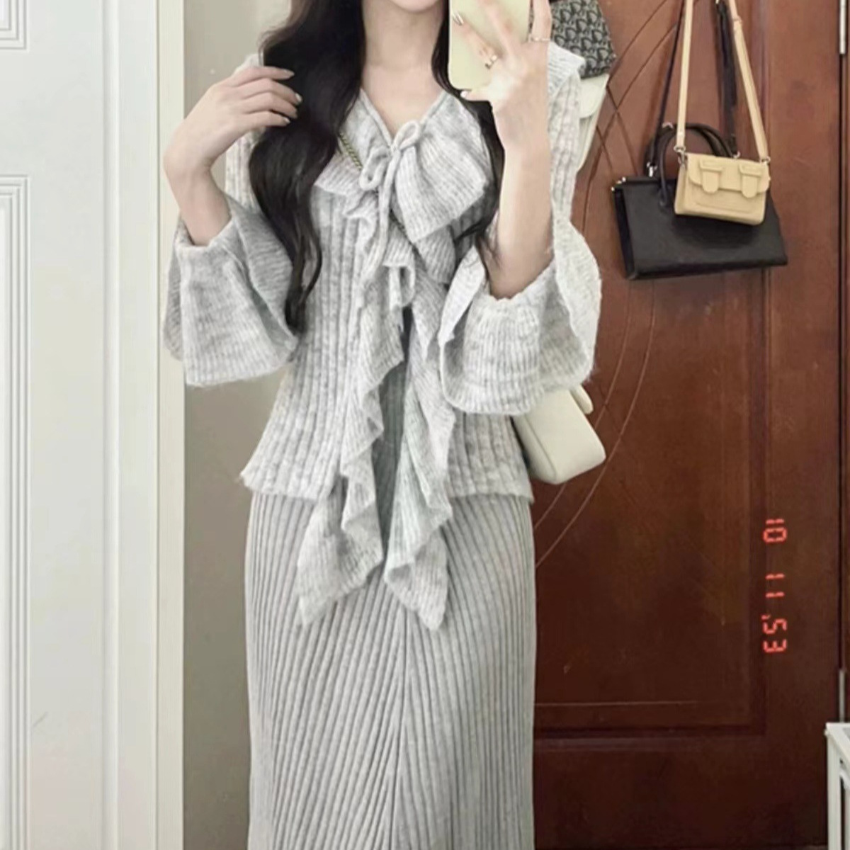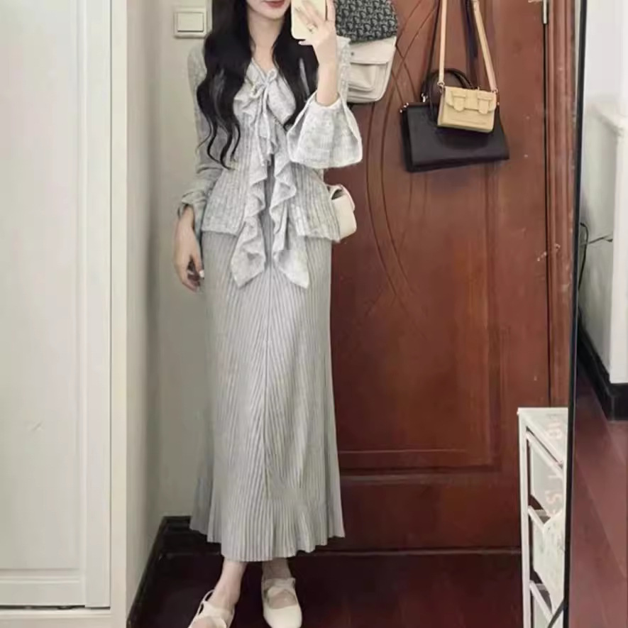 프랑스 스타일 우아한 V 넥 러플 호른 슬리브 니트 스웨터 여성용 봄과 가을 내부 스웨터 카디건 니치 칙 탑스토어 가기