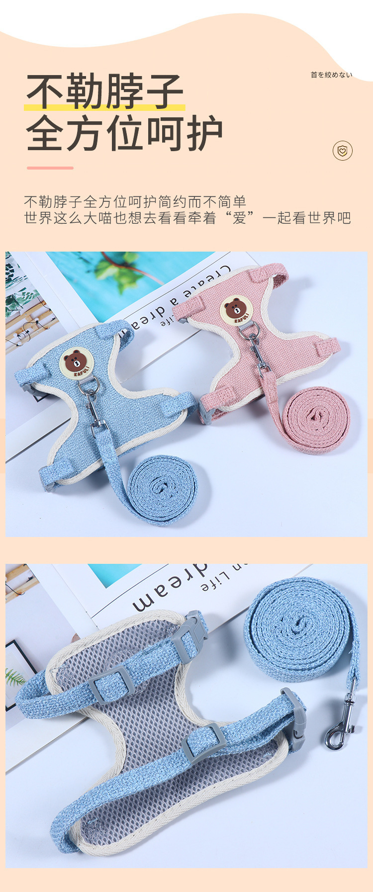 고양이 견인 로프 조끼 스타일 귀여운 만화 애완 동물 가슴 스트랩 사내 안티 브레이크 개 견인 밧줄 고양이 워킹 로프스토어 가기