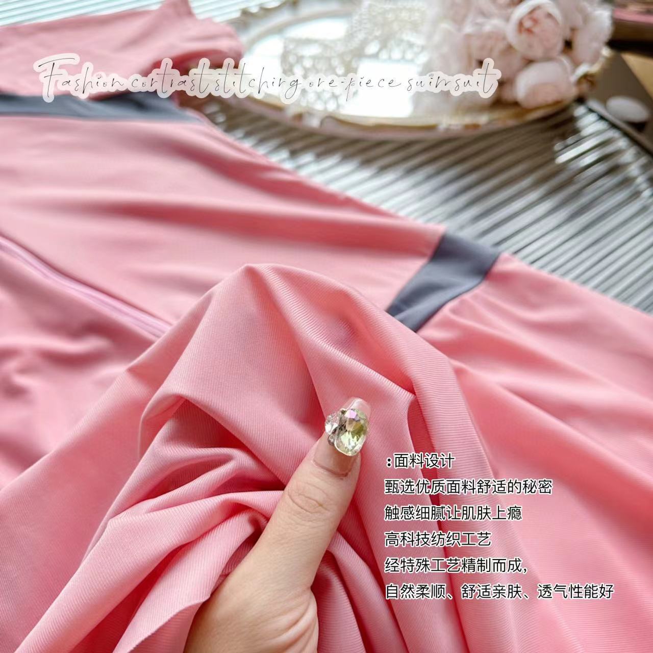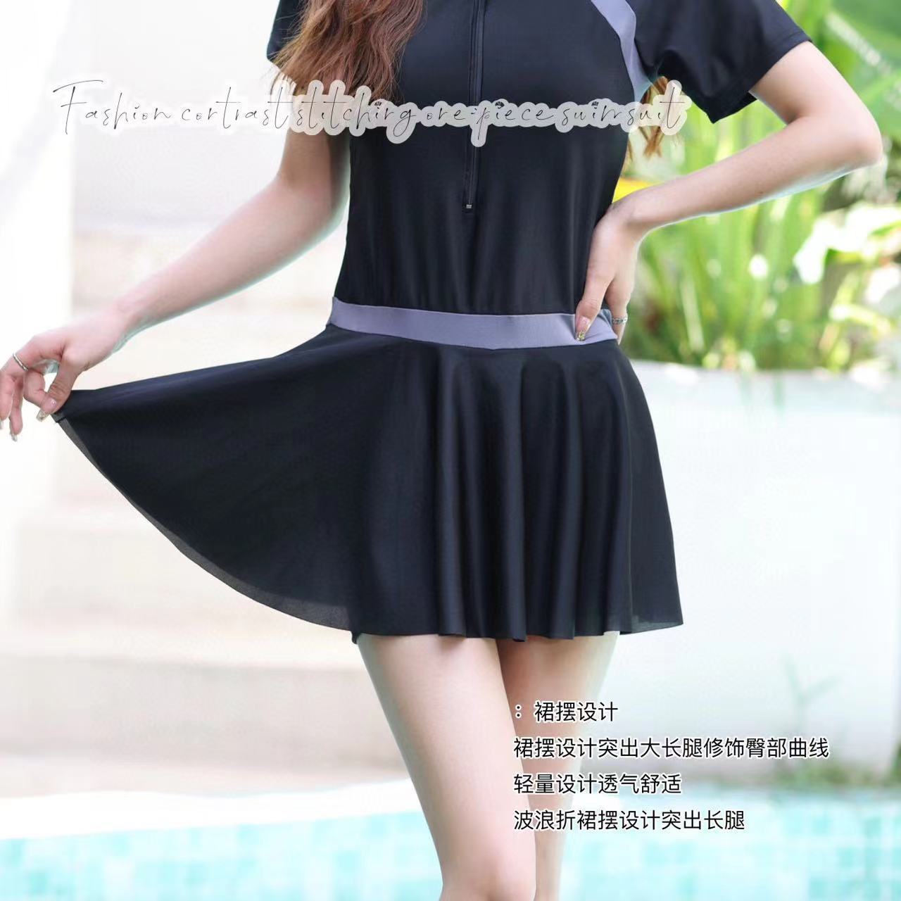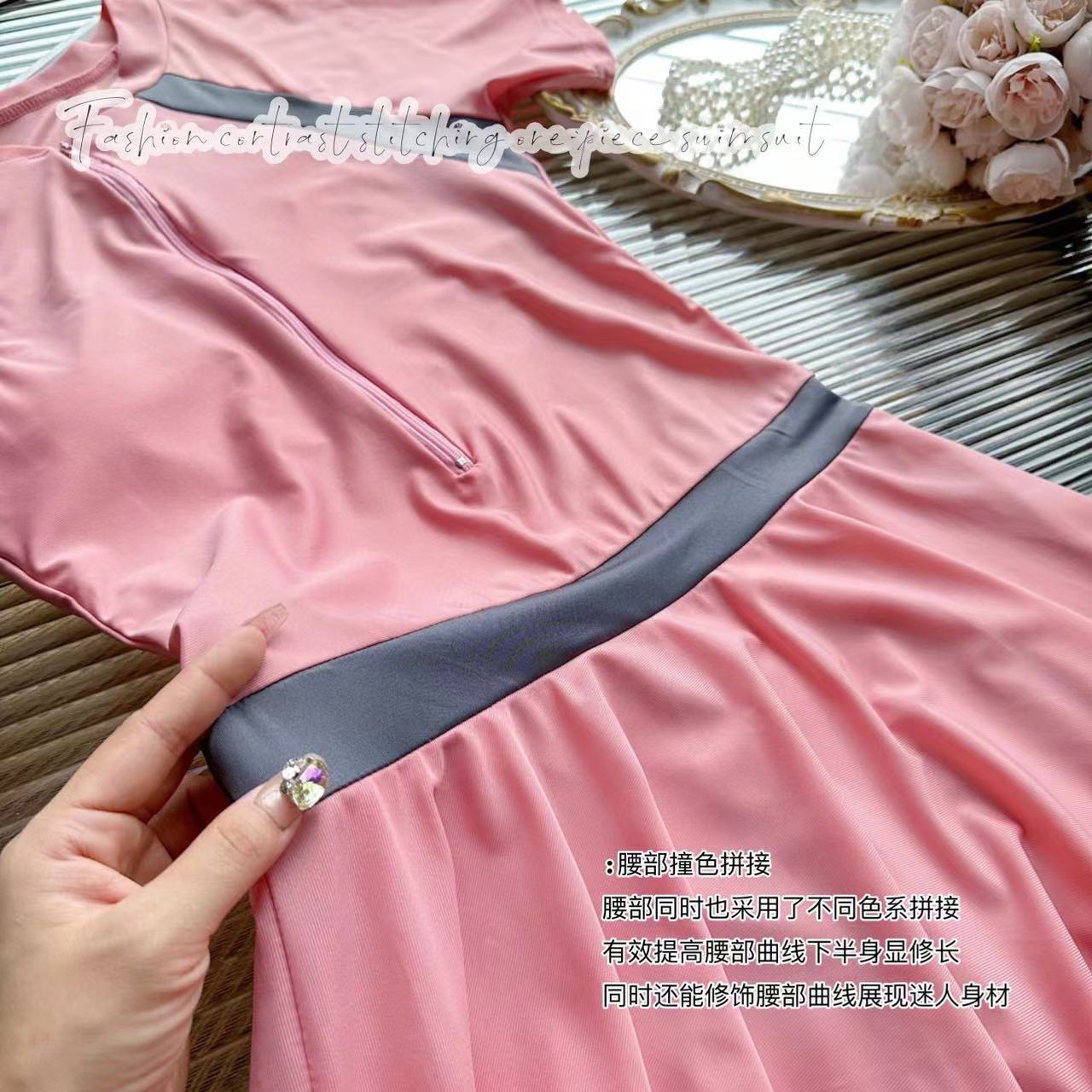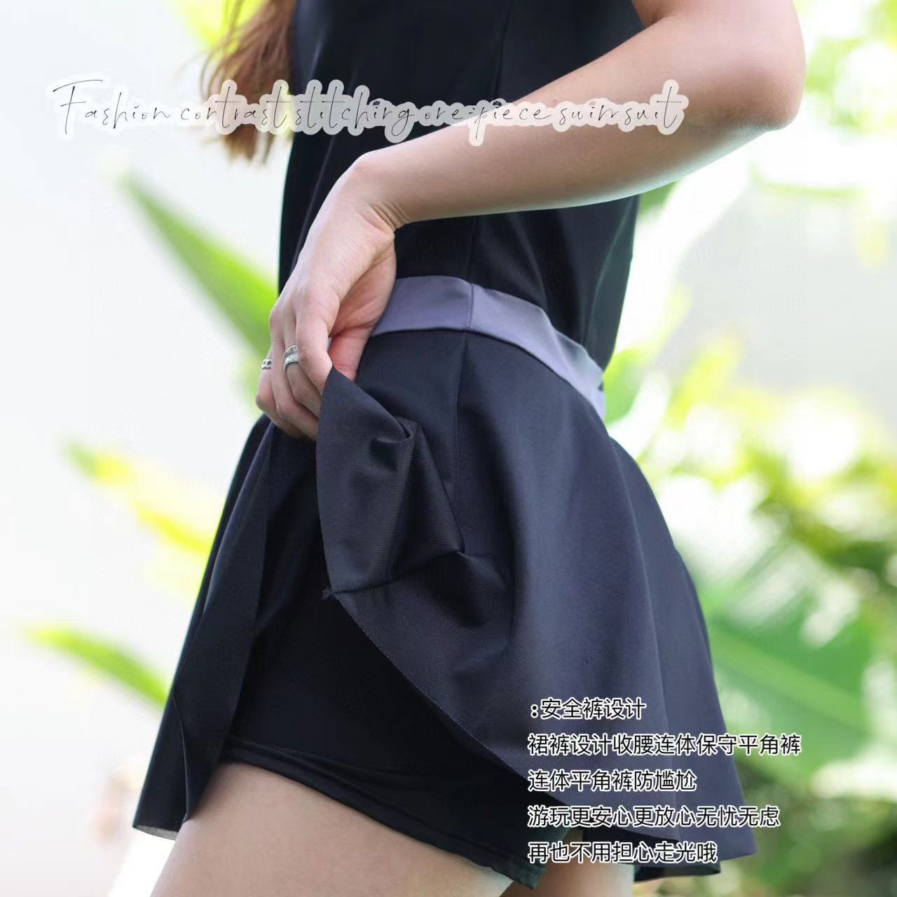 세련된 슬리밍 보수적 인 슬림 스커트 수영 야외 태양 보호 수영복을 덮는 대조적 인 컬러 스티칭 원피스 수영복 여성 배꼽스토어 가기