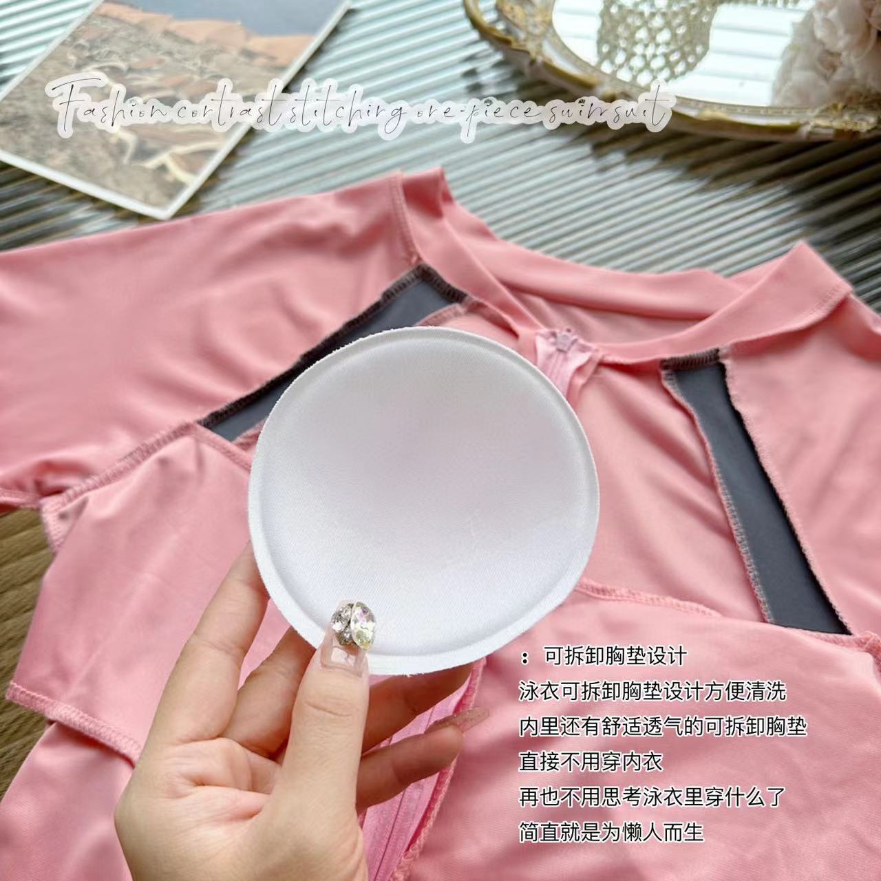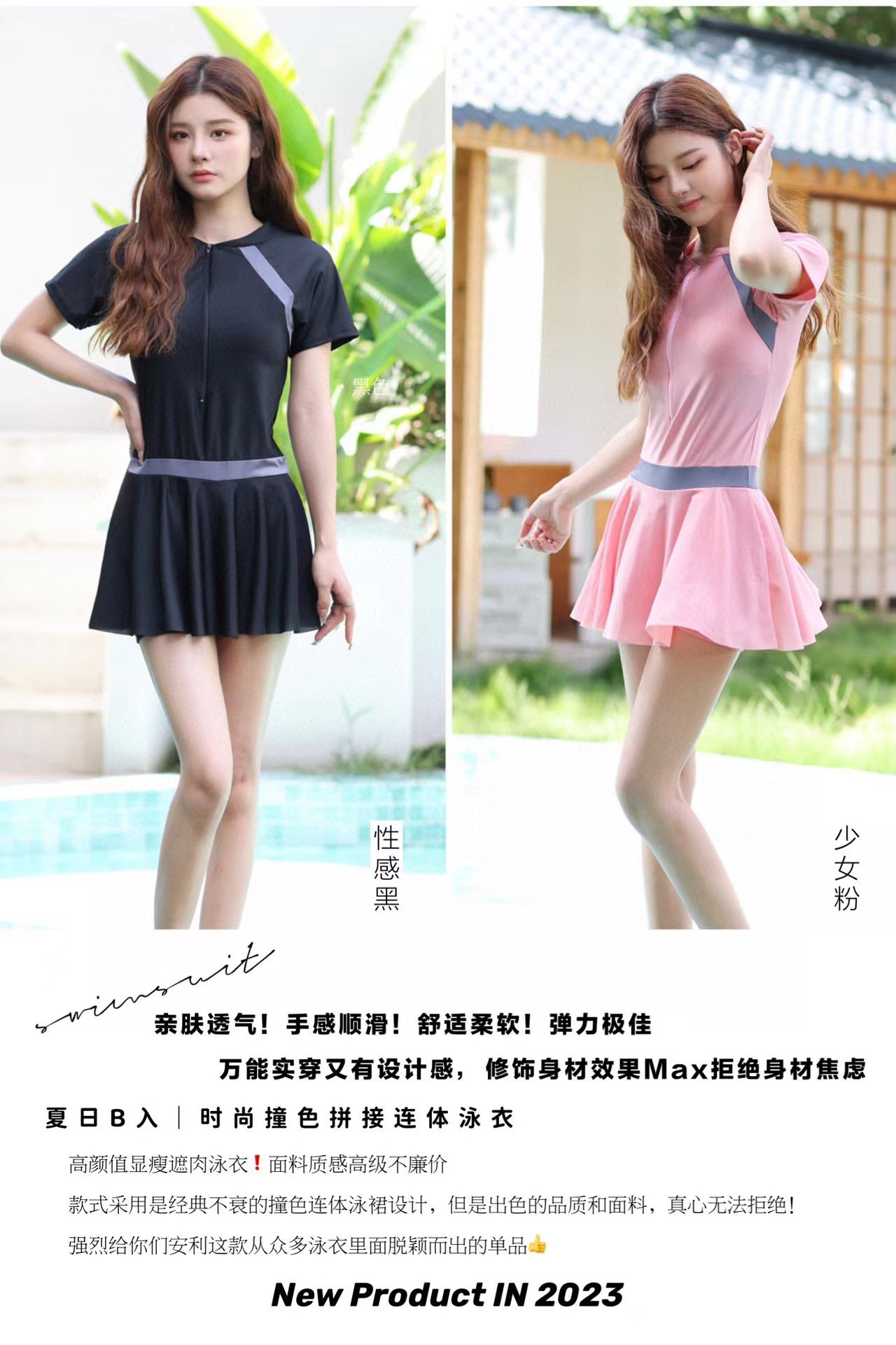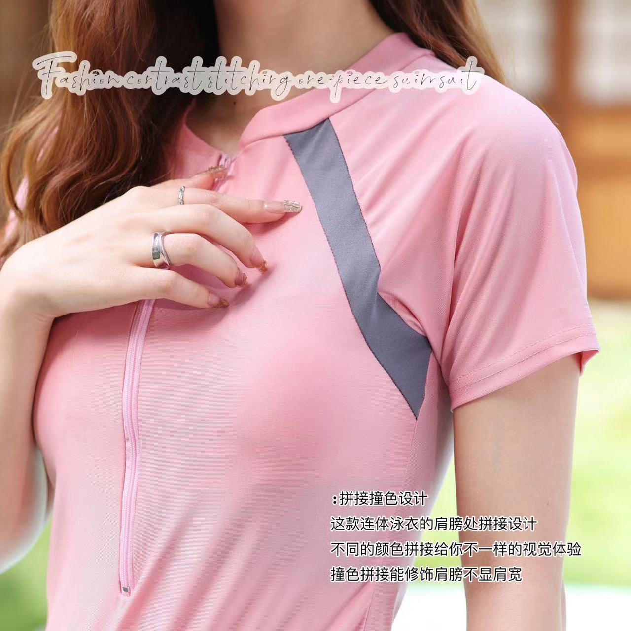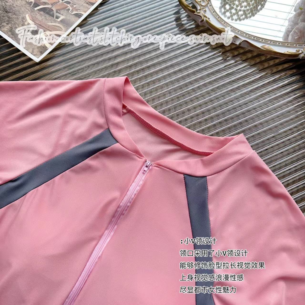 세련된 슬리밍 보수적 인 슬림 스커트 수영 야외 태양 보호 수영복을 덮는 대조적 인 컬러 스티칭 원피스 수영복 여성 배꼽스토어 가기