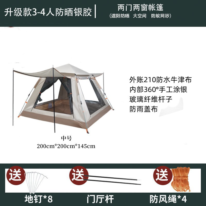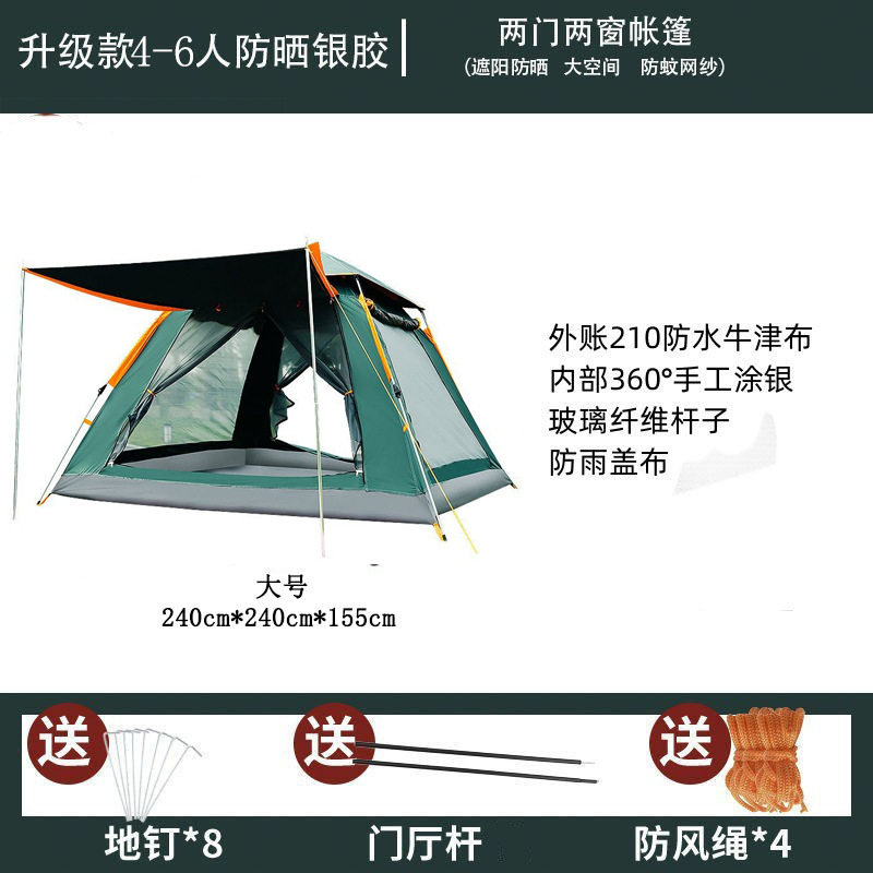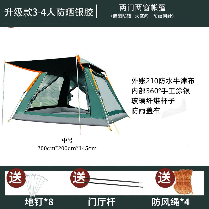 3~4인용 4면 텐트, 야외 휴대용, 완전 자동, 빠른 설치, 공원 캠핑, 방풍, 휴대용, 설치 불필요