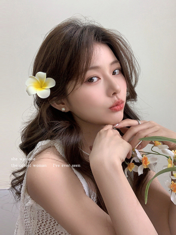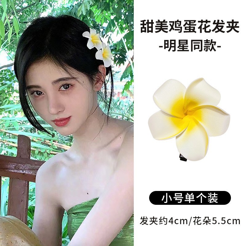 계란 꽃 머리핀 여성 머리 장식 이마 깨진 머리핀 사진 꽃 헤어 액세서리 앞머리 사이드 클립 덕빌 클립 머리핀