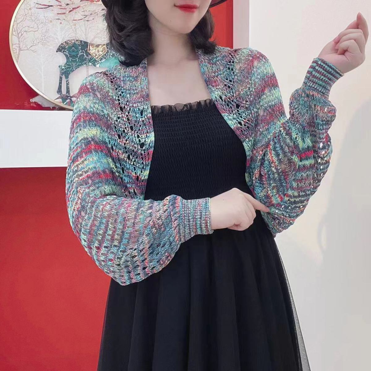 민족 스타일 새틴 컬러 숄 아이스 실크 통기성 시원한 느낌 다재다능한 여름 중공 니트 작은 코트 에어컨 룸 아우터 웨어스토어 가기