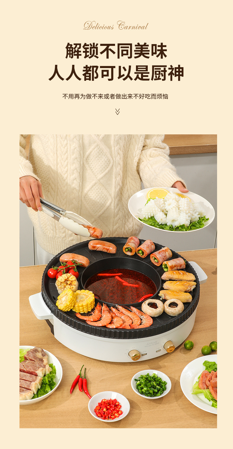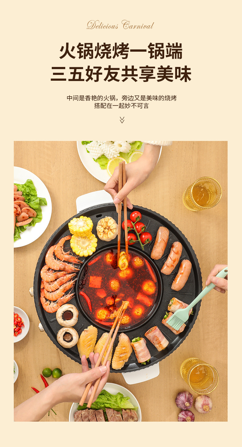 유럽 표준 전기 바베큐 오븐 영국 표준 바베큐 냄비 미국 표준 한국 다기능 바베큐 기계 이중 사용 냄비, 끓는 및 베이킹 통합 냄비