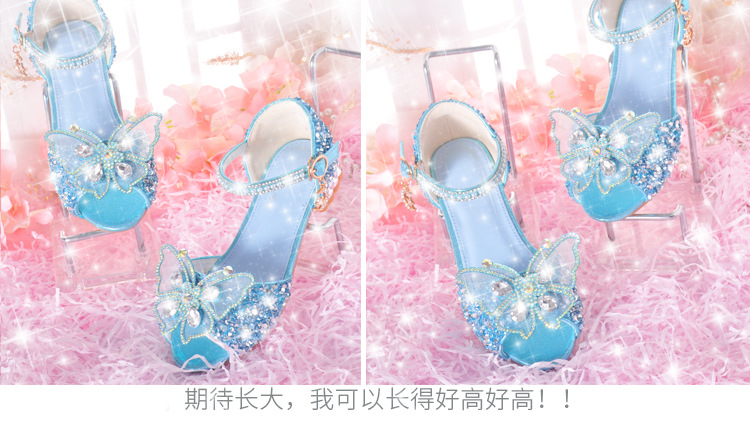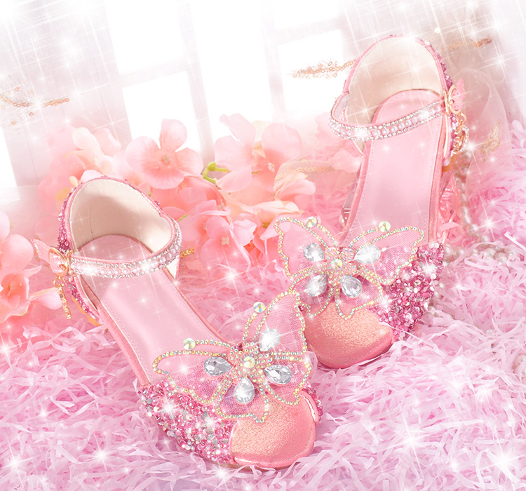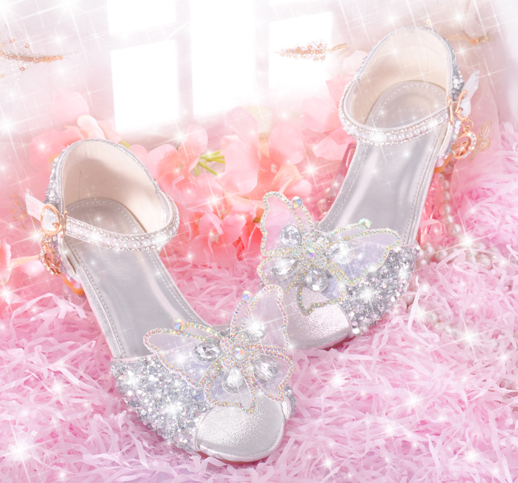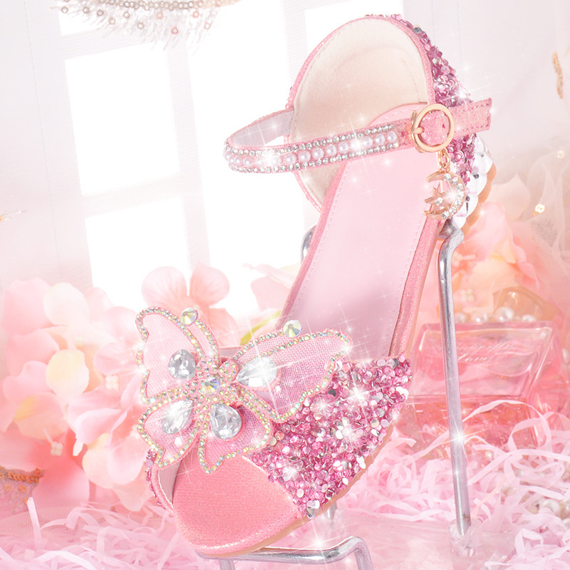 공주 아이샤 샌들 2024 여름 새로운 어린이 샌들 여성 크리스탈 소프트 솔 하이 엔드 걸스 하이힐 샌들스토어 가기