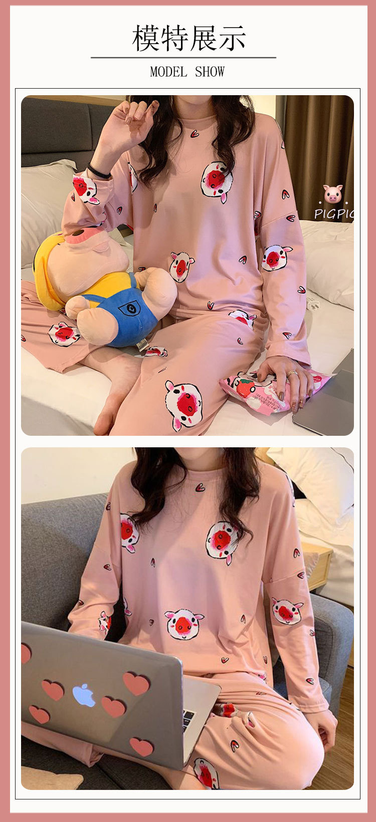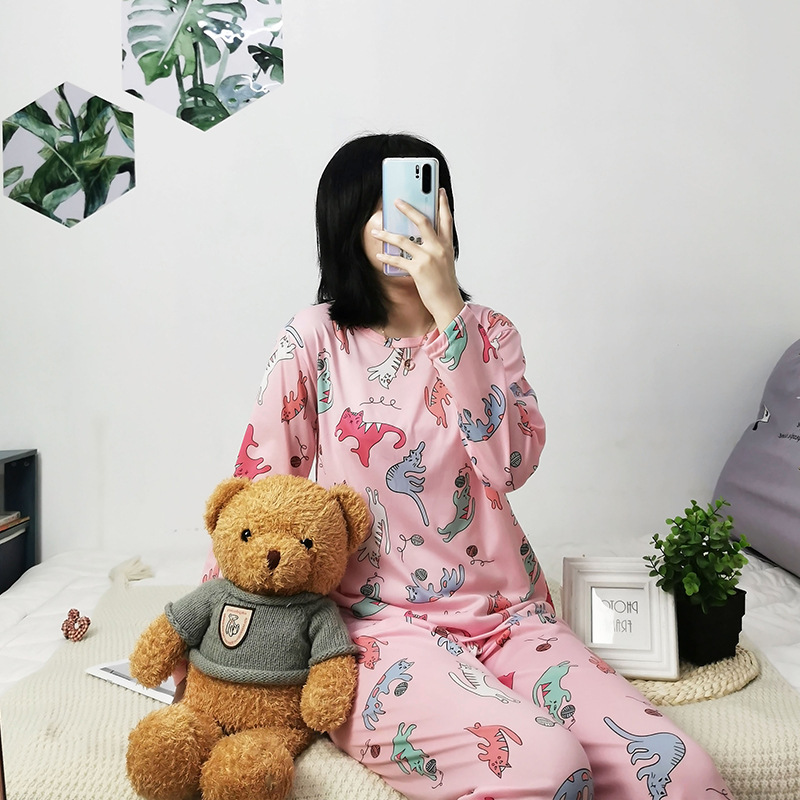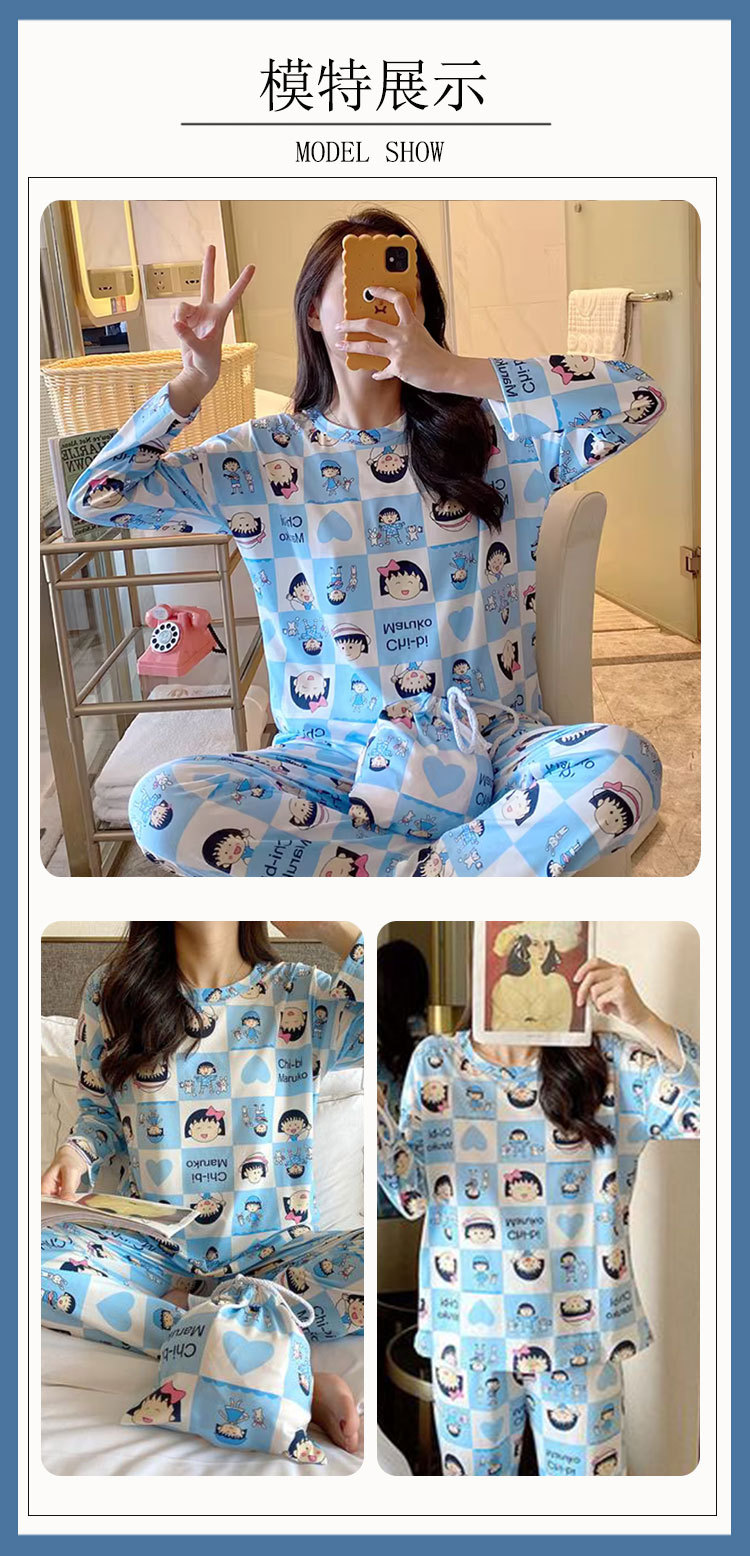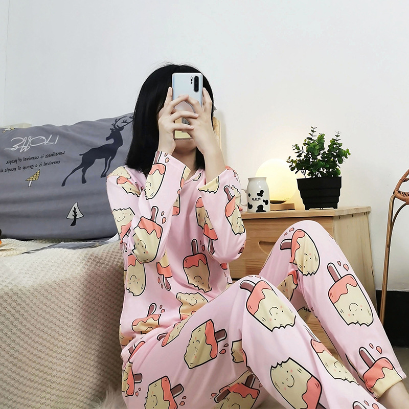 공장 도매 여성용 잠옷 봄, 가을, 여름 긴팔 만화 귀여운 홈웨어 소녀 스타일 일본식 상큼한 세트스토어 가기