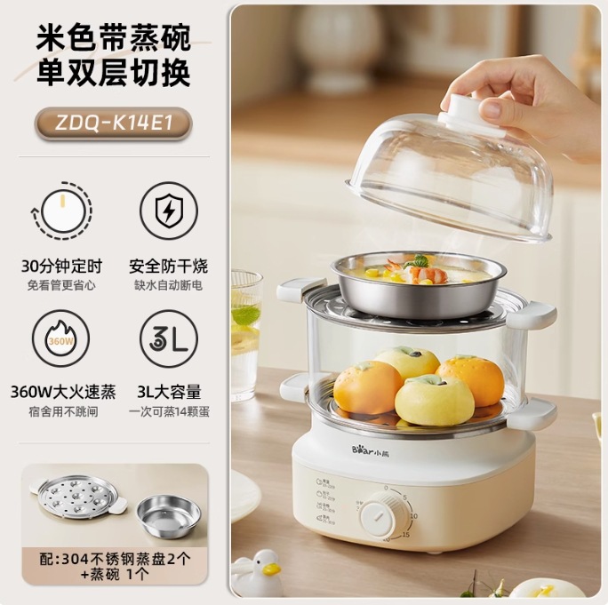 곰 계란 보일러 계란 기선 싱글 및 더블 레이어 가정용 다기능 조식 전기 기선 ZDQ-D12R3스토어 가기