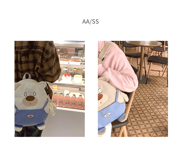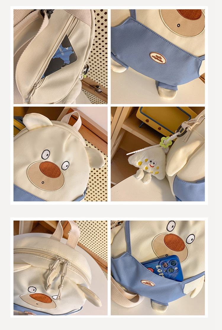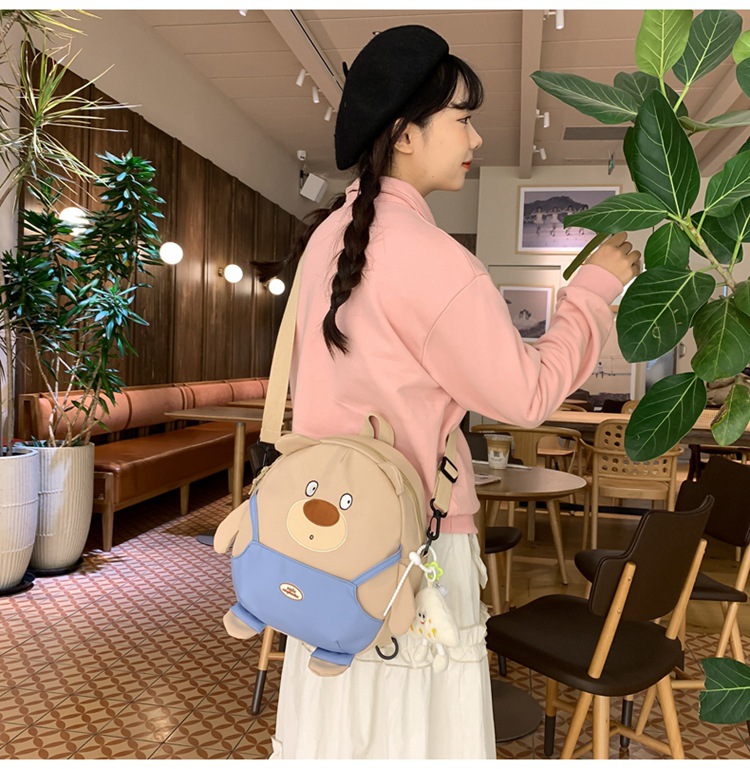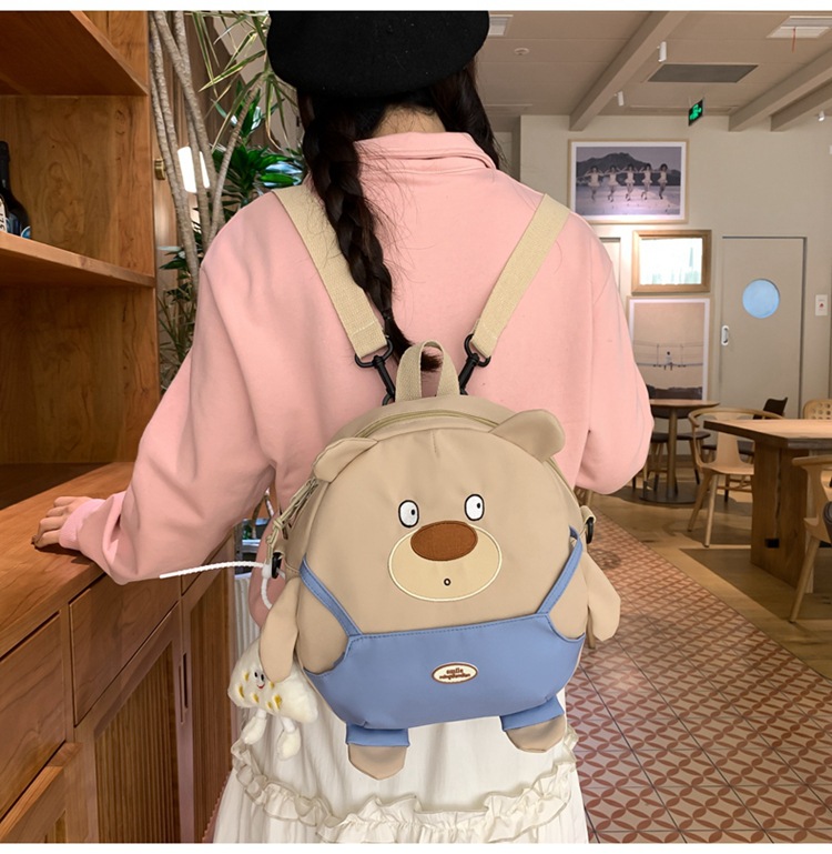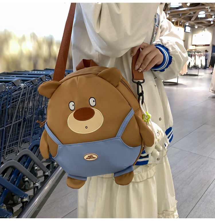 한국 스타일 곰 배낭 2024 새로운 만화 배낭 곰 대비 컬러 메신저 가방 개인화 된 창조적 인 소녀 배낭스토어 가기