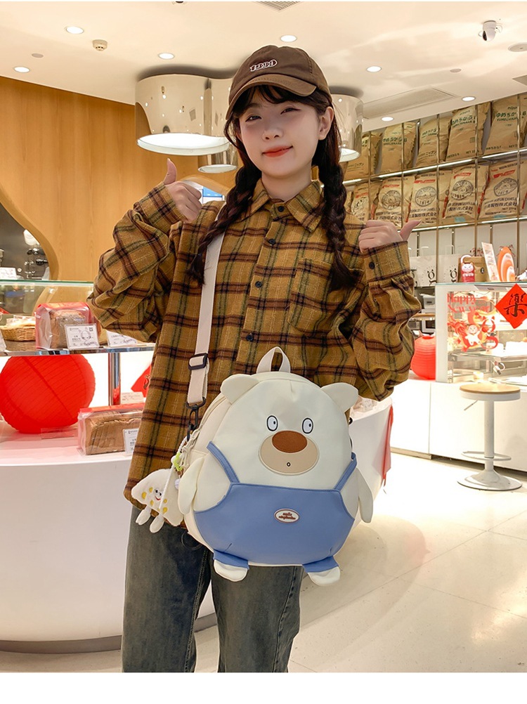 한국 스타일 곰 배낭 2024 새로운 만화 배낭 곰 대비 컬러 메신저 가방 개인화 된 창조적 인 소녀 배낭