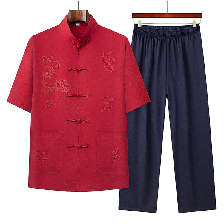 중년 및 노인 여름 캐주얼 남성 의류 아빠 여름 얇은 남성 의류 중국 스타일 남성 탕 세트