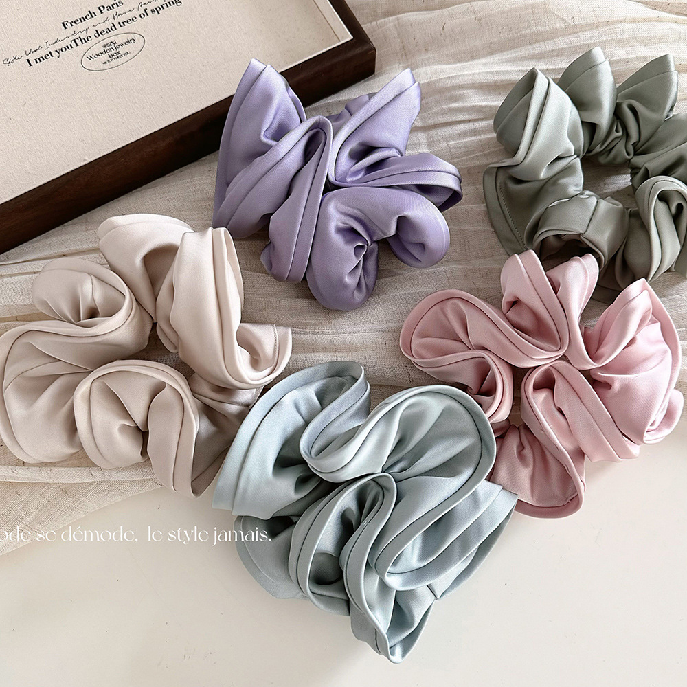한국 스타일 밝은 색상의 러플 머리끈 여성용 고급스러운 꽃봉오리 머리끈 포니테일 고무줄 여성용 헤어밴드스토어 가기