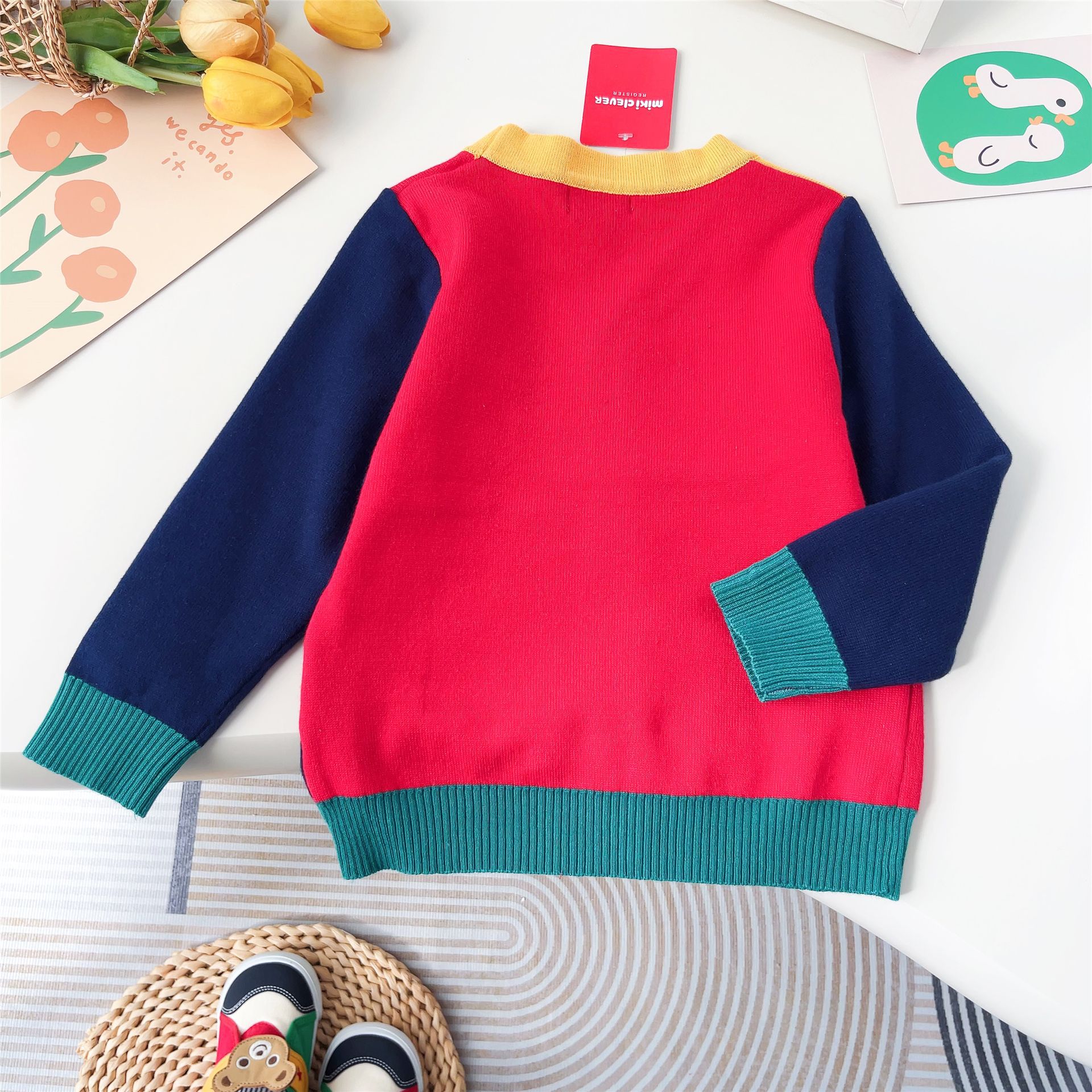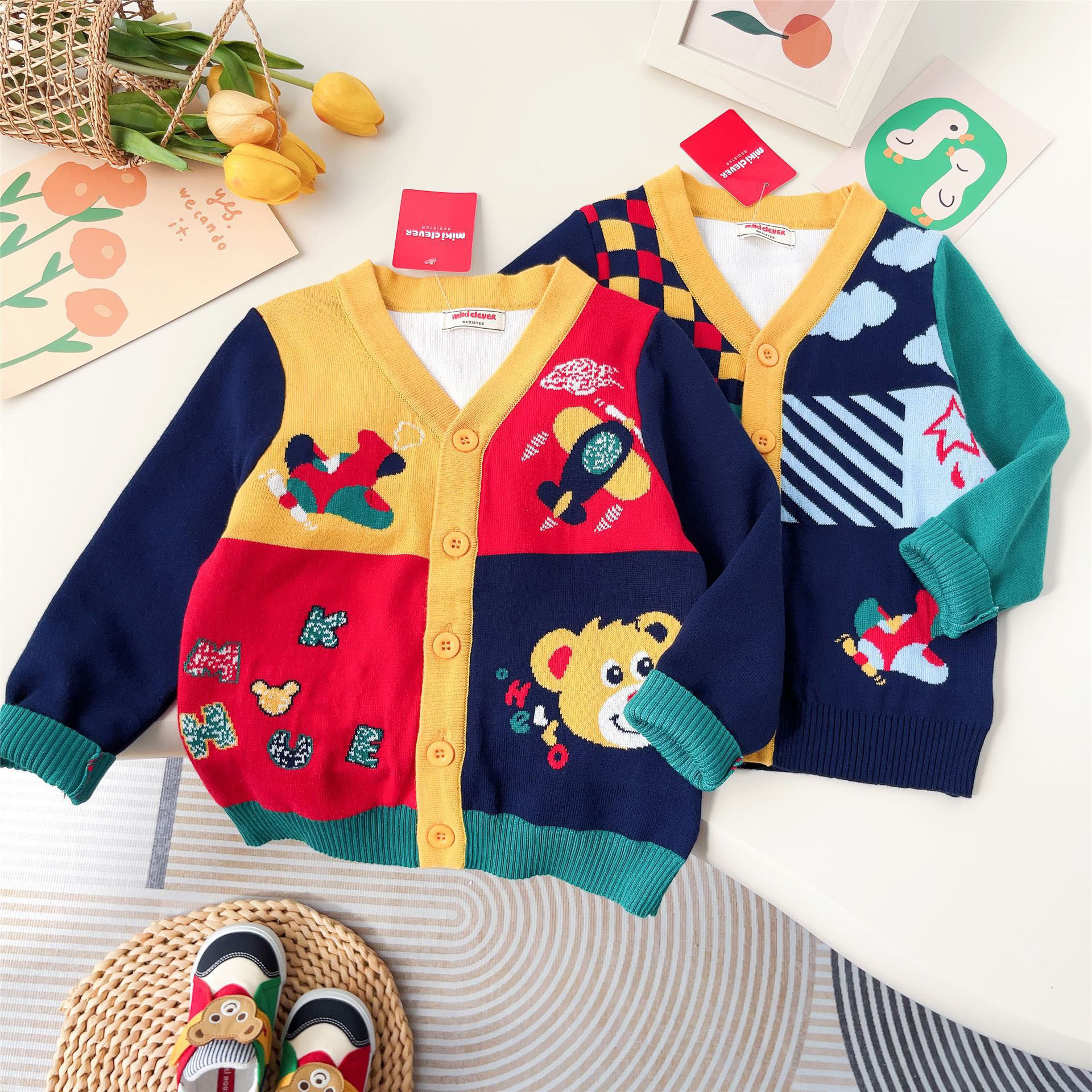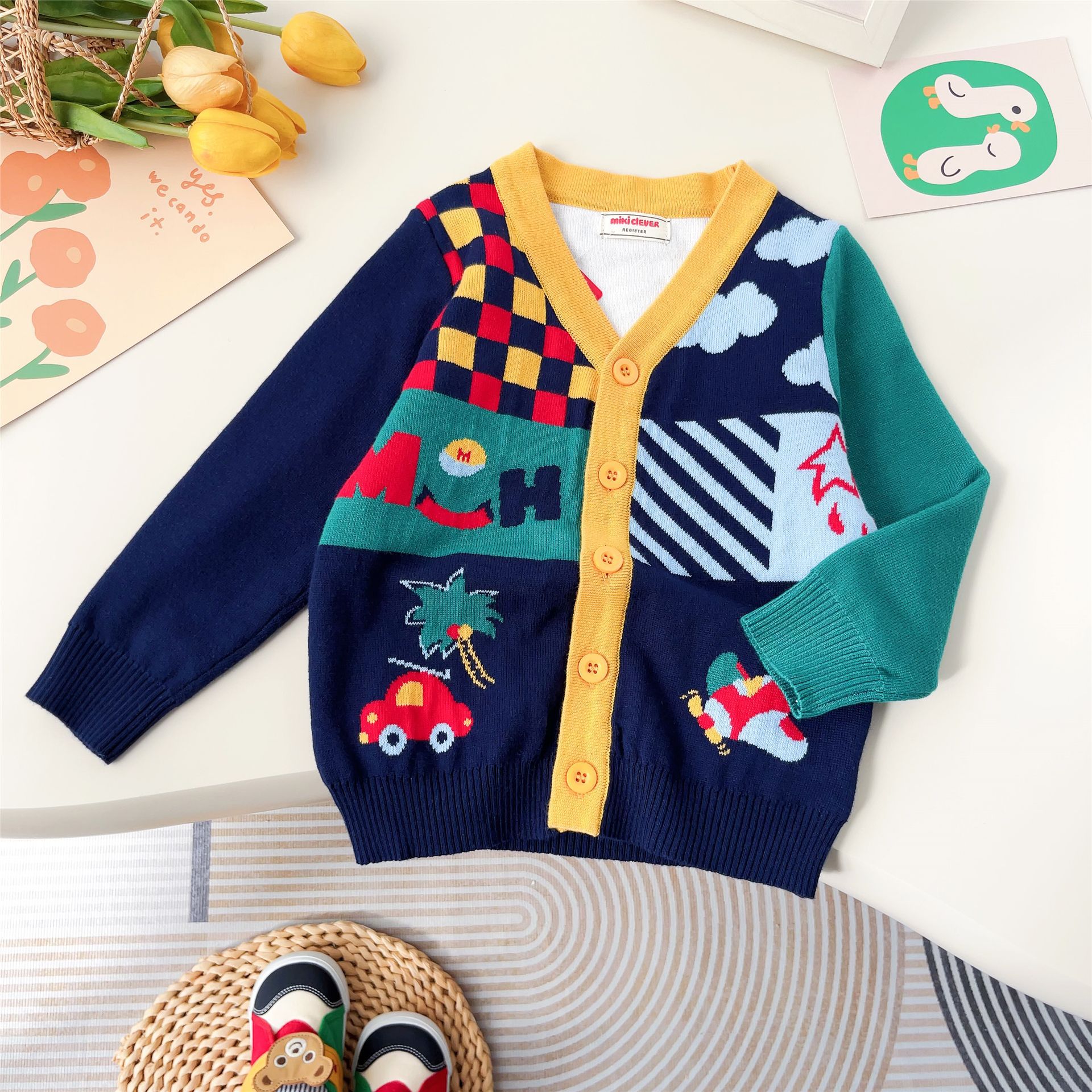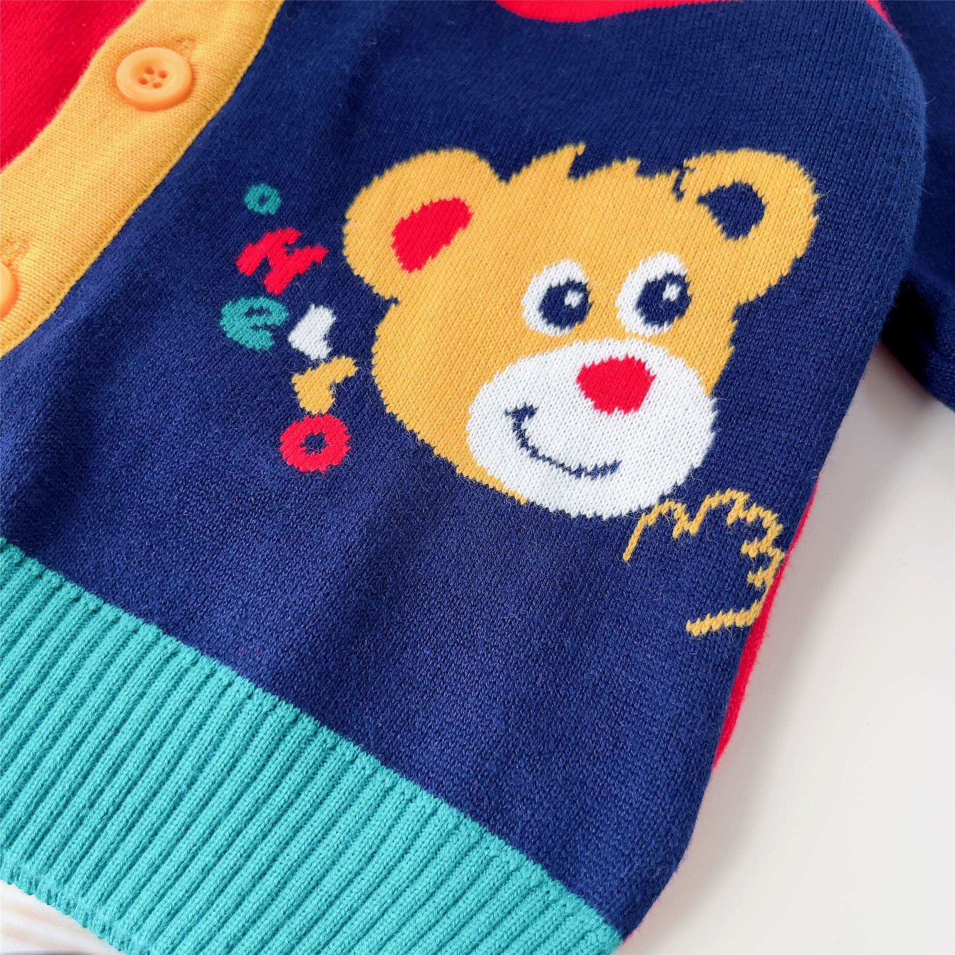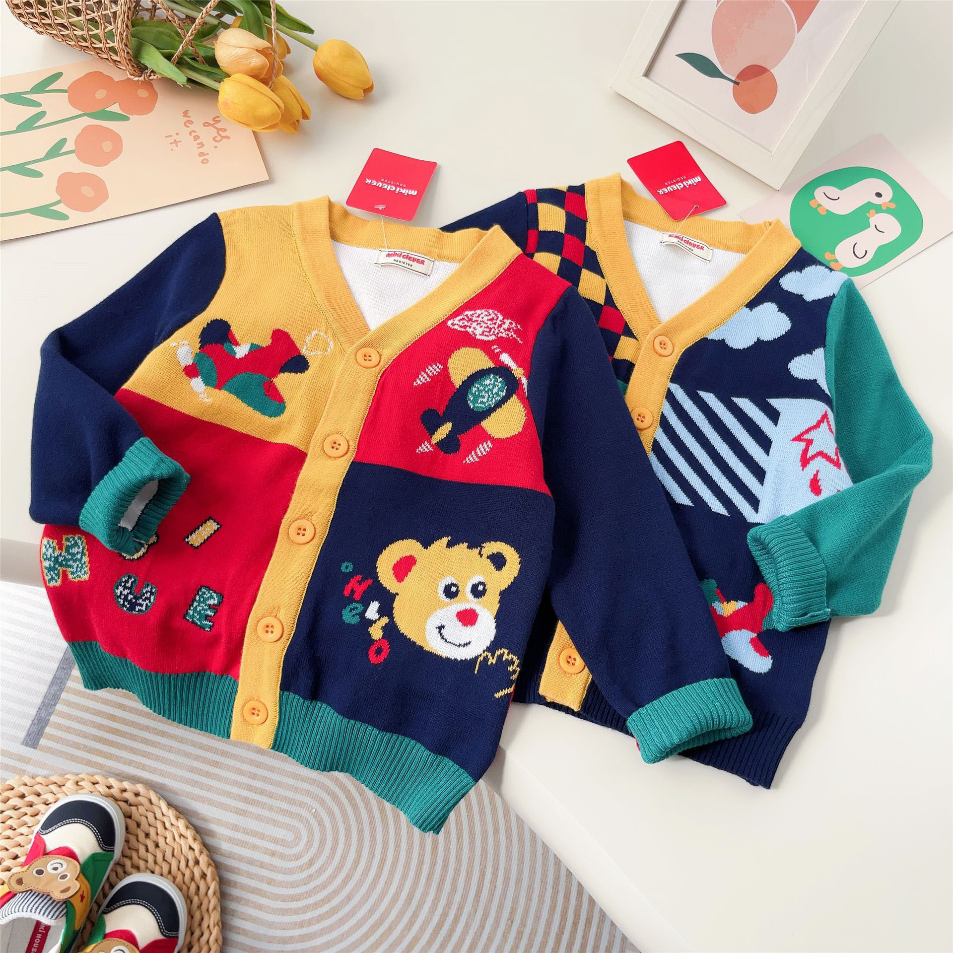 일본 스타일 곰돌이 체크 니트 가디건 24 봄 신상품 잠묵 아동복 스웨터 도매 2306스토어 가기