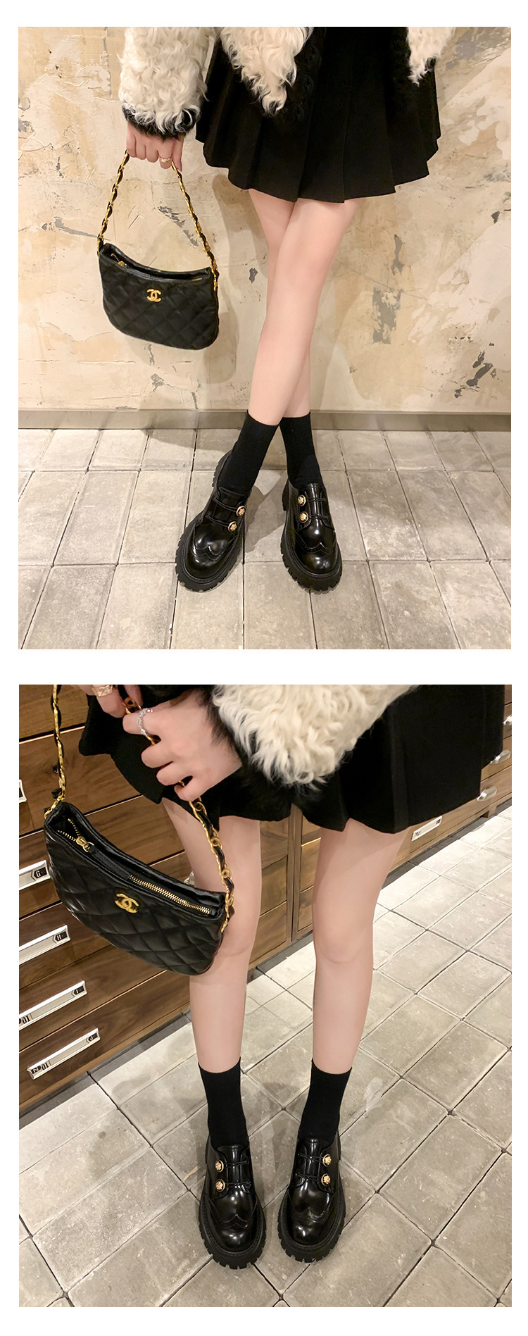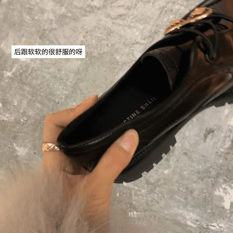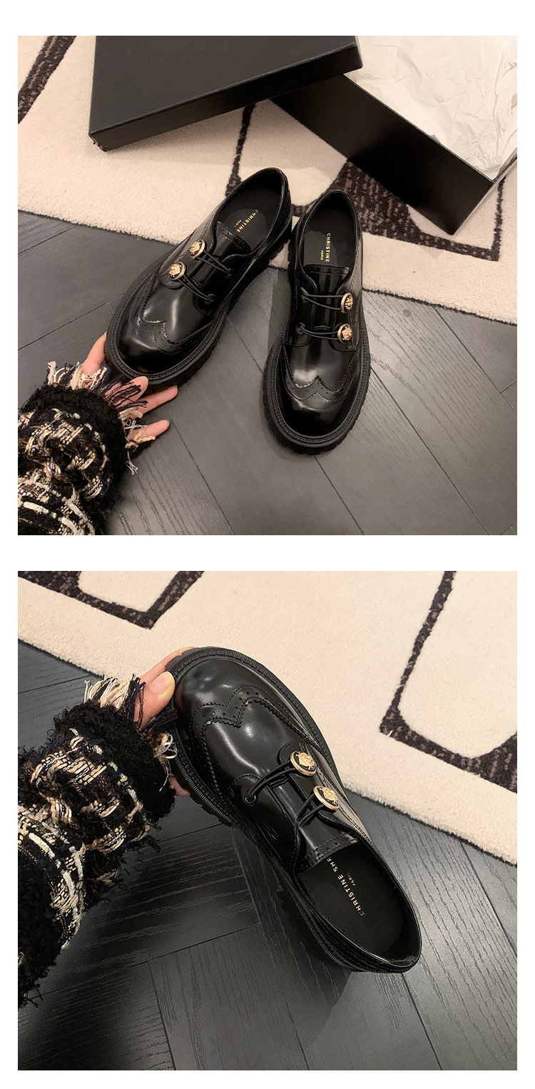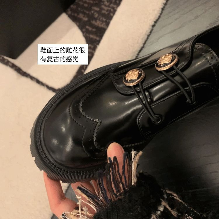 정품 가죽 조각 장식 배지 골드 버클 두꺼운 밑창 하이힐 브로그 여성 로퍼 패션 슈즈스토어 가기