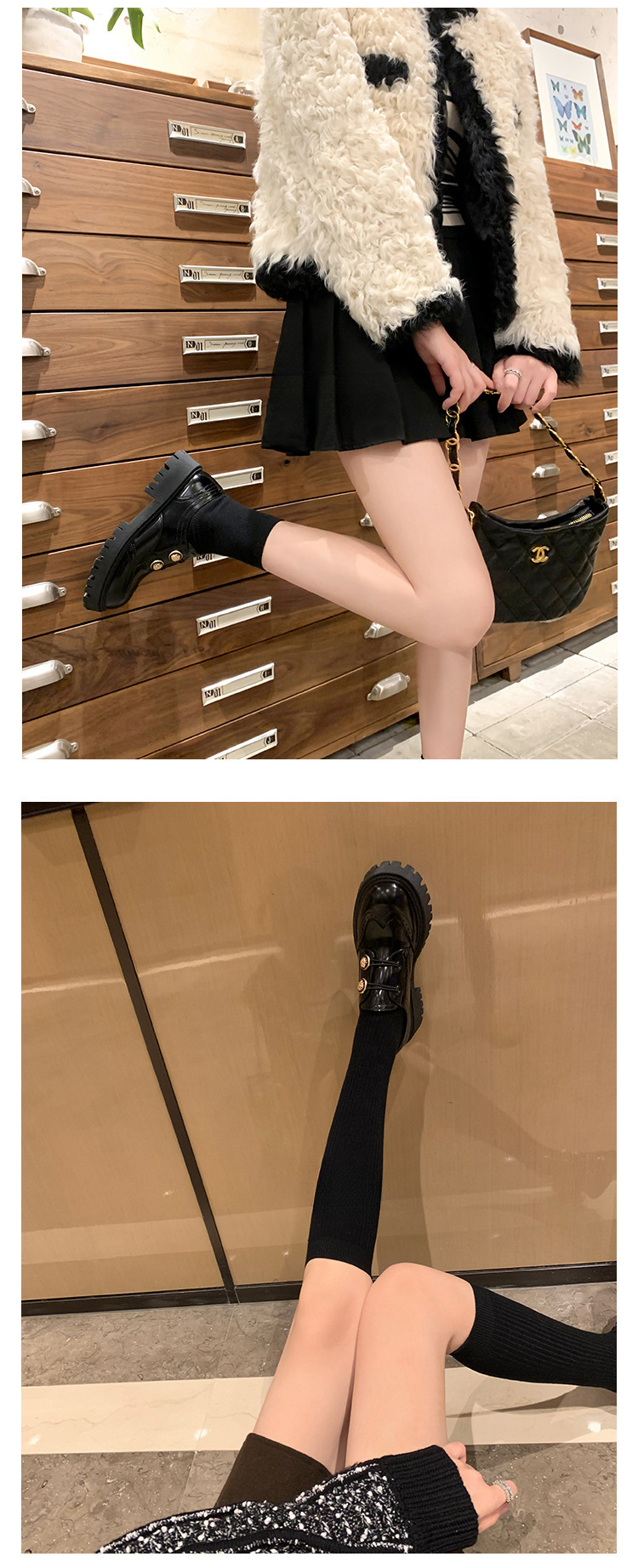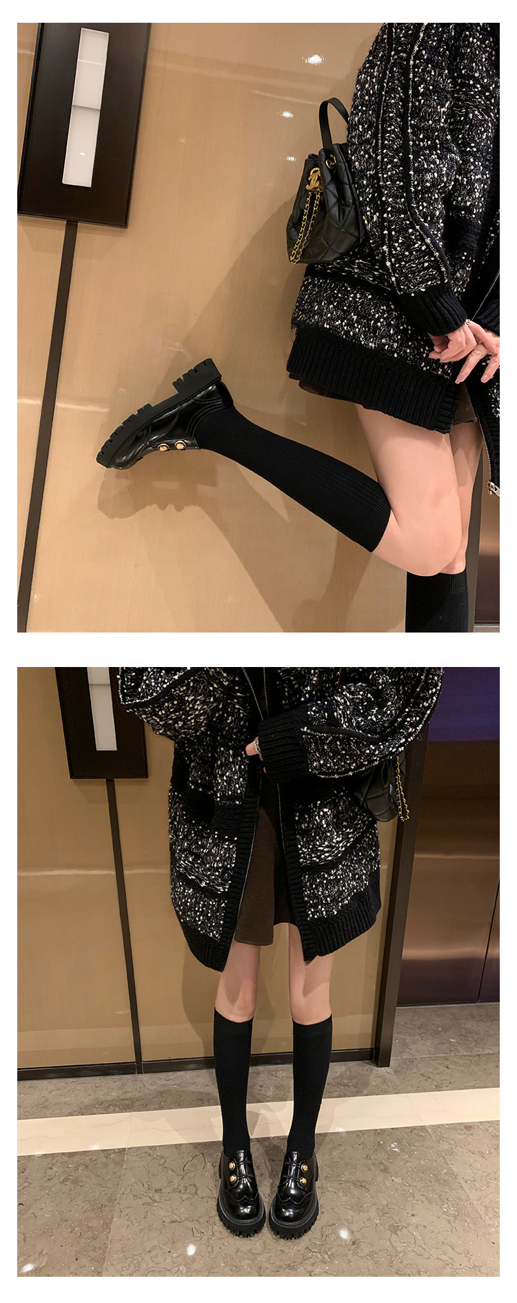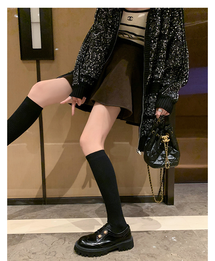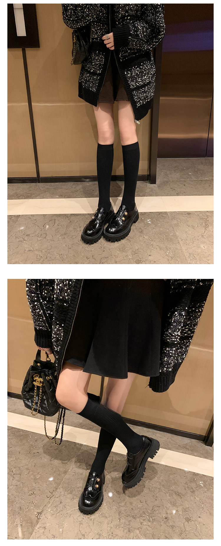 정품 가죽 조각 장식 배지 골드 버클 두꺼운 밑창 하이힐 브로그 여성 로퍼 패션 슈즈스토어 가기