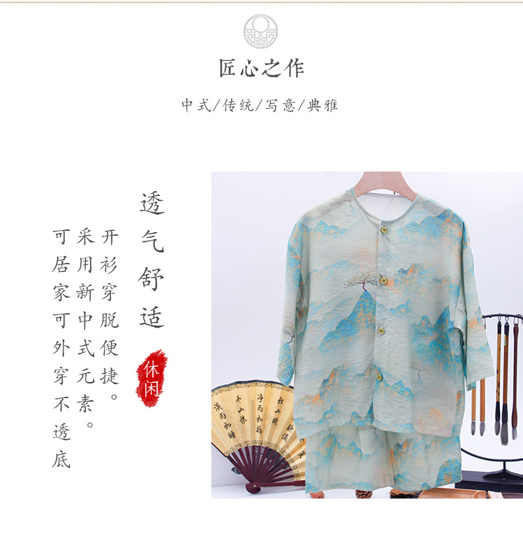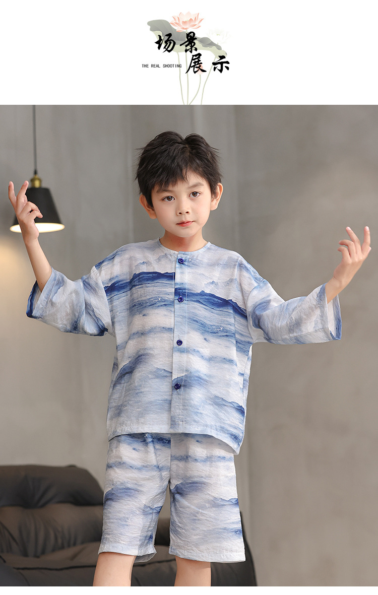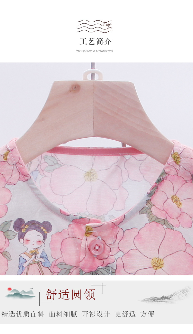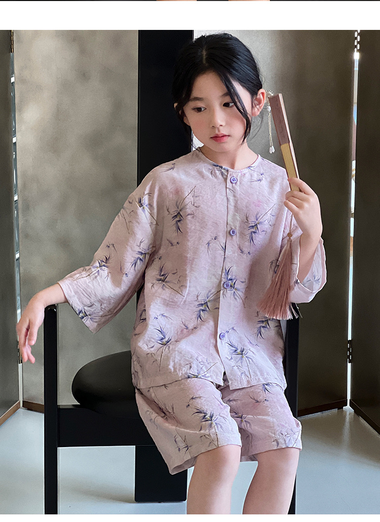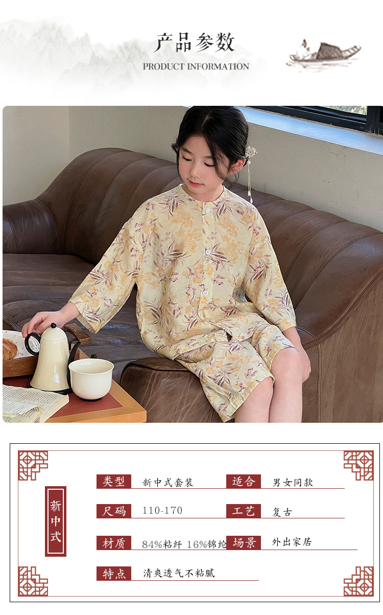부모-자식 카디건 홈 착용 여름 얇은 에어컨 의류 중국 스타일 복고풍 잠옷 세트 중국 스타일 아홉 번째 소매 새로운스토어 가기