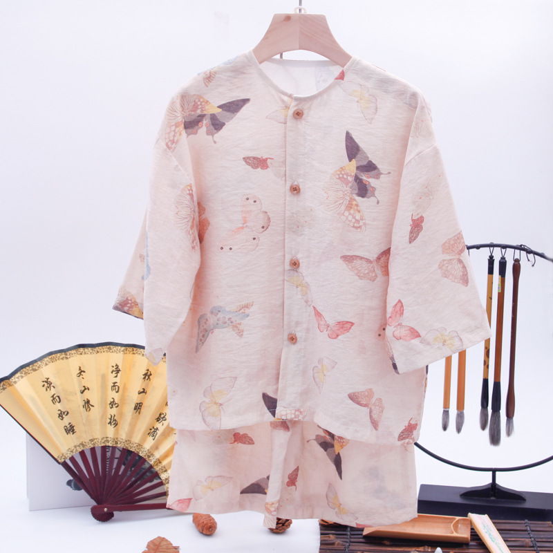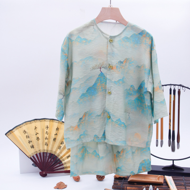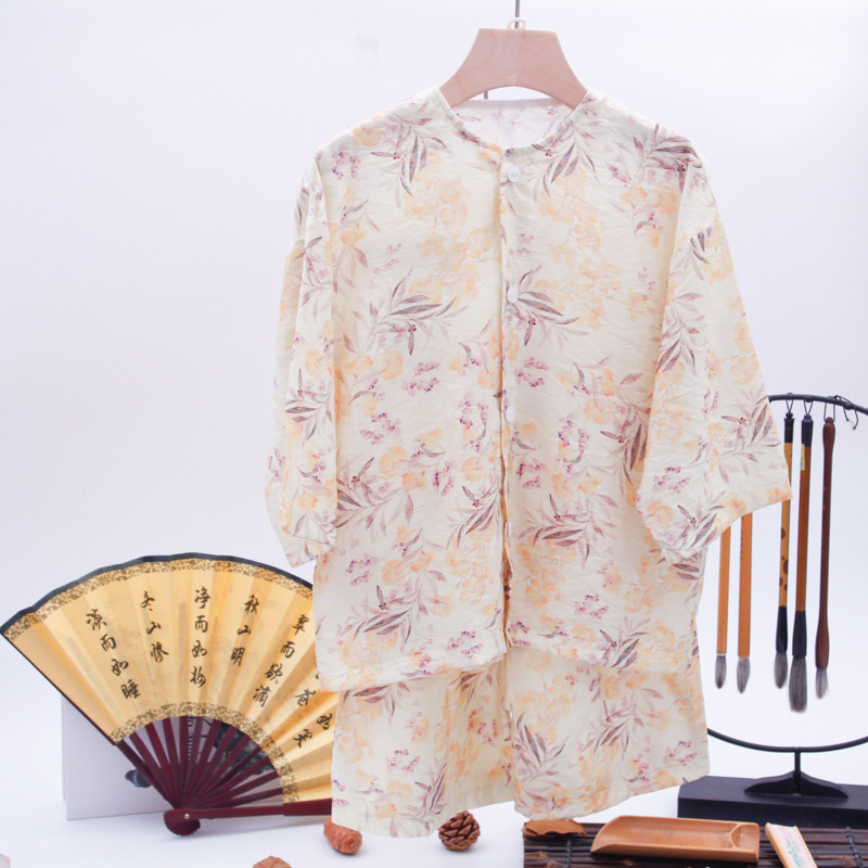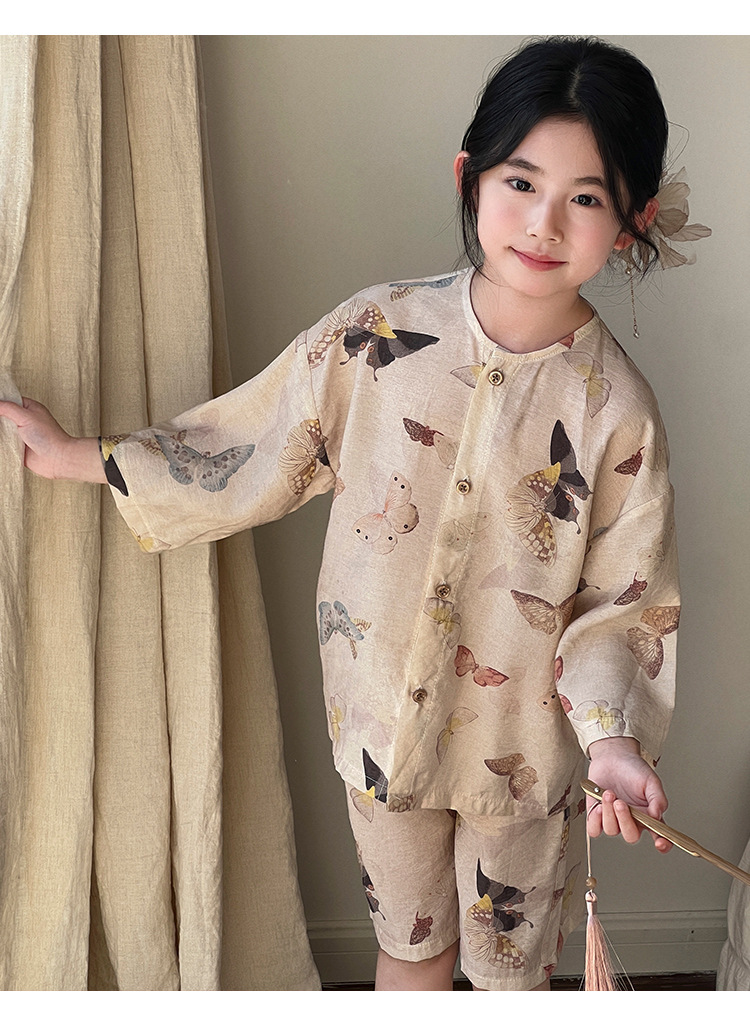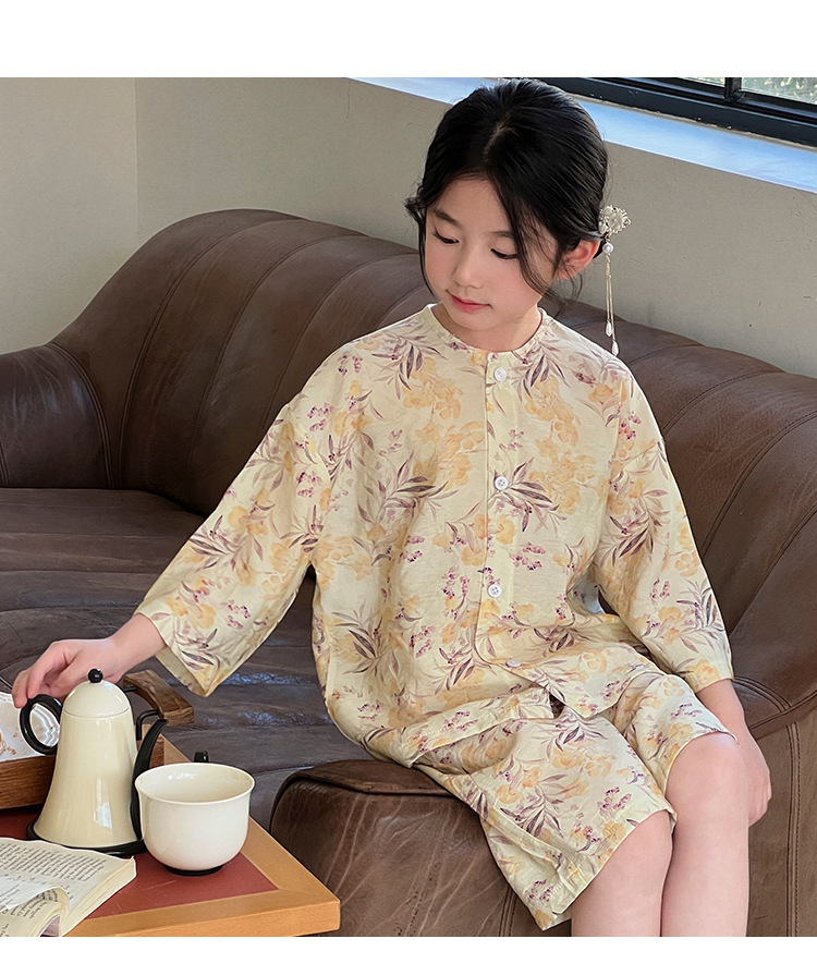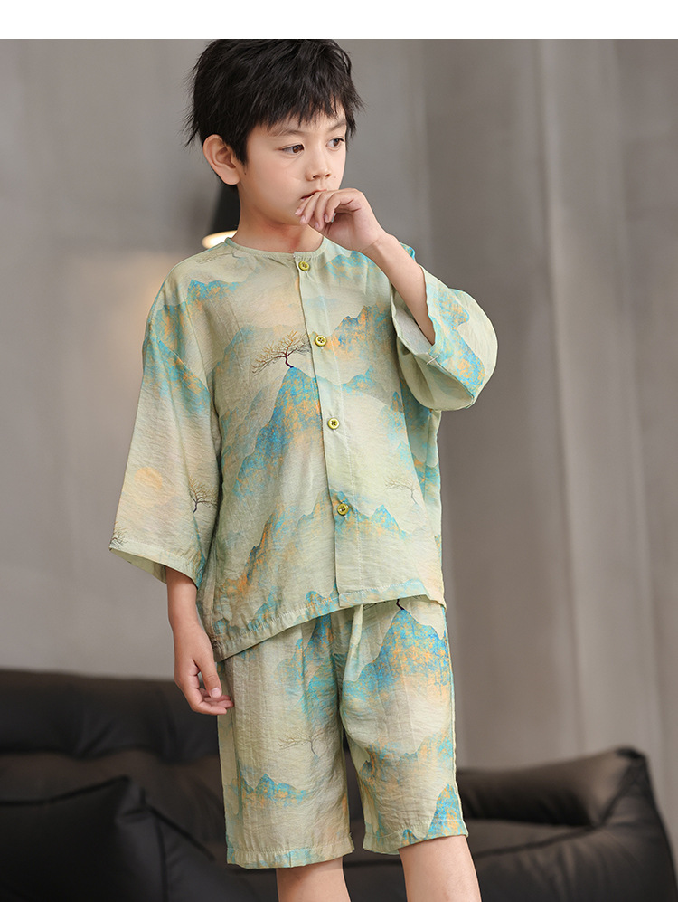 부모-자식 카디건 홈 착용 여름 얇은 에어컨 의류 중국 스타일 복고풍 잠옷 세트 중국 스타일 아홉 번째 소매 새로운스토어 가기