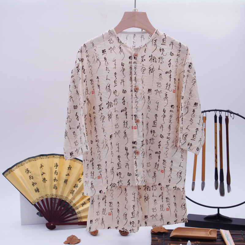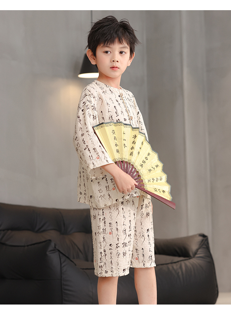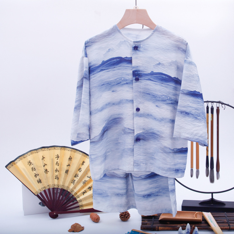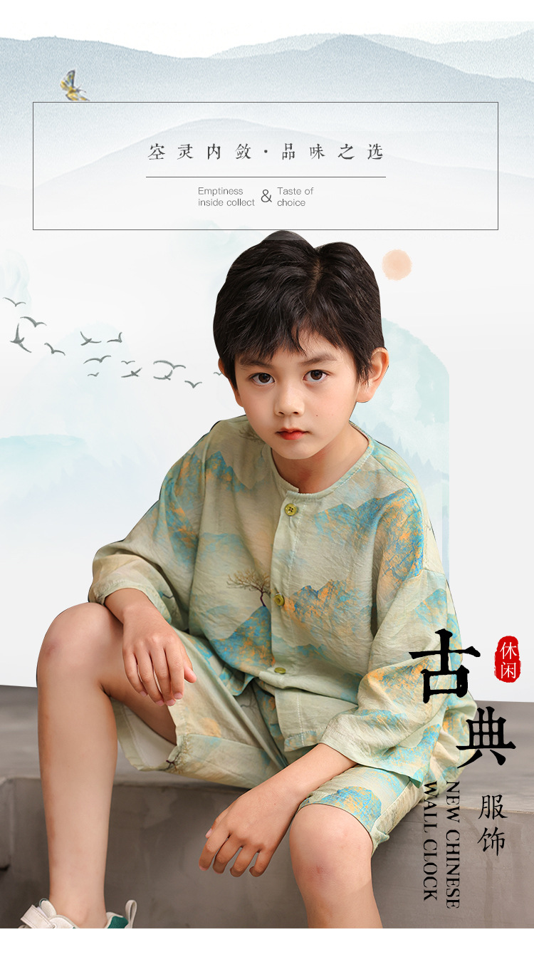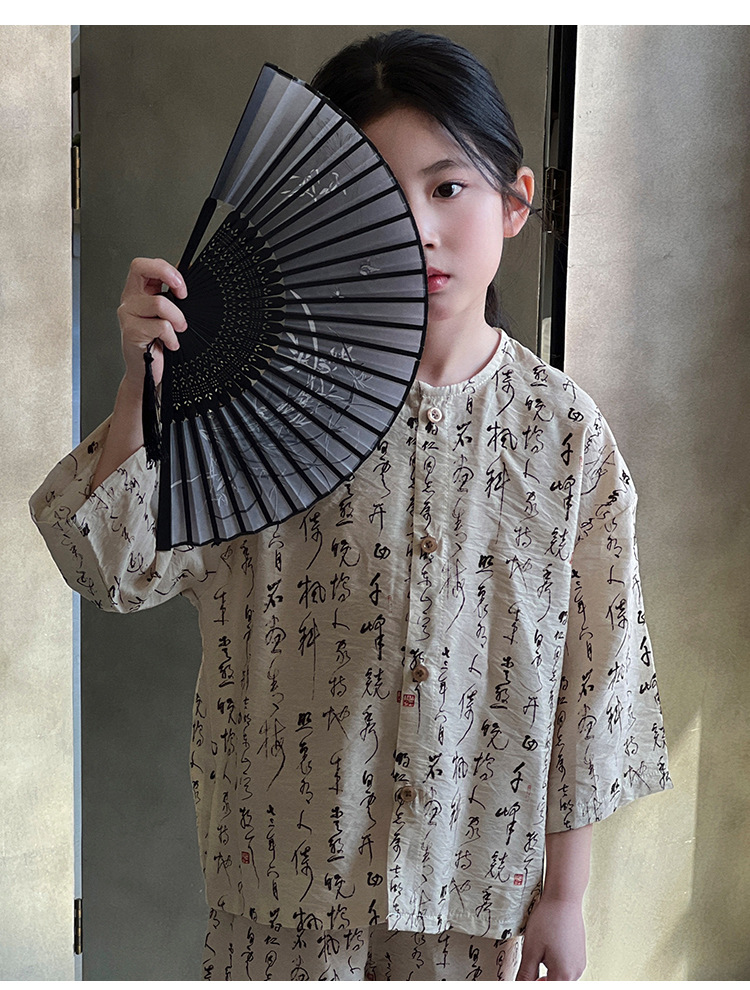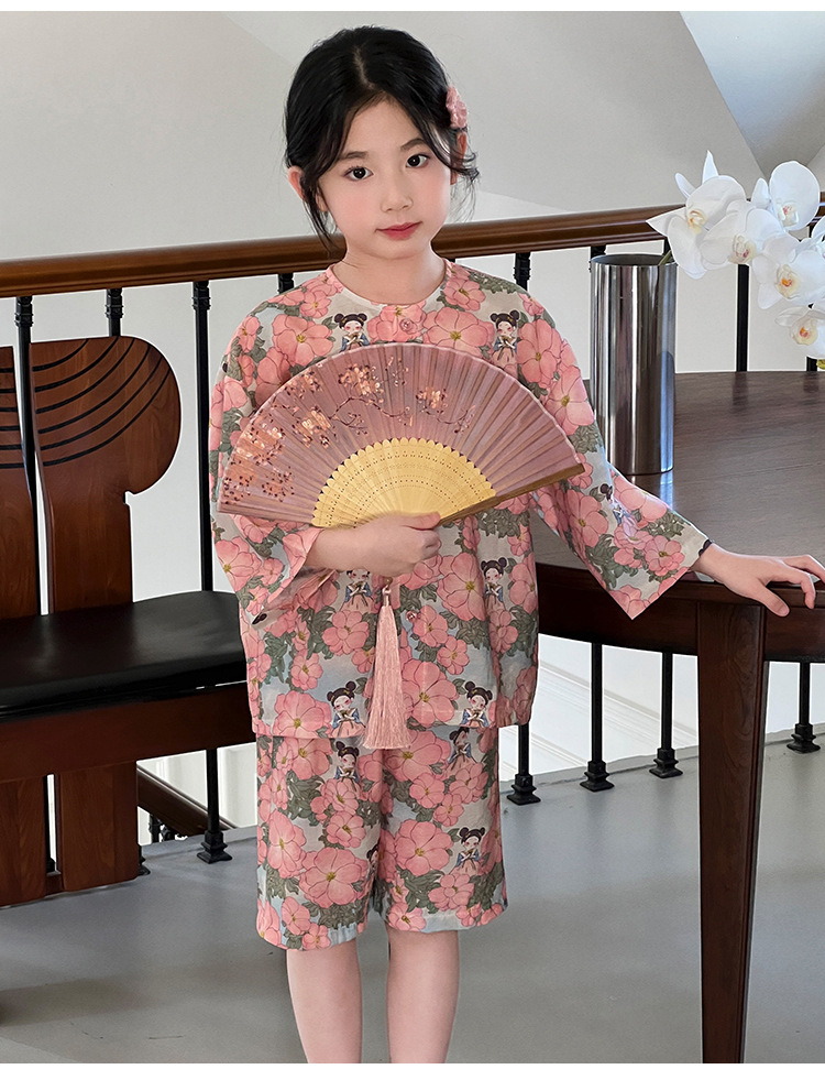 부모-자식 카디건 홈 착용 여름 얇은 에어컨 의류 중국 스타일 복고풍 잠옷 세트 중국 스타일 아홉 번째 소매 새로운스토어 가기