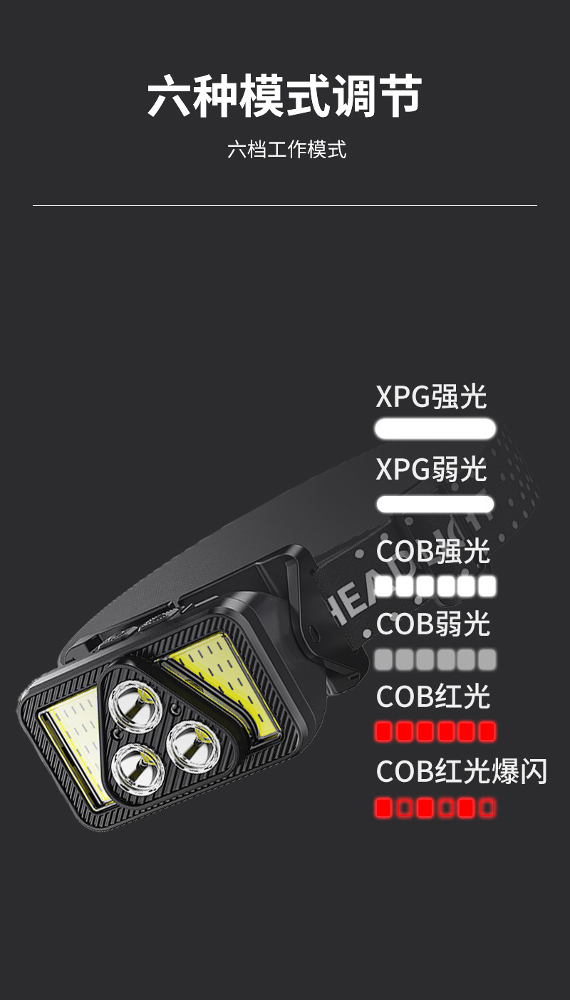 멀티 사양 고출력 긴 내구성 밝은 방수 헤드라이트 USB 직접 충전 헤드 장착 낚시 유도 작업 조명스토어 가기