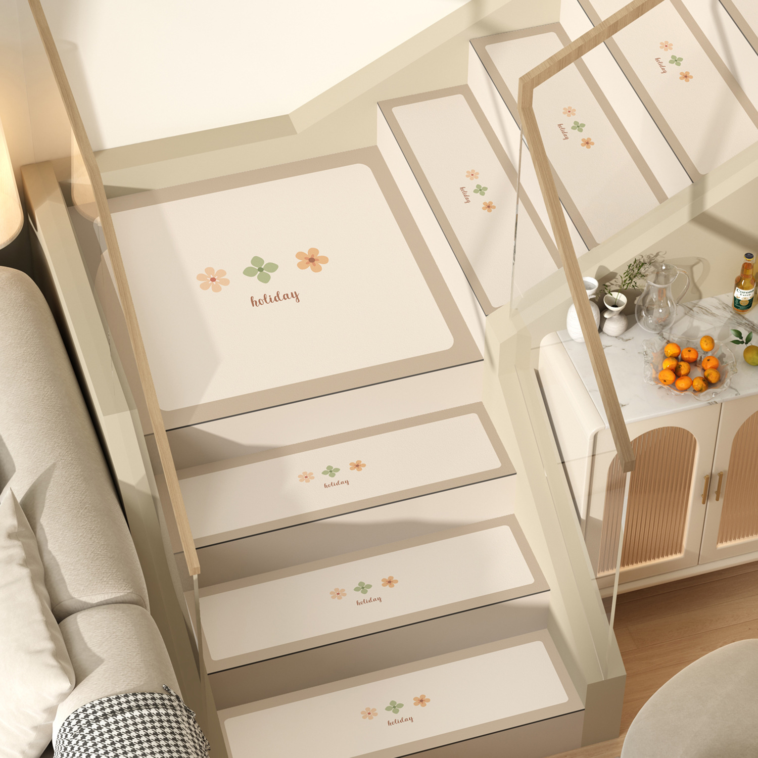 크림 스타일 계단 매트 실내 홈 풀 커버 미끄럼 방지 계단 매트 스텝 매트 얼룩 방지 풋 매트를 고정 할 수 있습니다.스토어 가기