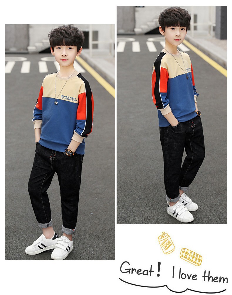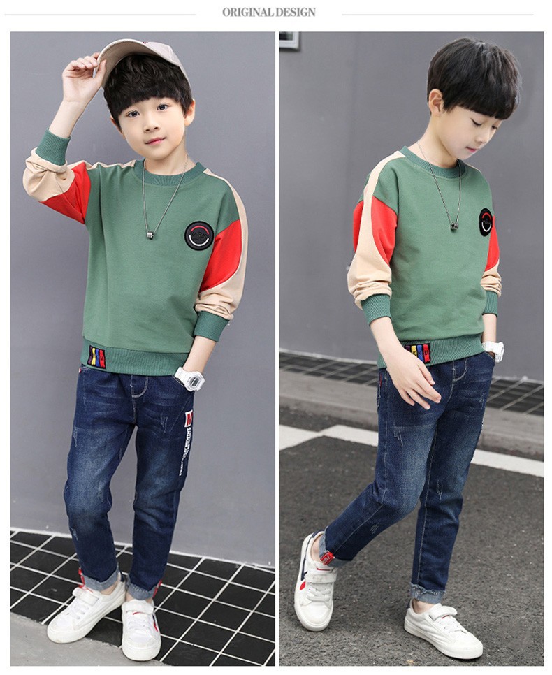 어린이 의류 소년 가을 운동복 2024 년 봄과 가을 새로운 도착 소년 잘 생긴 미중 큰 아이 튀긴 거리 가을 최고 트렌디스토어 가기
